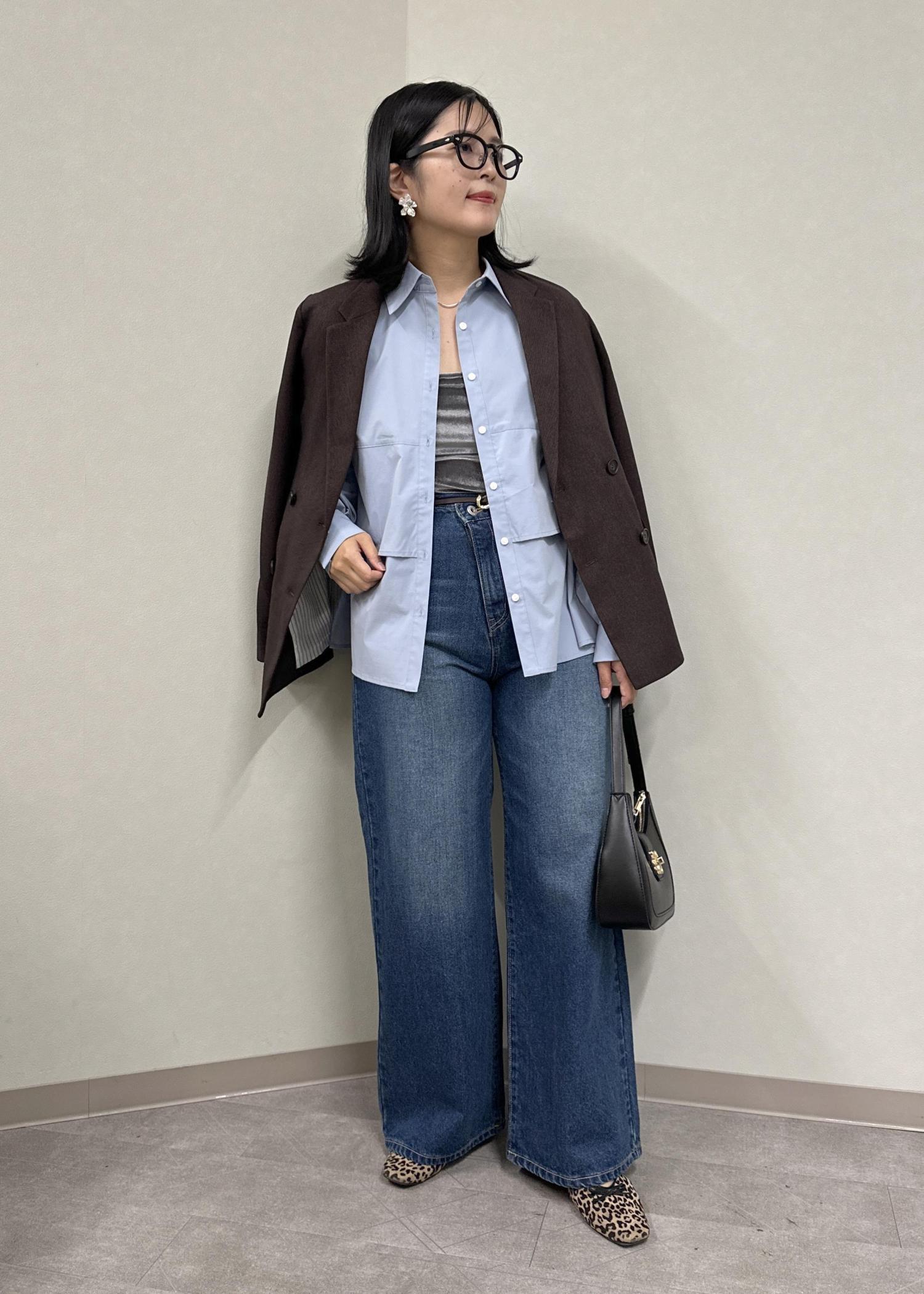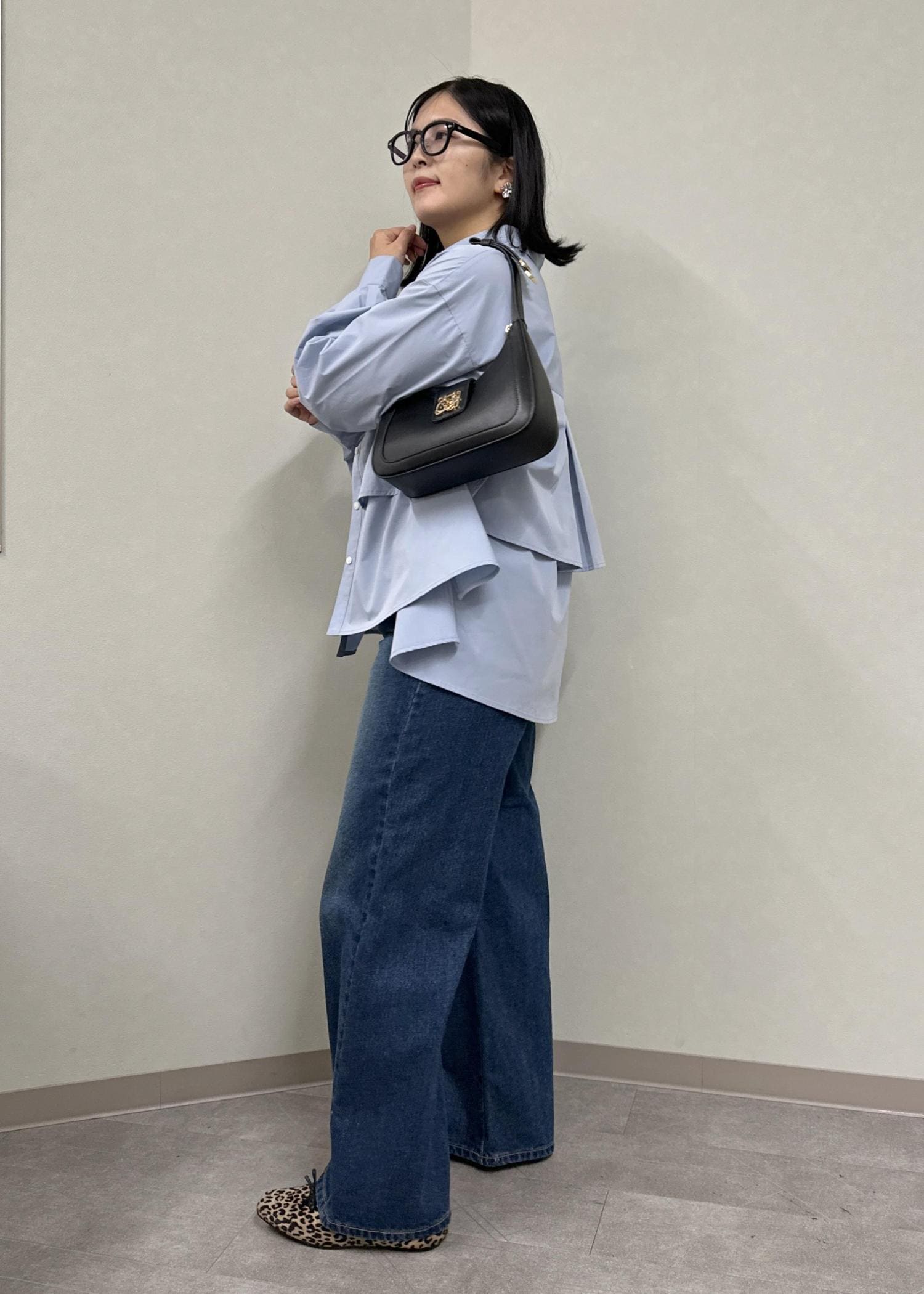 ハリのあるシャツは苦手なのですが、デザイン、カラー共に合っているのか、このシャツはとてもマッチしました◎ -