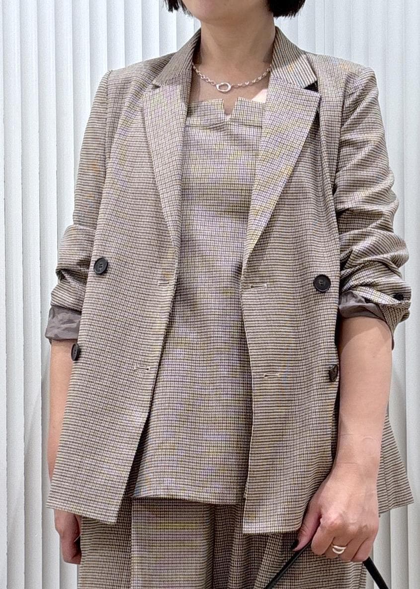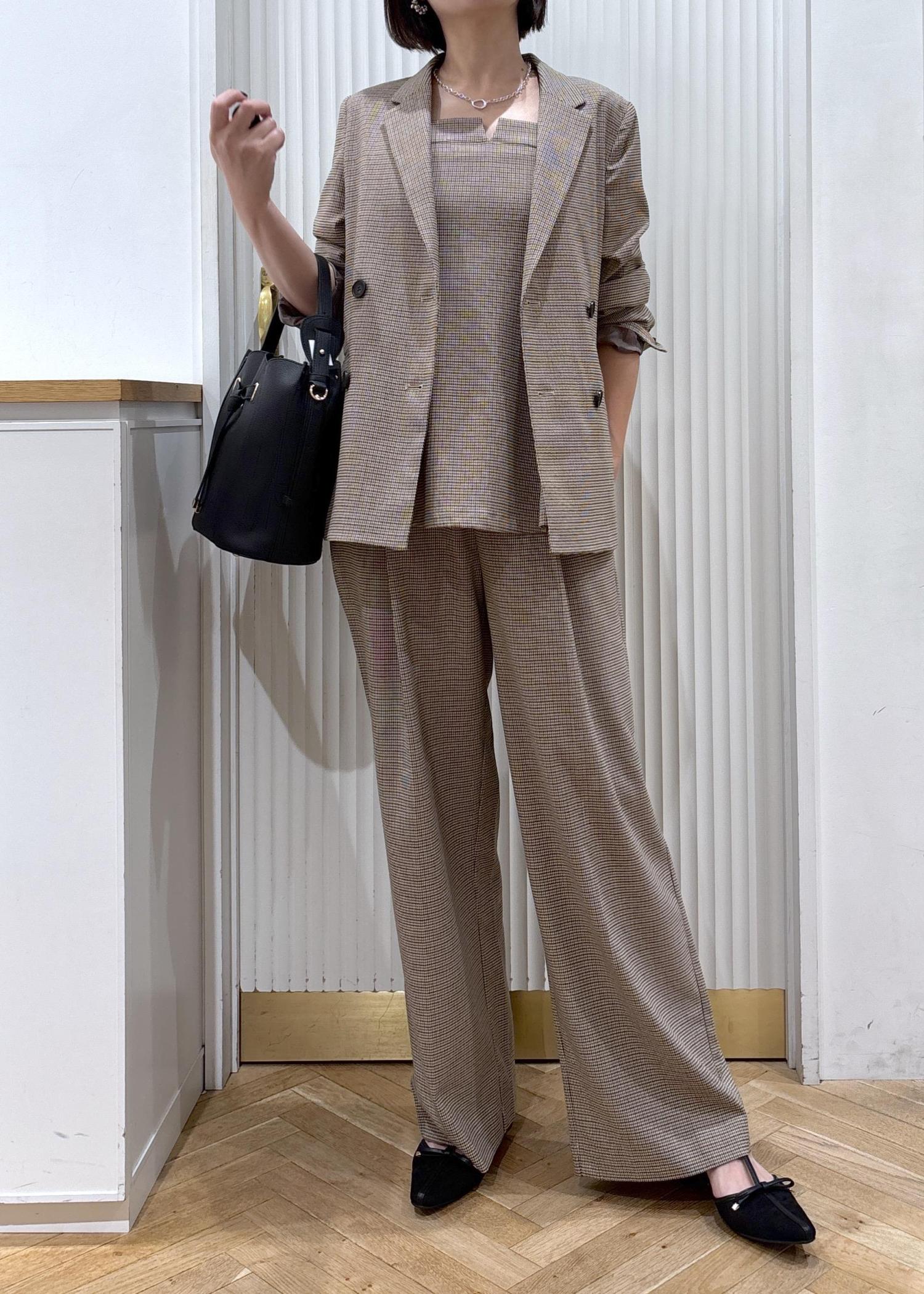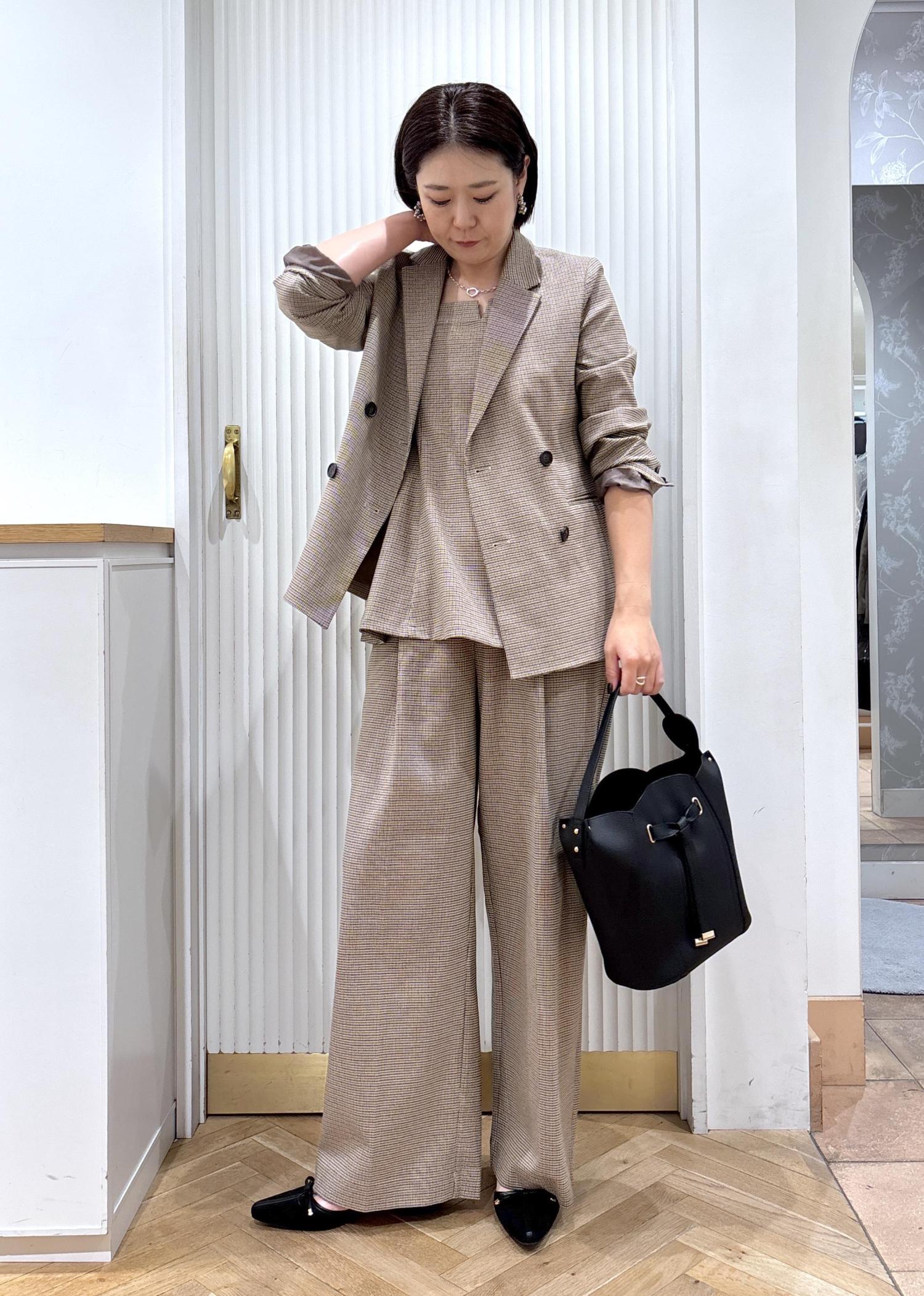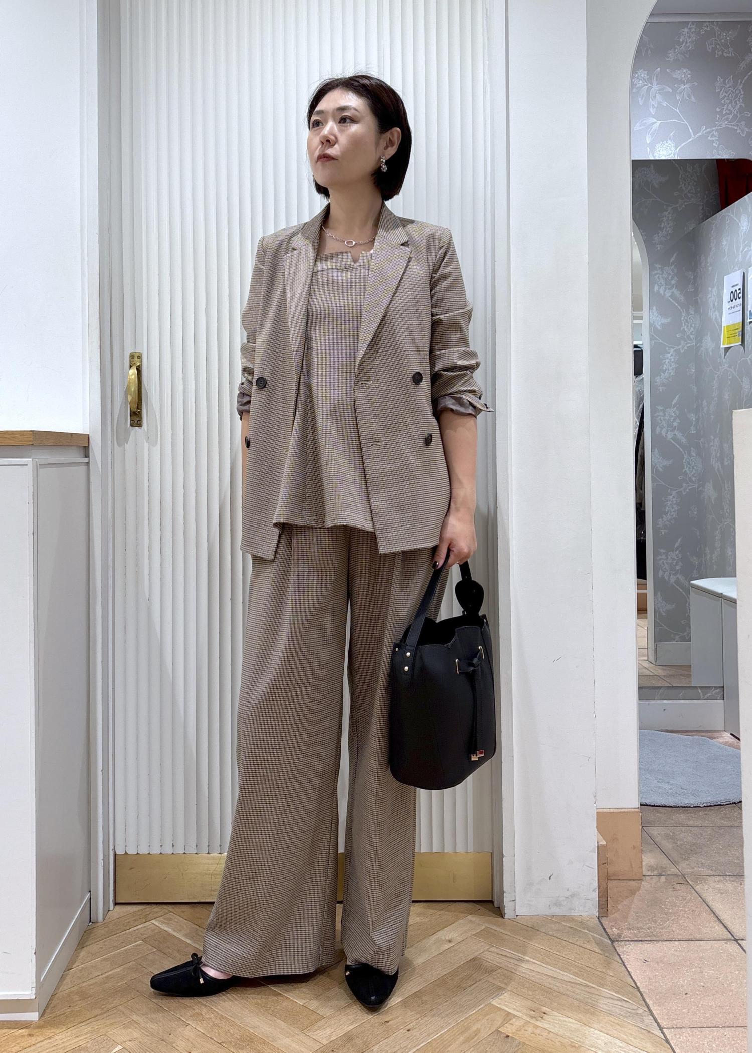 チェック柄でも色味が落ち着いているのでセットアップで着てもまとまり感◎