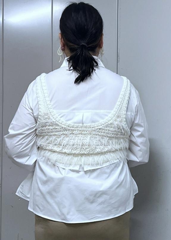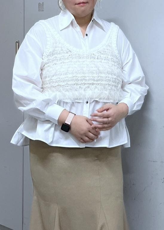 VISフェザーツイードニットビスチェ/2WAYキナリ / F¥5,489レビュー前後2WAYに着れるニットビスチェで前後で襟ぐりの深さが違います。