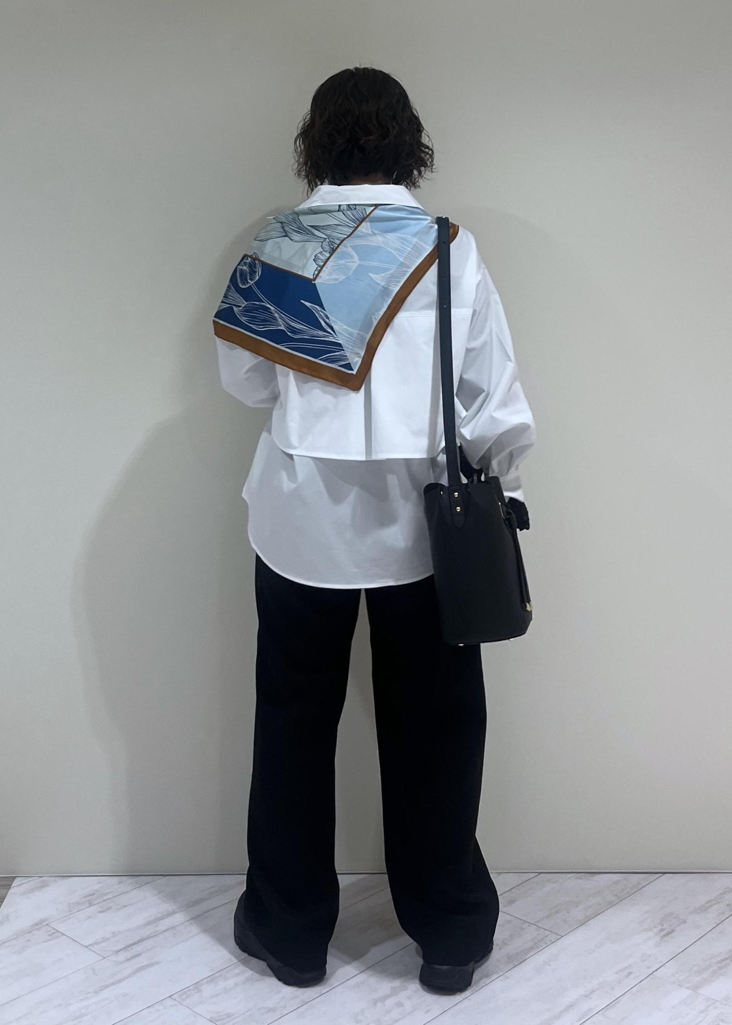 大判なので、バッグに飾りでつけたりボトムスに巻いたり、肩に巻いたりと色々アレンジできます。 -