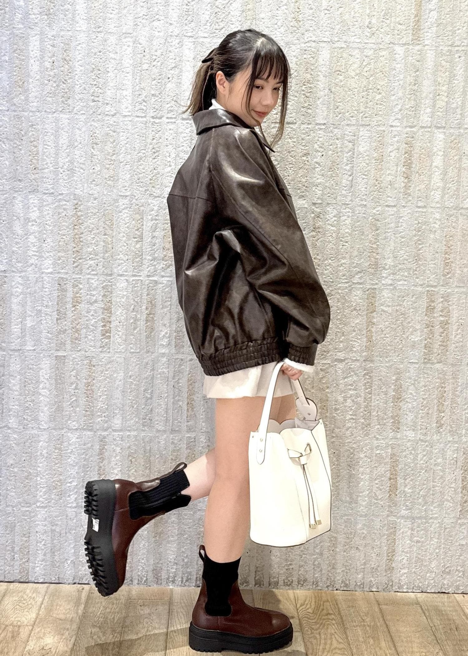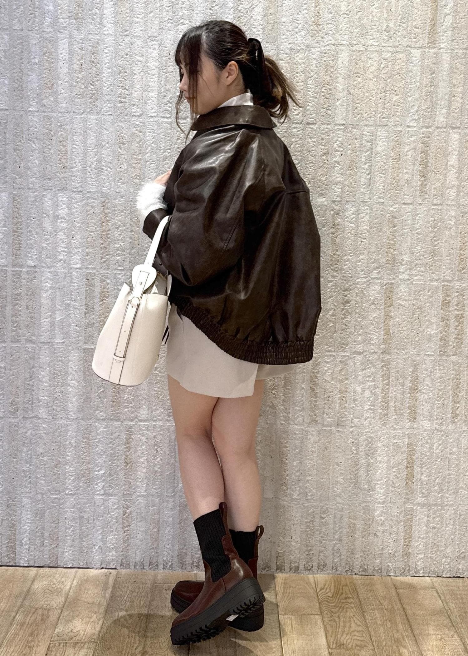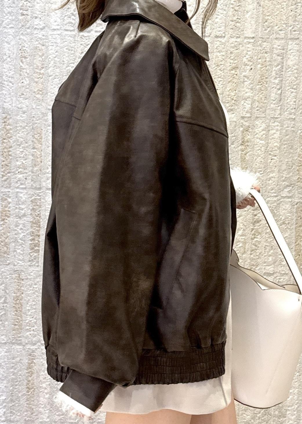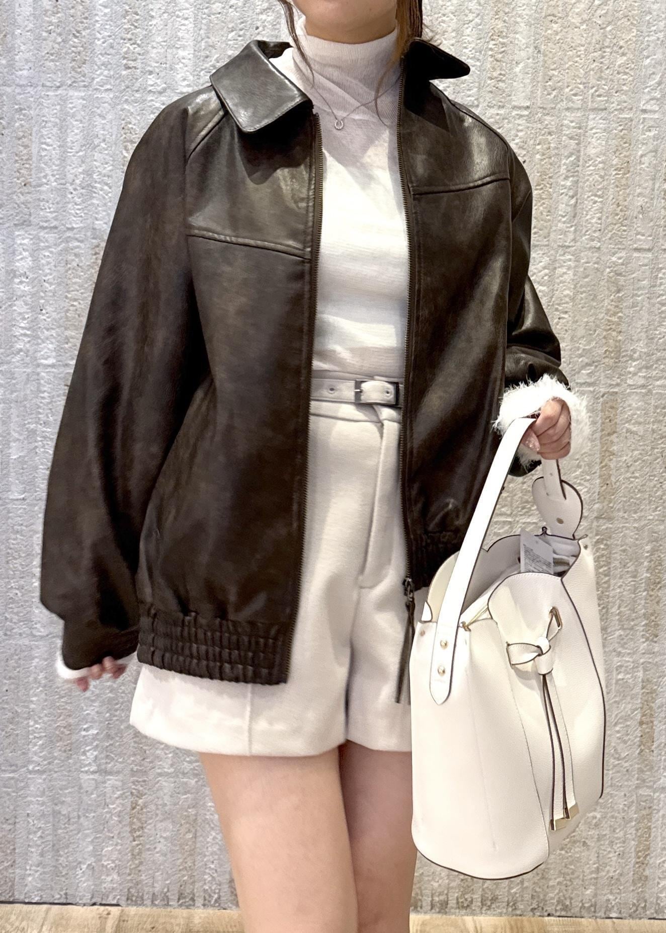 VIS合皮&スエードライクジップアップブルゾンダークブラウン系 / F¥10,989レビュー合皮素材とスエード調素材の