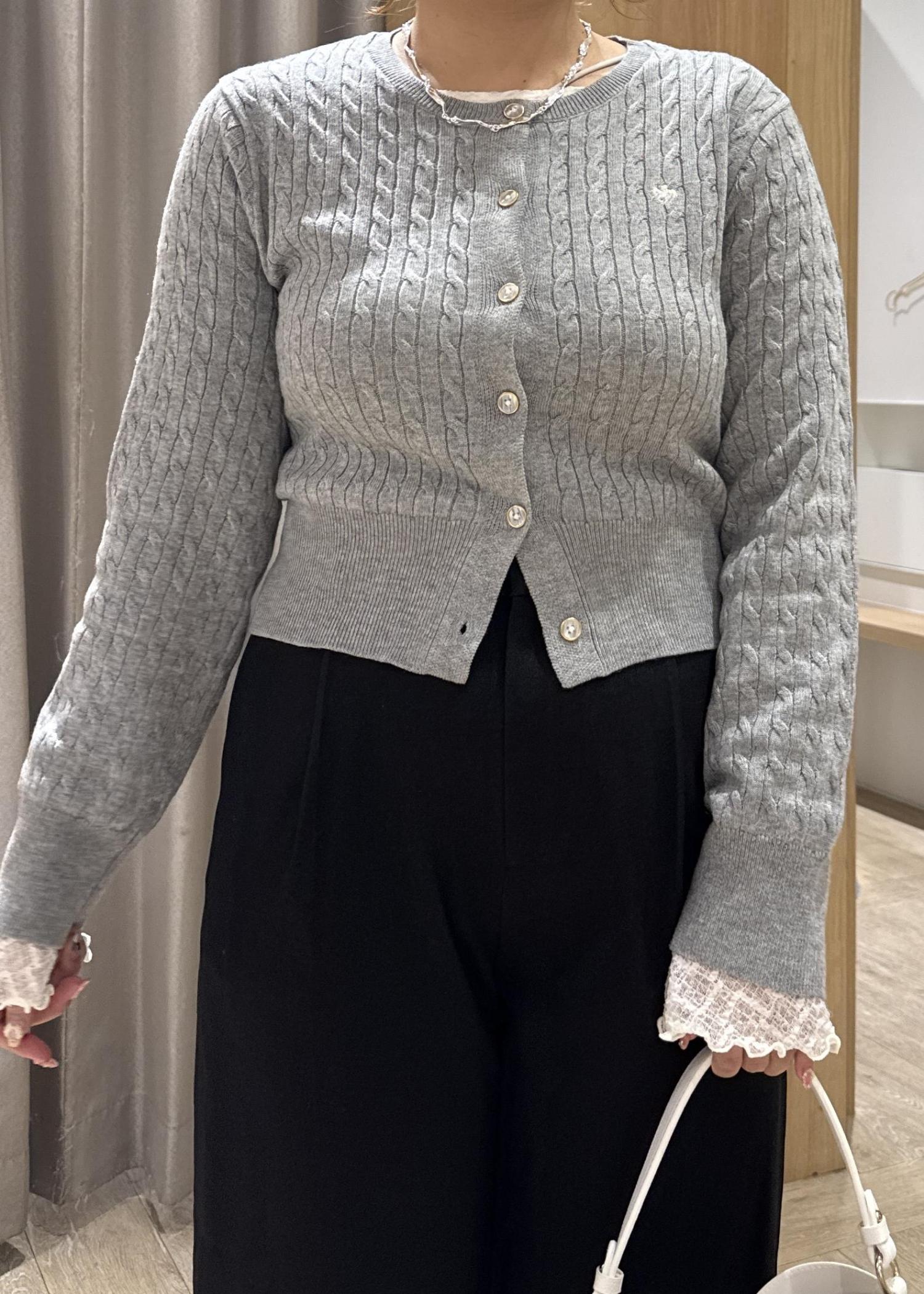 VIS【POLO BCS】VIS別注ミニケーブルノーカラーニットカーディガンライトグレー / F¥6,930レビュー柔らかくて着やすいです!