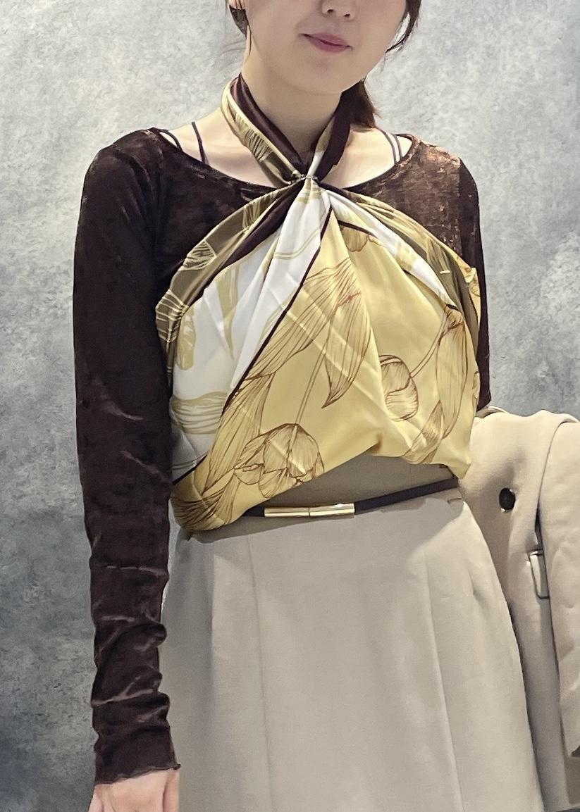 VISチューリップ柄スカーフ90×90cmブラウン系 / F¥2,189レビュー高級感あるデザインで値段以上に高みえします!