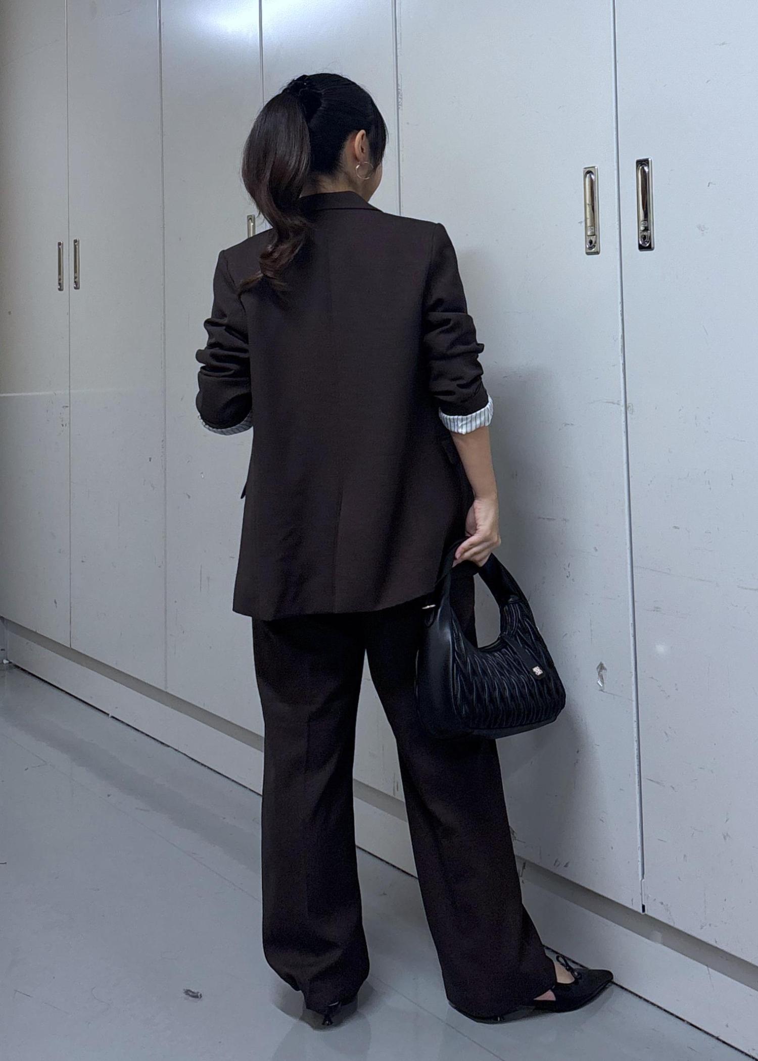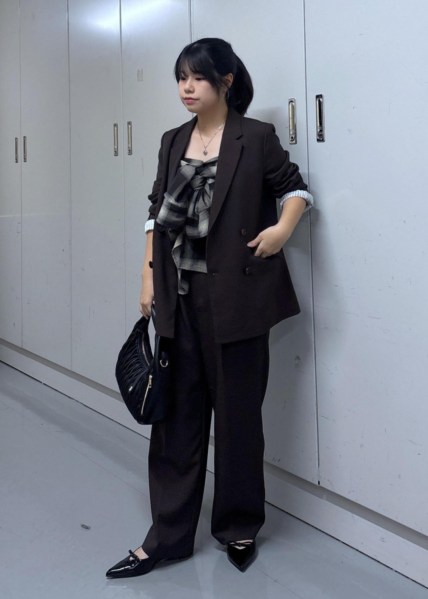 VIS【美easy】ウーリッシュダブルブレストテーラードジャケット【セットアップ対応/洗える】ダークブラウン / S¥8,899レビュー153cmで、丈はお尻が隠れて、袖は手が半分隠れるくらいの長さと少し長めでした。