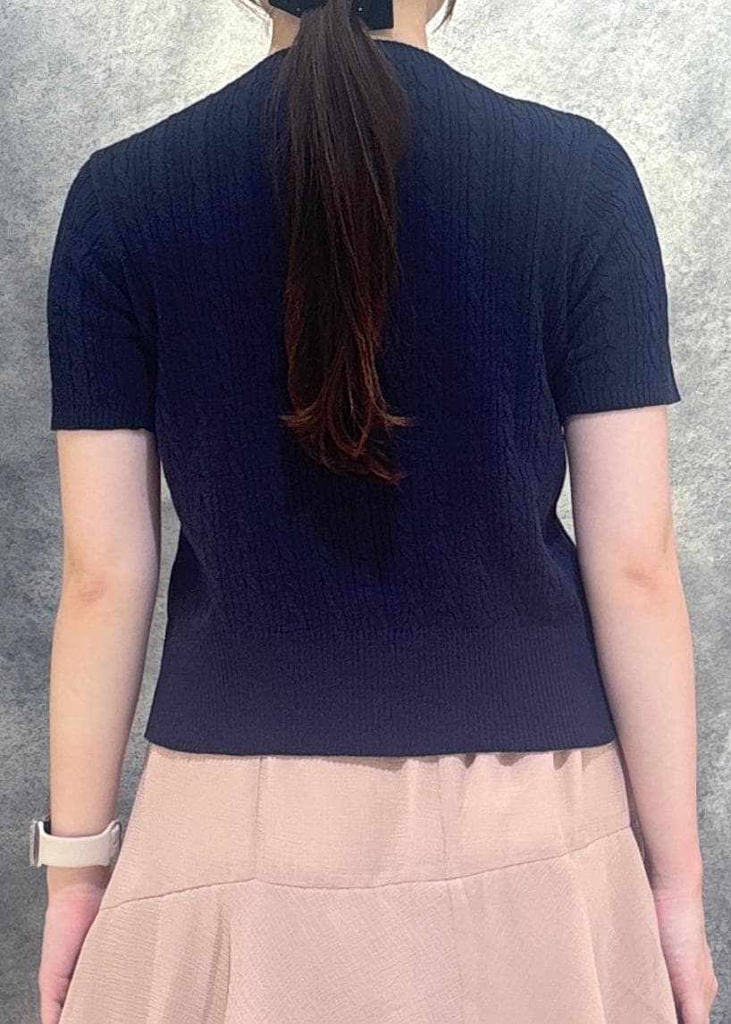 VIS【POLO BCS】VIS別注ハーフスリーブミニケーブルカーディガンネイビー / F¥6,600レビュー155cmで腰にかかるくらいの長さです。