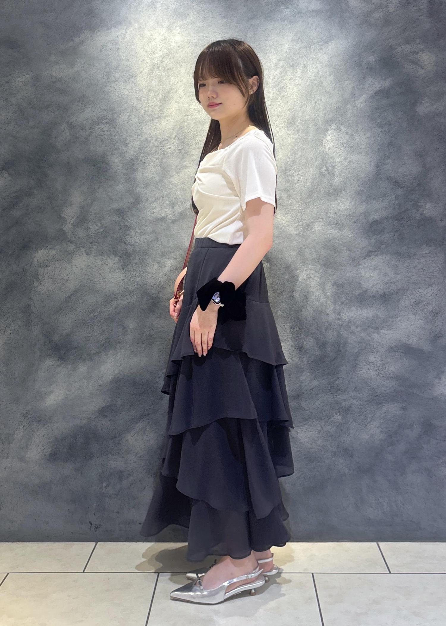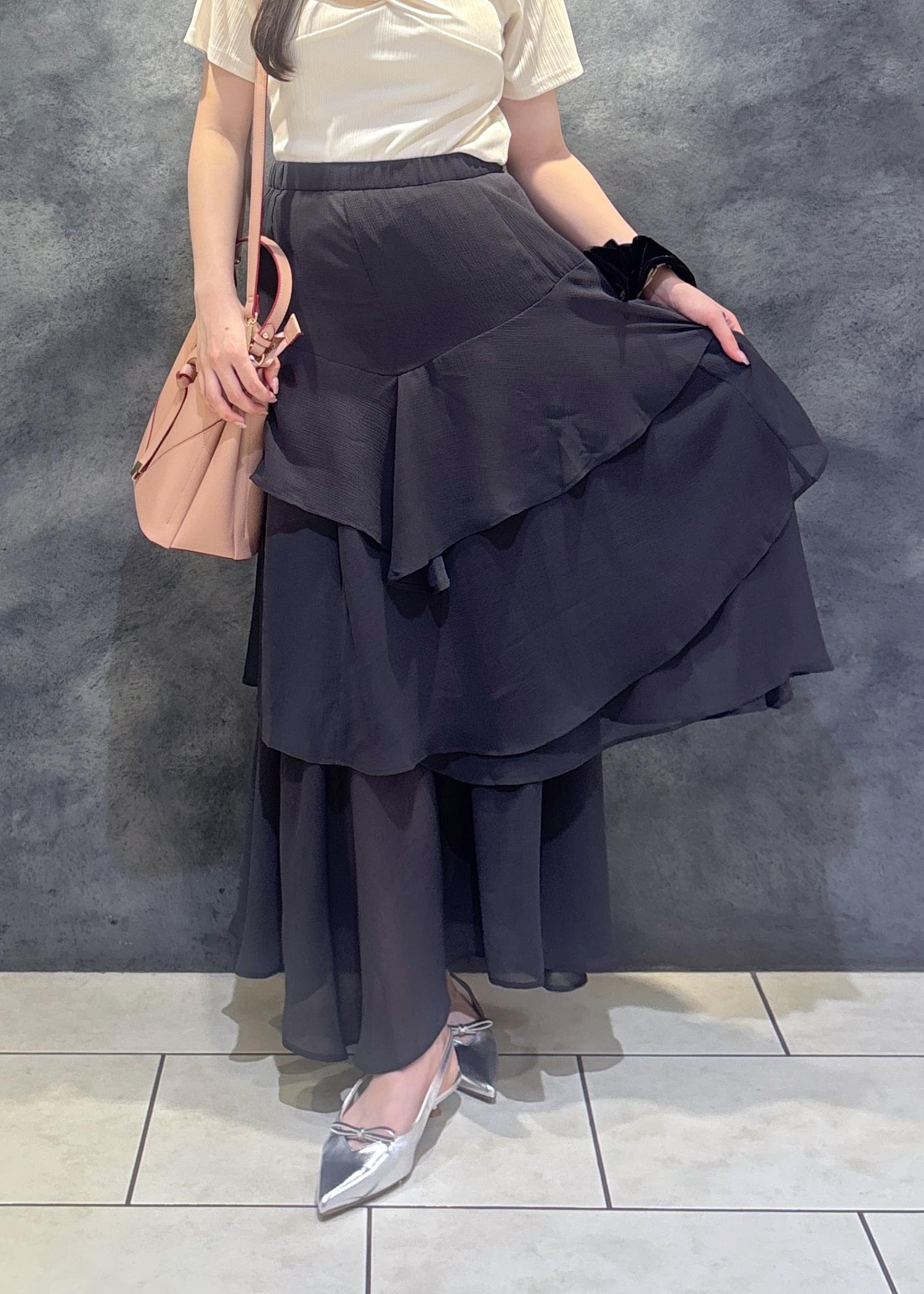 VIS花柄アソート楊柳ティアードスカートチャコール / F¥4,613レビュー155cmでかかとにかかる長さです。