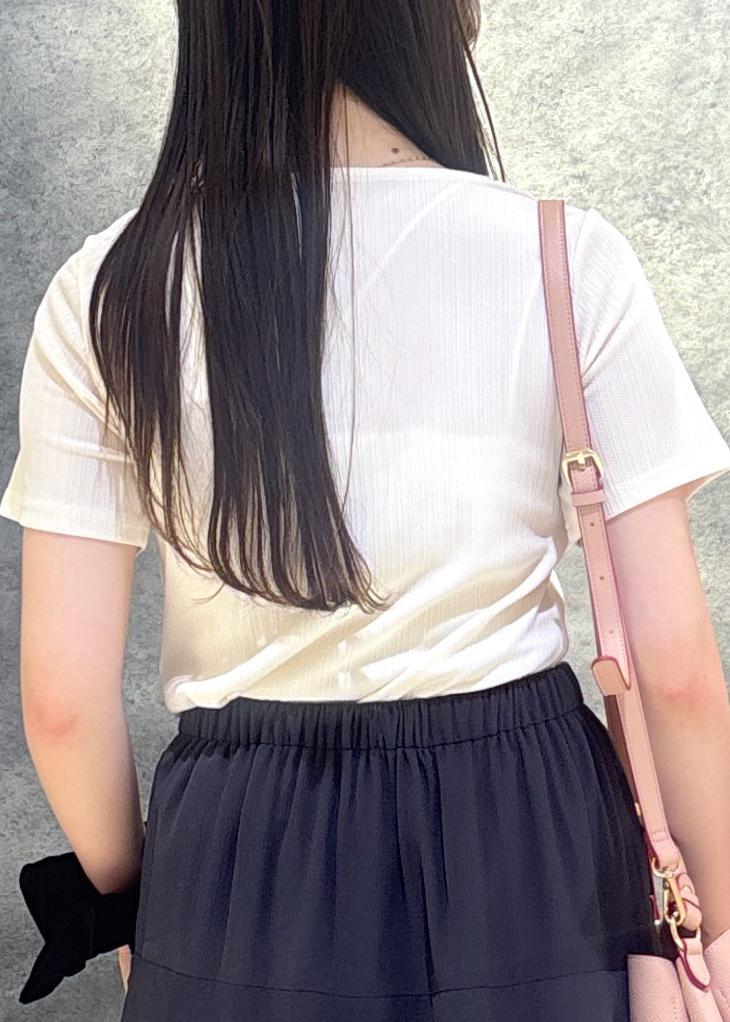 VISツイストテレコカットソーオフホワイト / F¥2,633レビューほどよく身体のラインに沿うデザインなので、女性らしい印象になります!