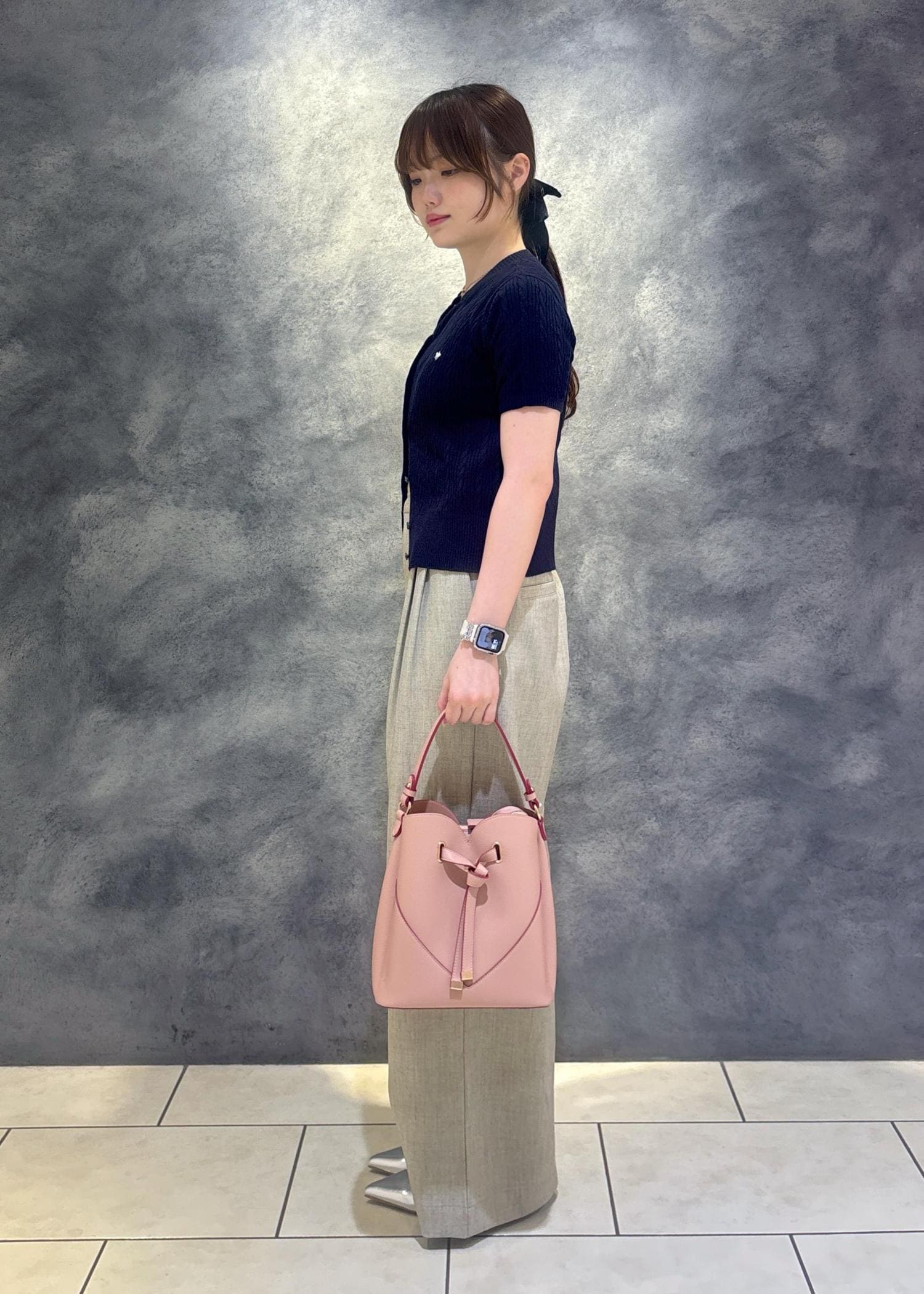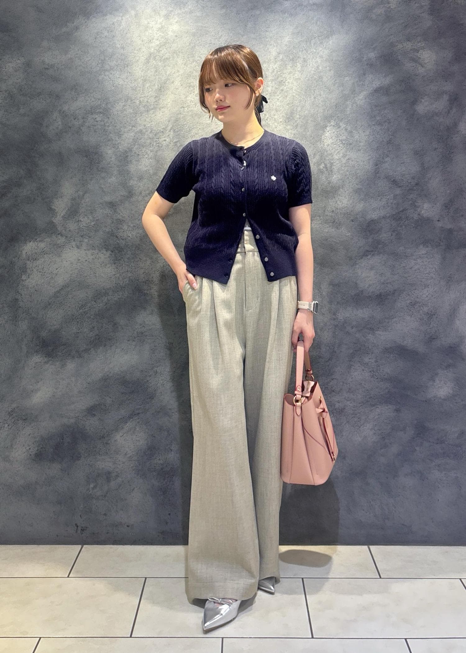 VIS【POLO BCS】VIS別注ハーフスリーブミニケーブルカーディガンネイビー / F¥6,600レビュー155cmで腰にかかるくらいの長さです。