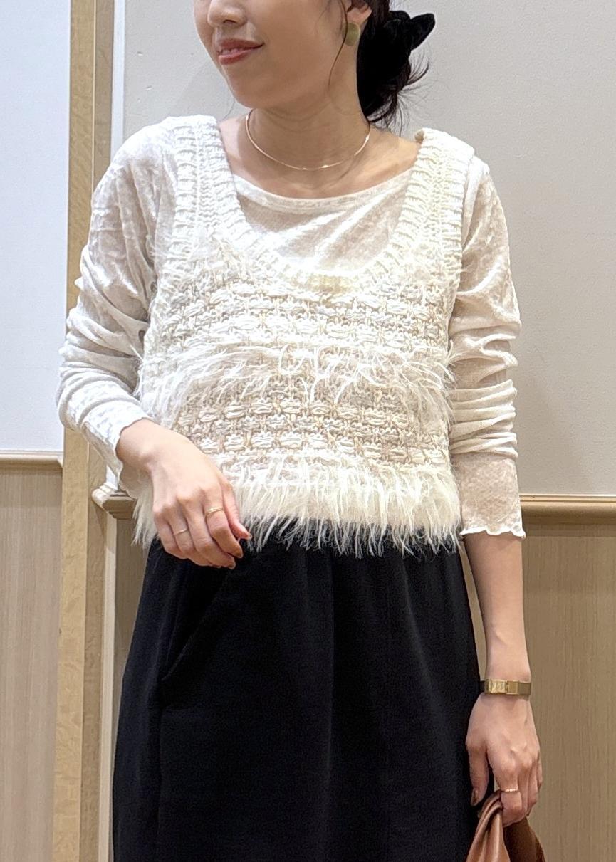 VISフェザーツイードニットビスチェ/2WAYキナリ / F¥5,489レビューフェザーのふわふわ感など、