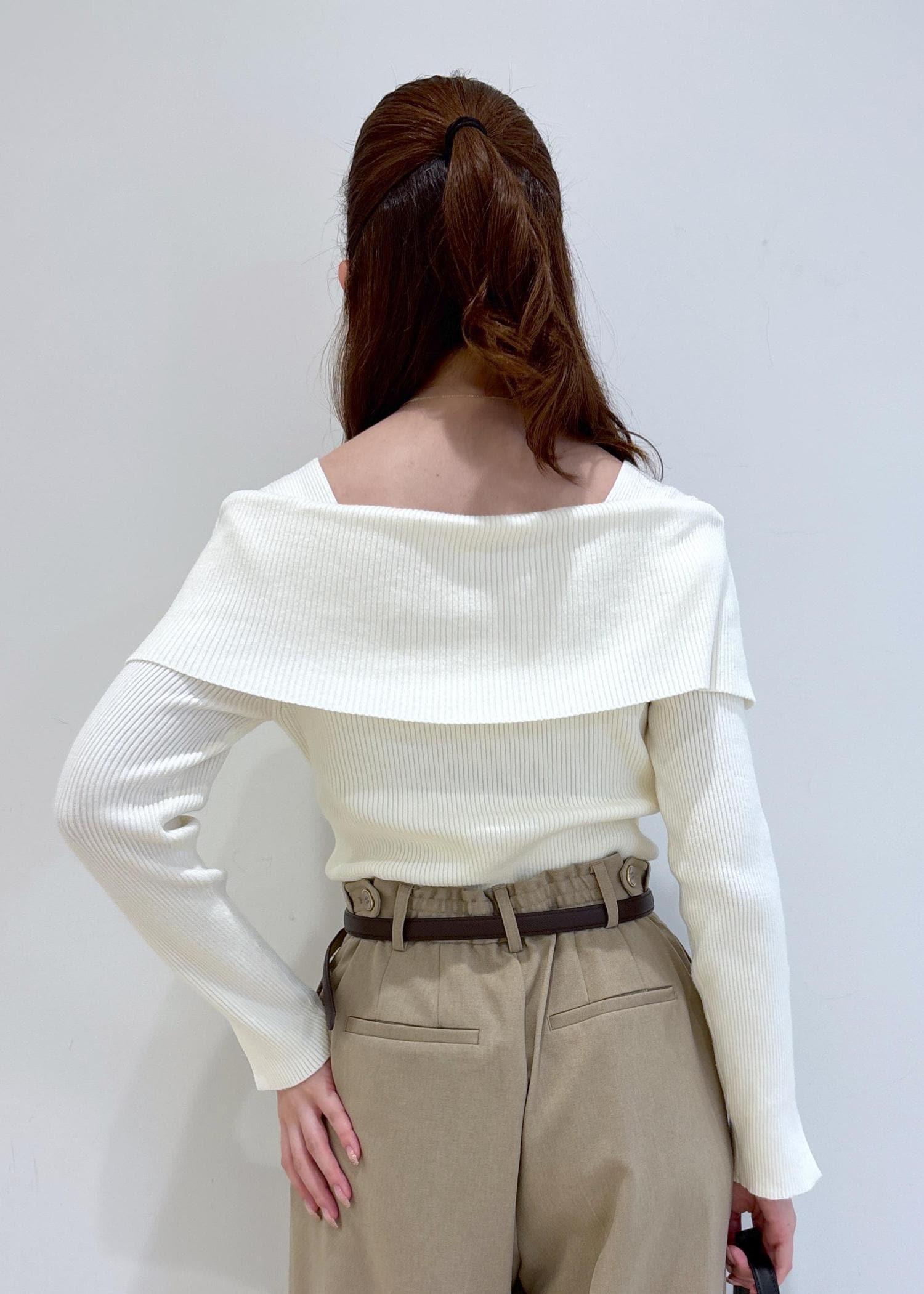 VISオフショルダーモチモチリブニットオフホワイト / F¥5,489レビュー程よく身体にフィットしますが、窮屈感はなくモチモチした伸縮性ある素材感で着心地が良いです。