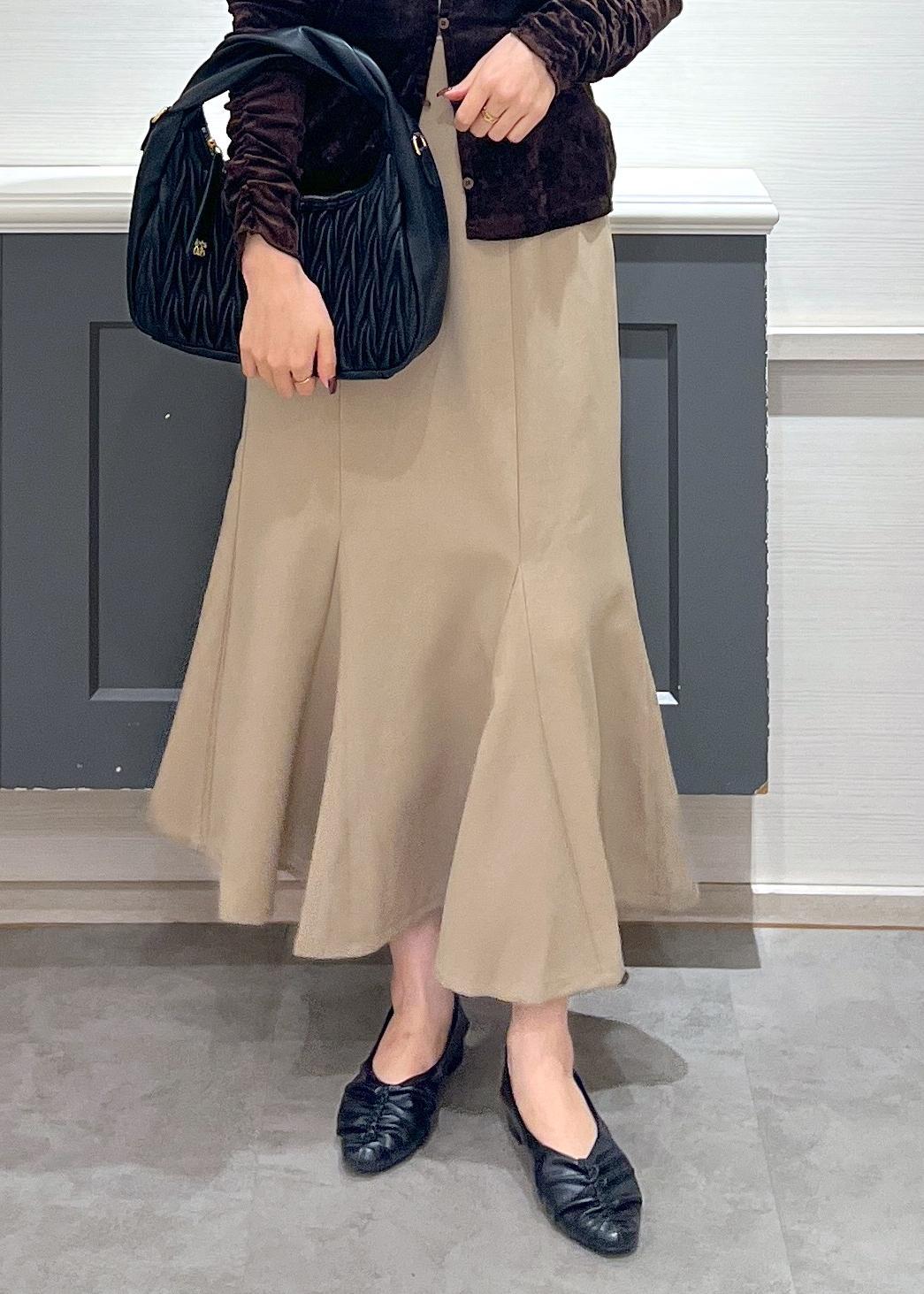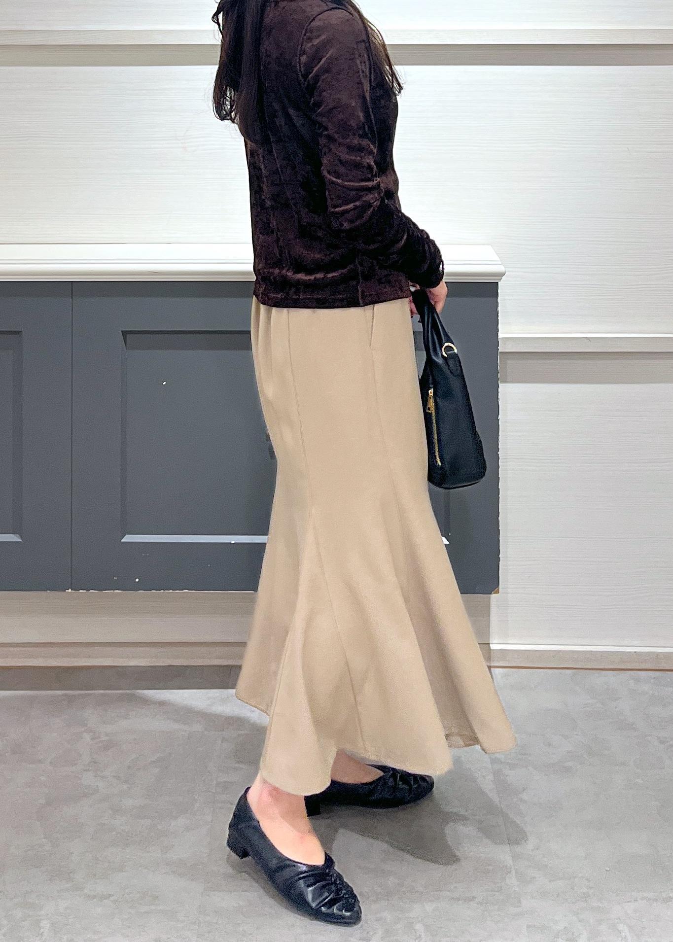 VIS美easyウーリッシュマーメイドスカート/セットアップ対応・イージーケアベージュ / S¥6,589レビュー156cmSサイズ着用で、ふくらはぎが隠れる丈感でした。
