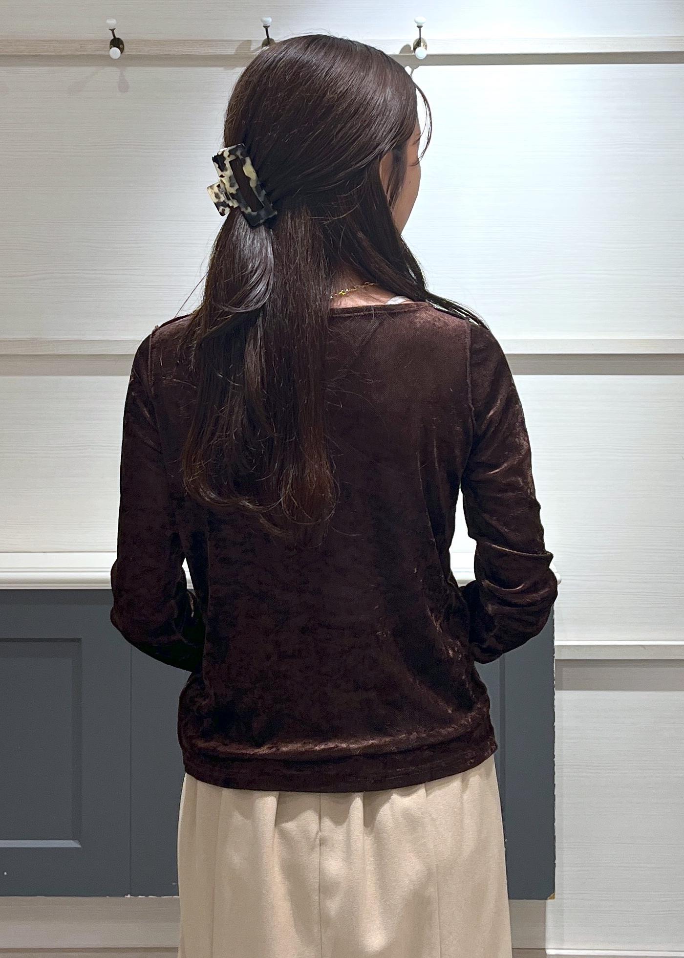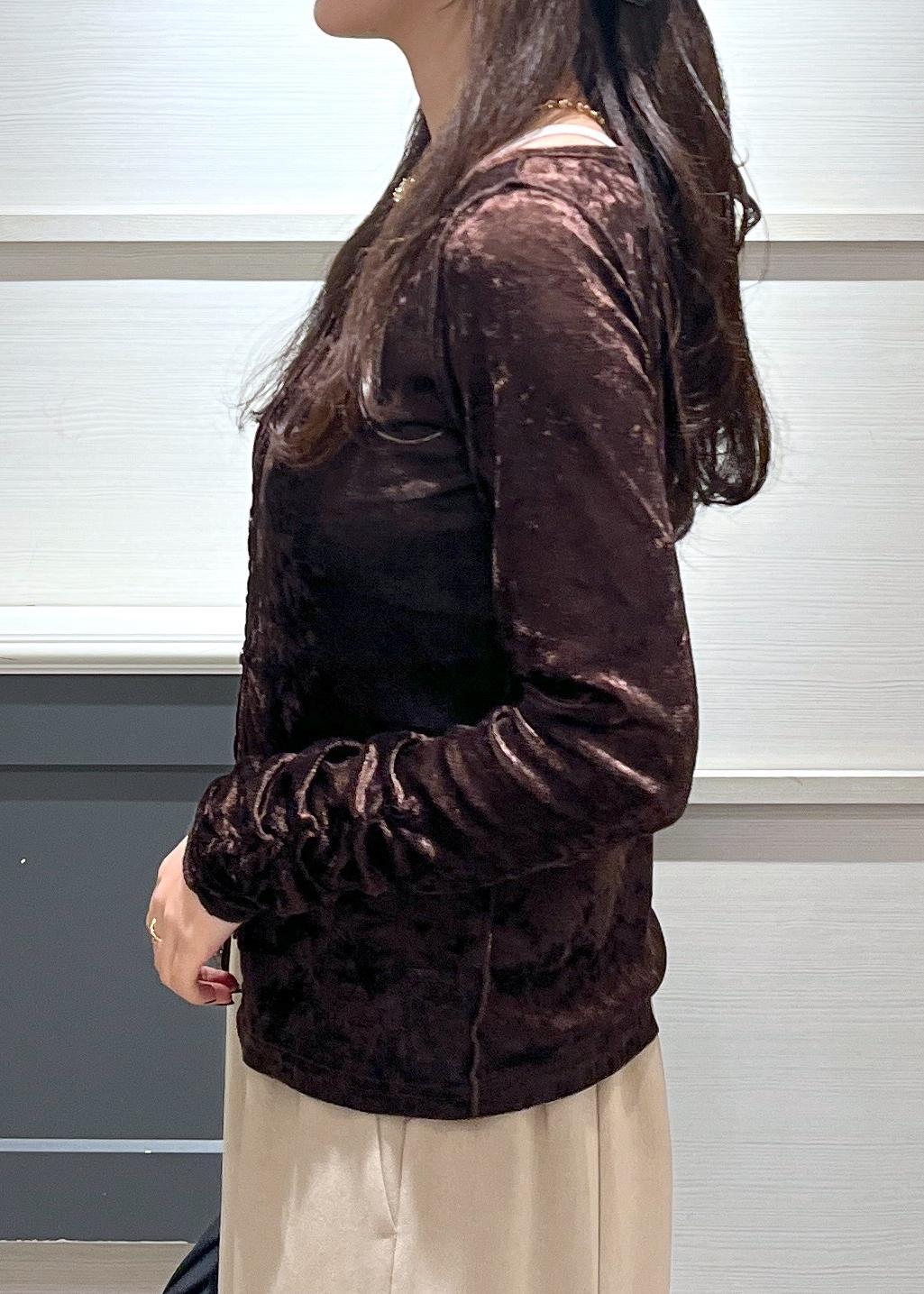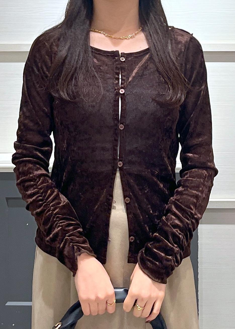 VIS【2WAY】花柄&無地アソート袖シャーリングベロアカーディガンダークブラウン / F¥3,951レビュー156cmでヒップにかかる丈感でした!