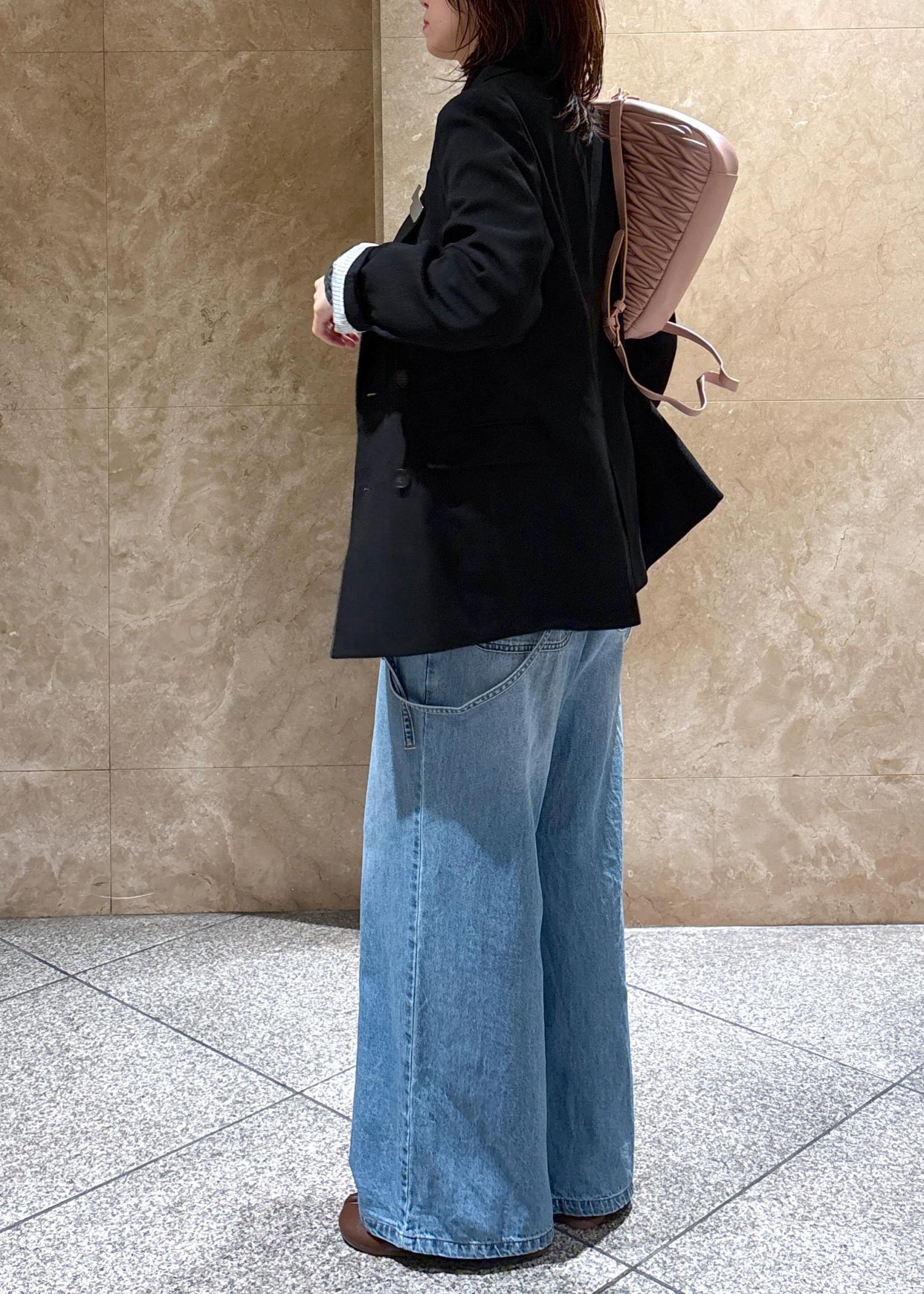 程よくゆとりのあるサイズ感ですが肩周りは落としたデザインではなくスッキリしているので、お仕事など少しフォーマルな場面でも使えるキレイめ見えジャケットです。 -