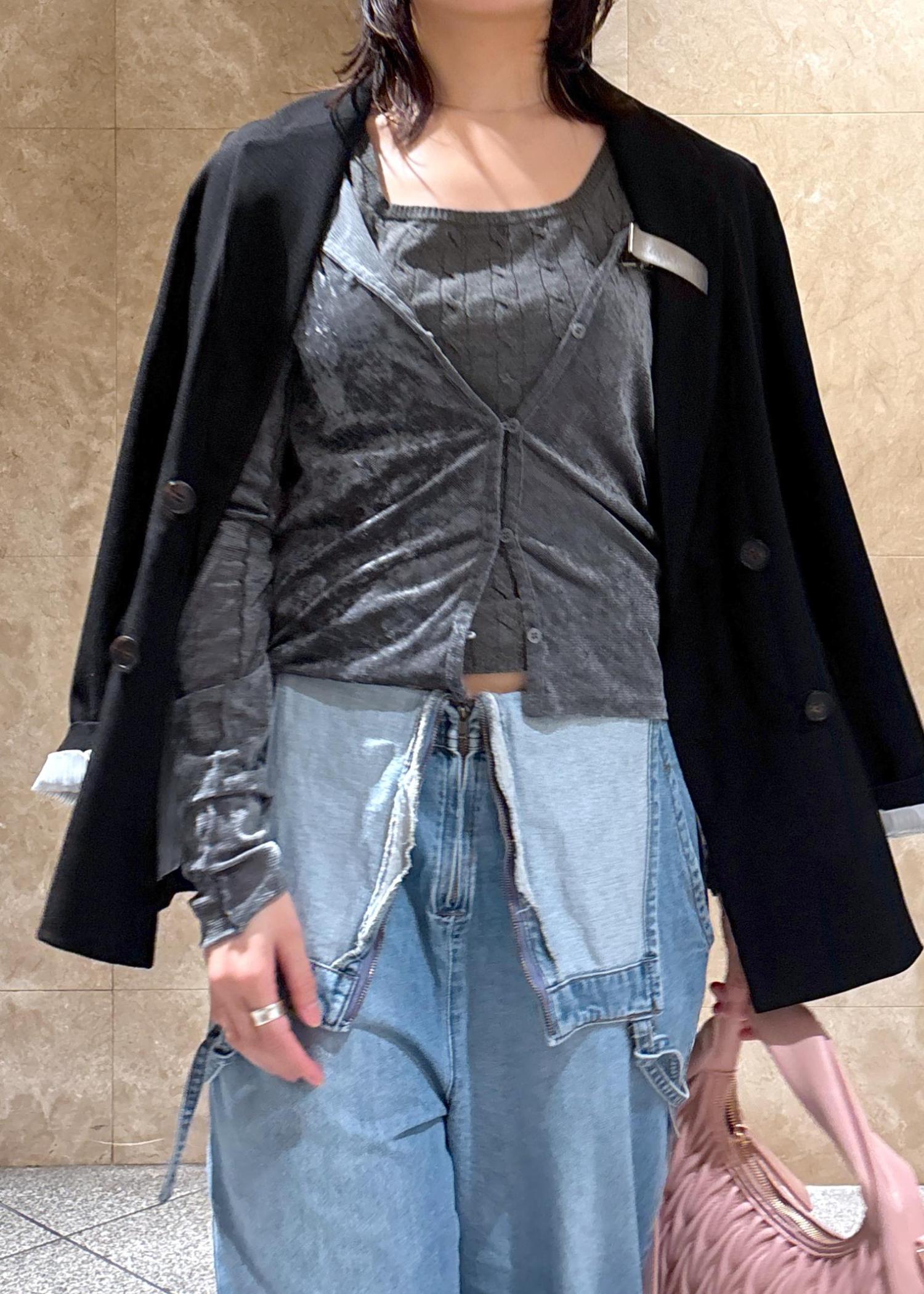 VIS【前後2WAY】ケーブルニットタンクトップチャコール / F¥2,633レビューショルダー部分の幅が広めなので、下着の肩紐が見えないくらいで単体でも着やすかったです✨