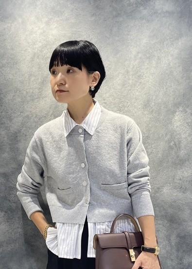 VISシャツレイヤード風メタルボタンカーディガンライトグレー / F¥6,589レビュー154センチでお尻少し見える着丈になります。