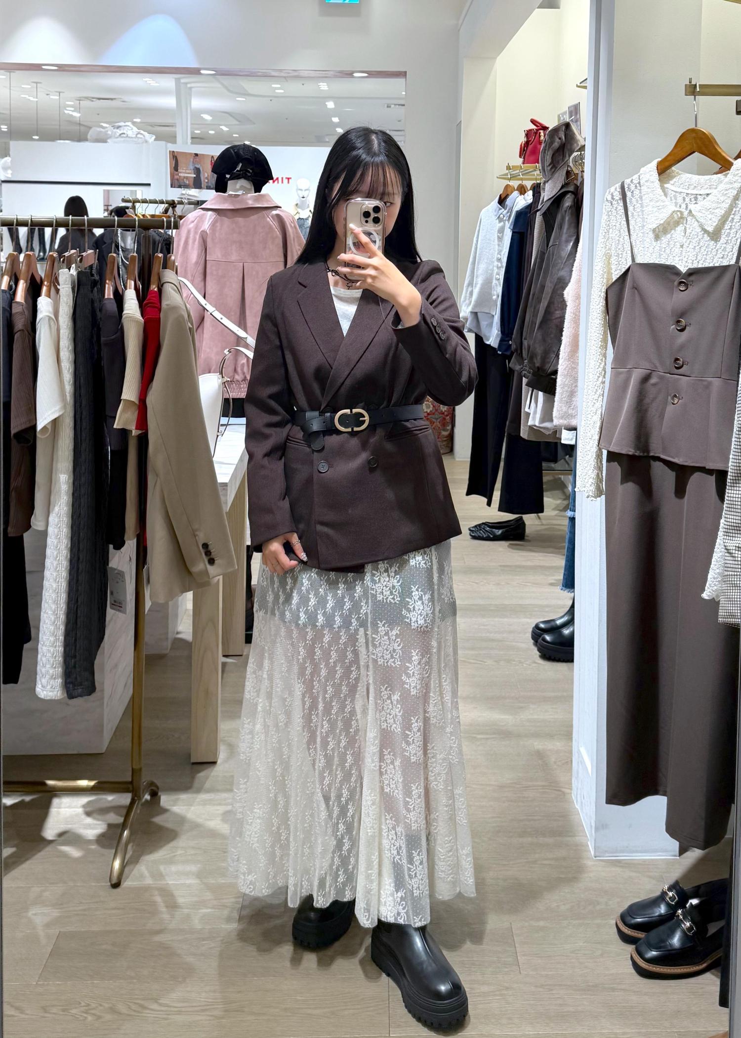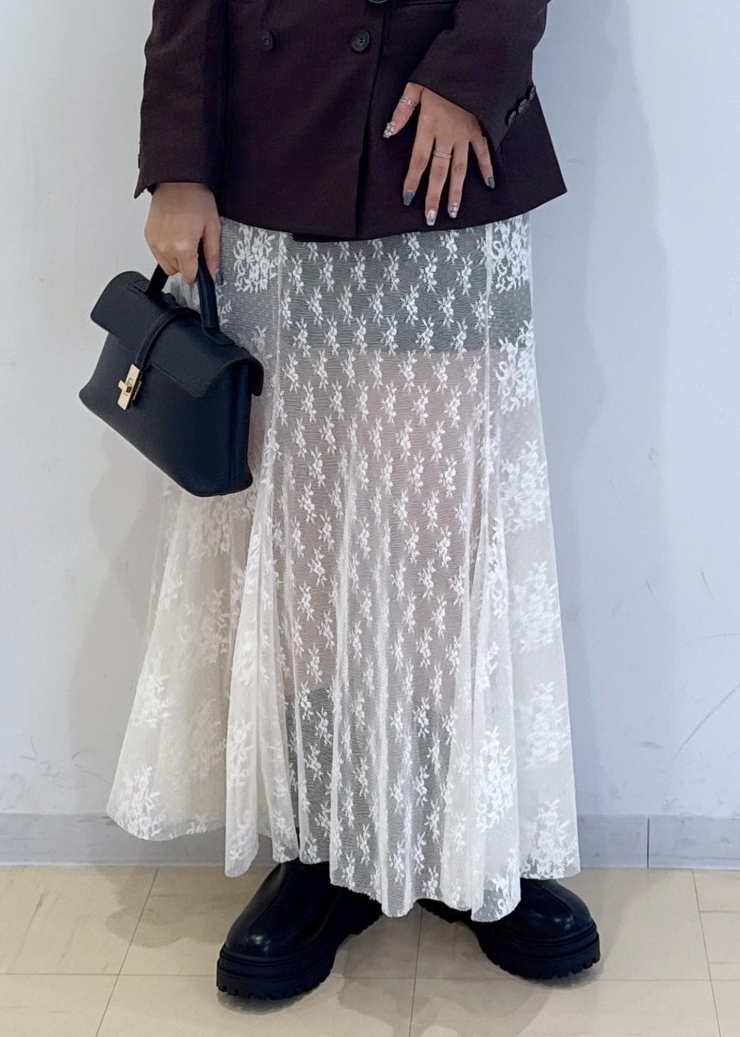 透けるレーススカートの下にショートパンツを仕込めば、ガッツリ足出しすることなくショート丈に挑戦していただけます◎