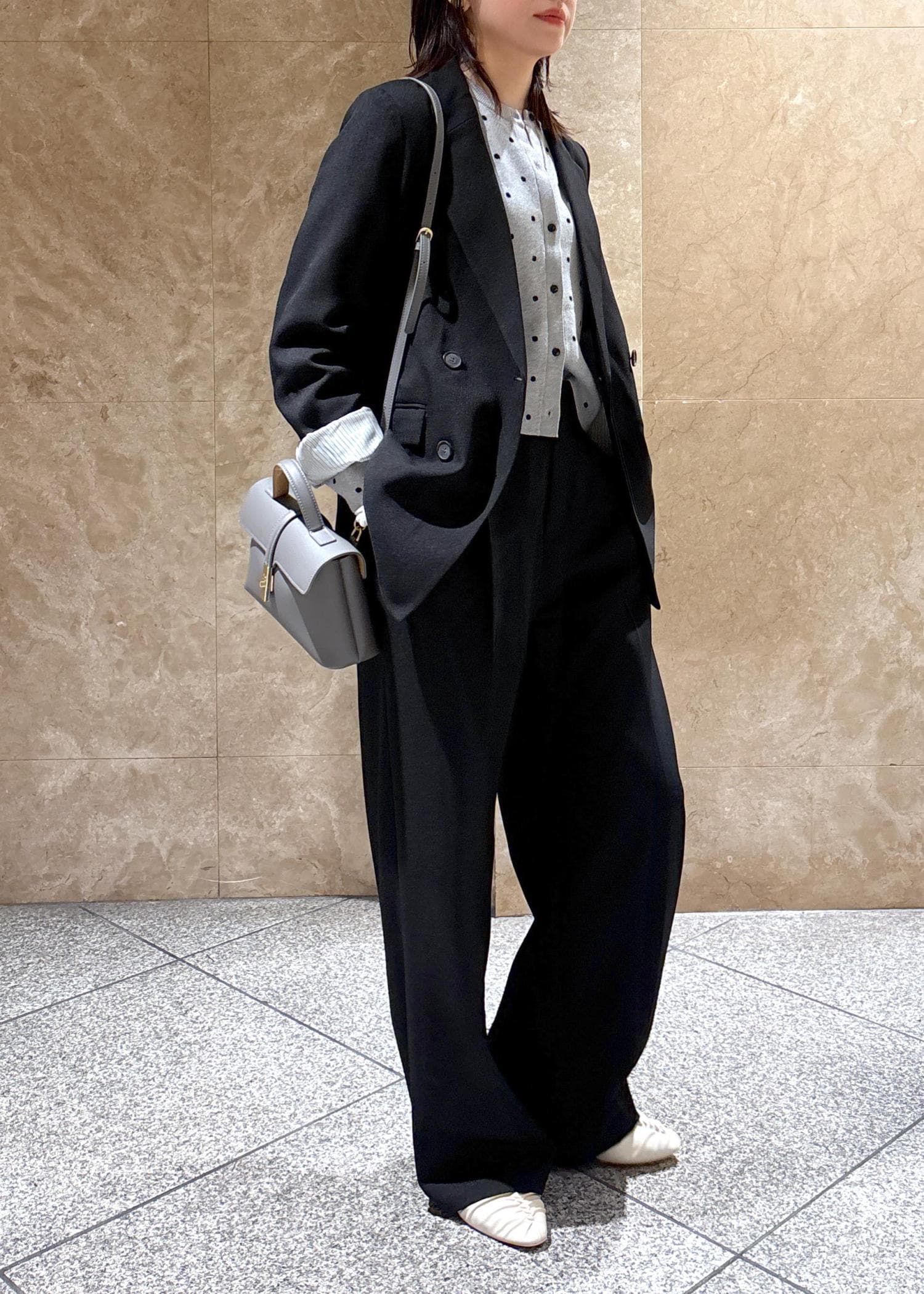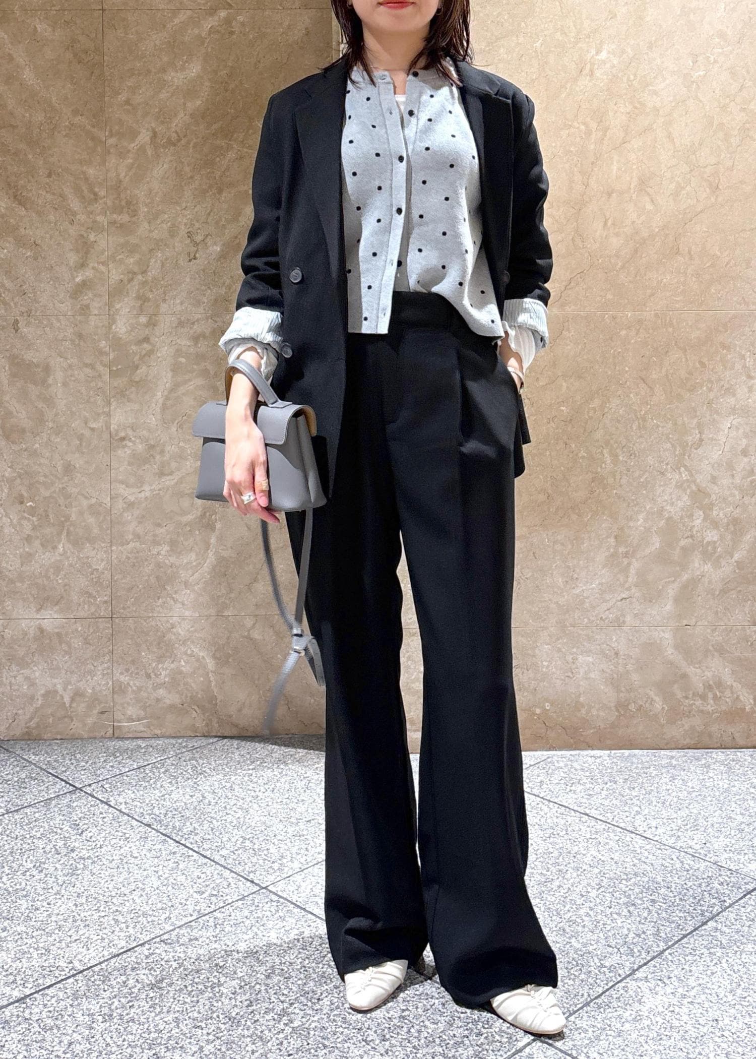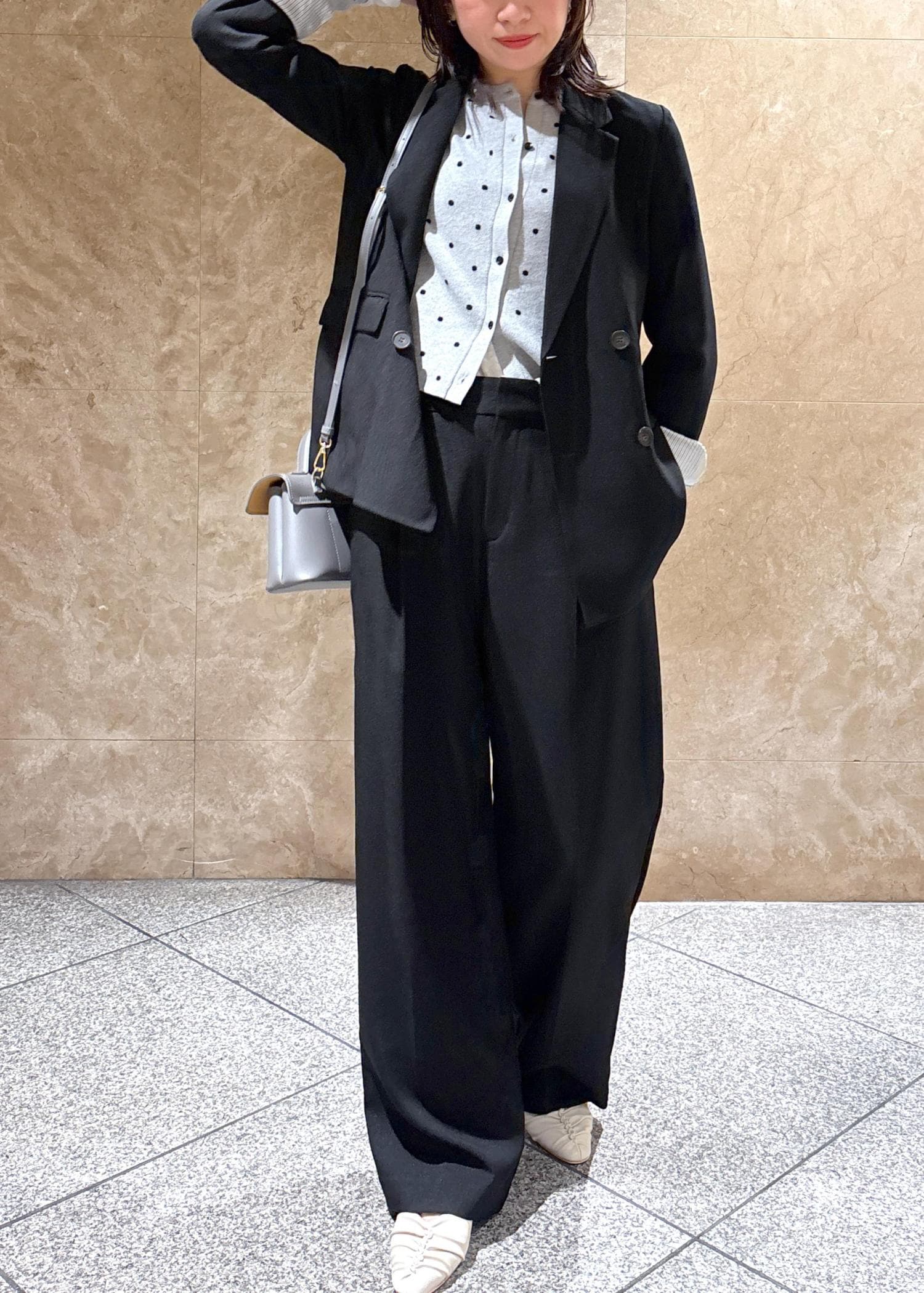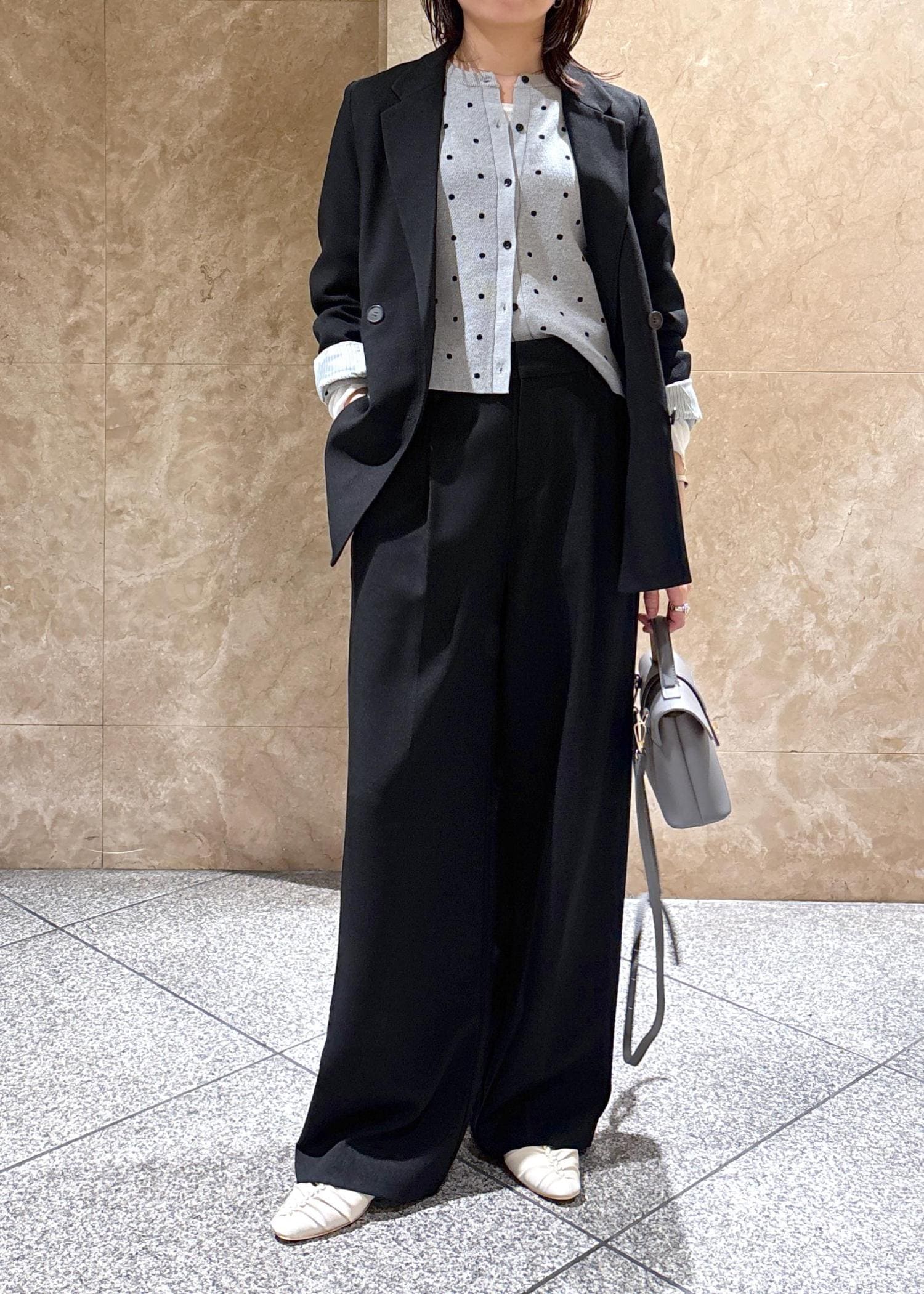 インナー次第でいろんなシーズンに着られる素材感です。 -