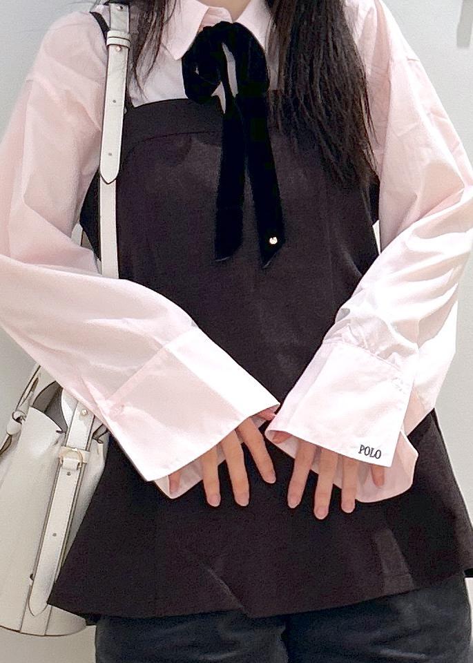 VIS【POLOBCS】VIS別注ウエストタックフレアシャツピンク / F¥6,930レビューウエストがキュッと締まったシルエット且つ着丈は身長166センチでお尻に掛かるくらいの丈感なので スタイルアップと体型カバーがどちらも可能です。カフスがややペプラム風に広がっており、アクセントになるのでジャケットやスウェットとのレイヤードで、袖を強調するスタイルもおすすめです!