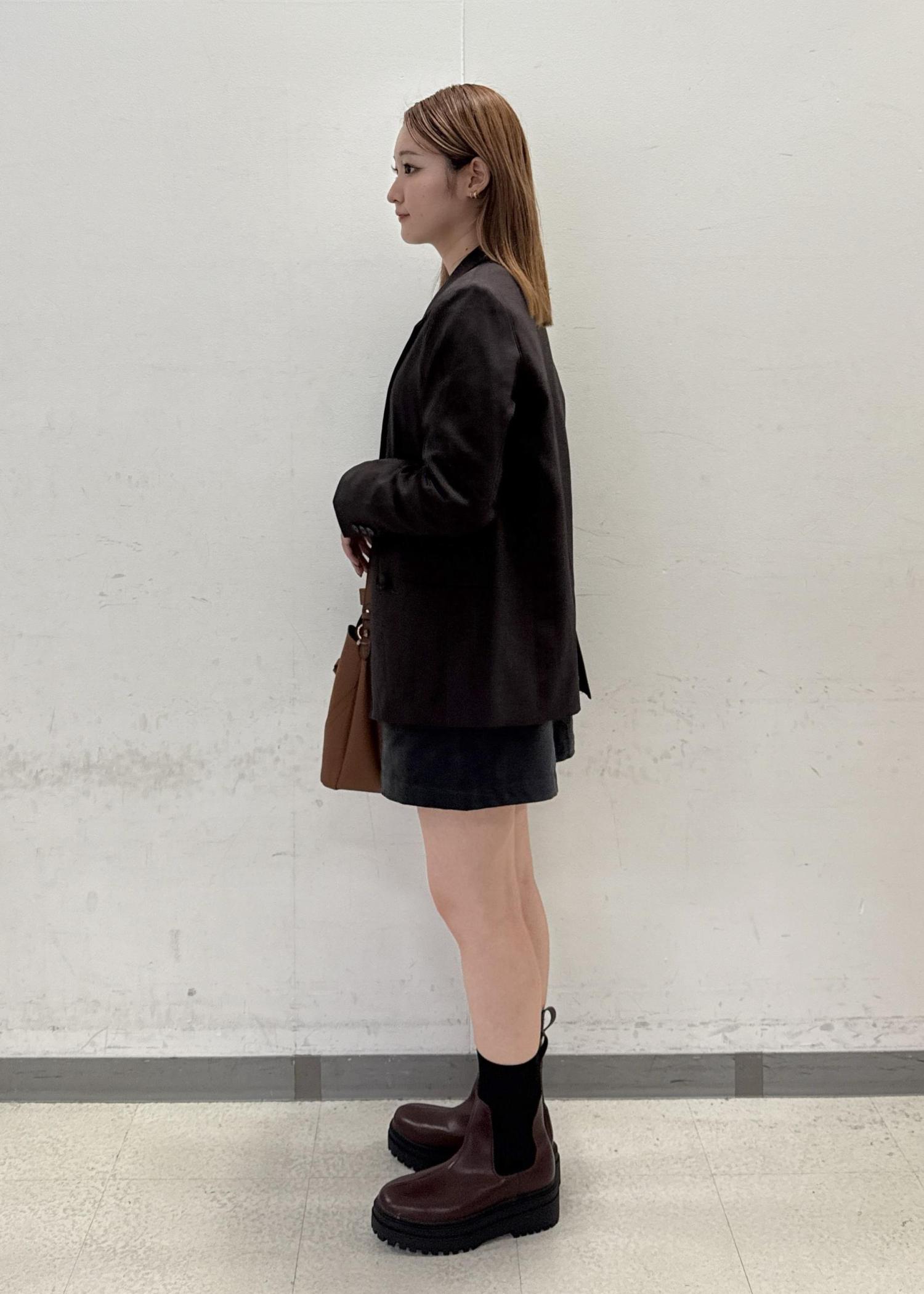 VIS【美easy】ウーリッシュダブルブレストテーラードジャケット【セットアップ対応/洗える】ダークブラウン / S¥8,899レビュー158cmの身長で、お尻が隠れるくらいの身丈でした。