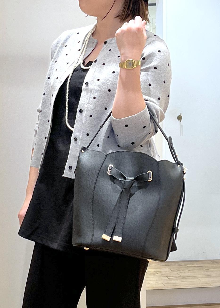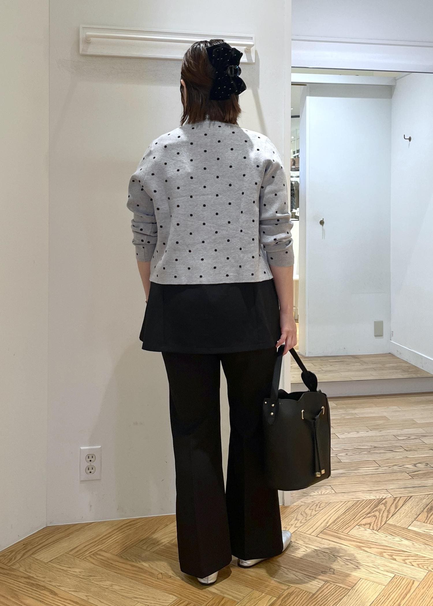 ドット柄は可愛くなってしまいそう…と抵抗がありましたが、モノトーンの配色なので、着てみると甘くなりすぎずシックな印象でも楽しめました♡