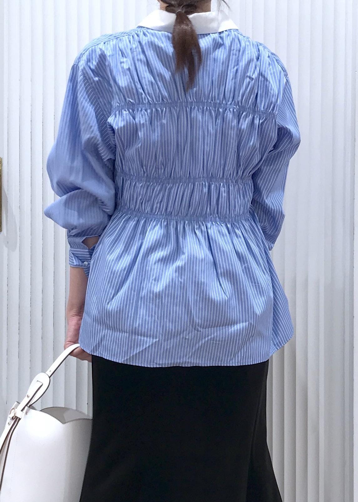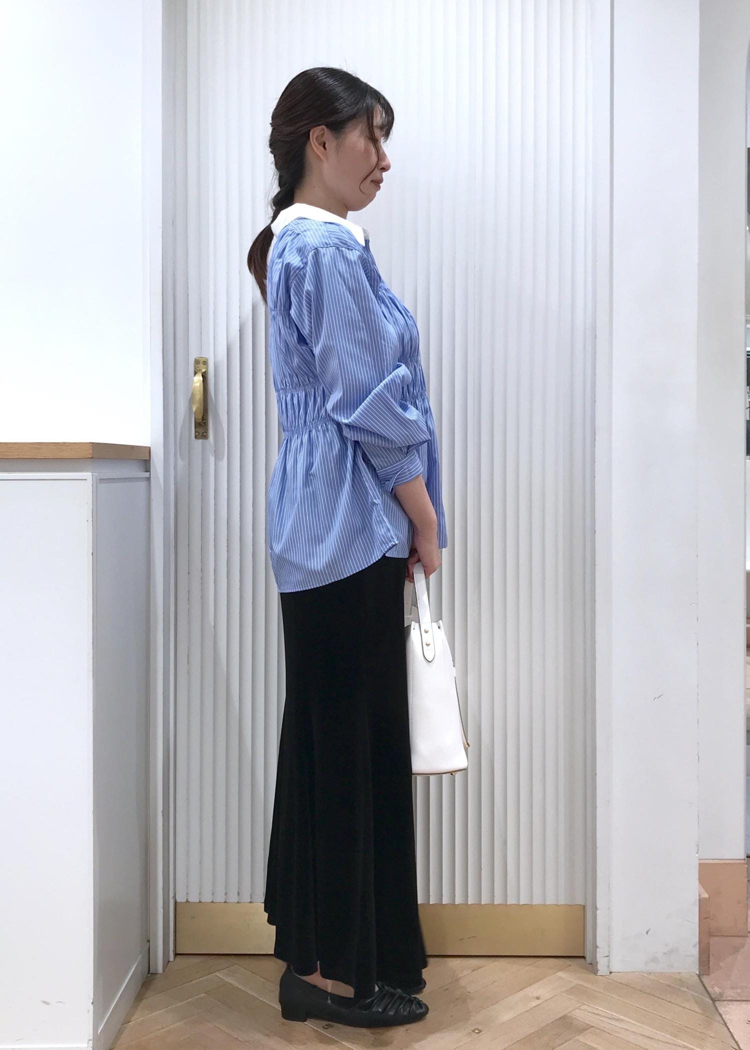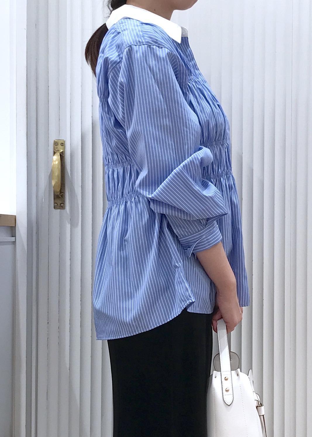 身幅はシャーリングでスッキリ見えが叶いますが、ピタッとし過ぎずリラックスして着用出来ます。 -
