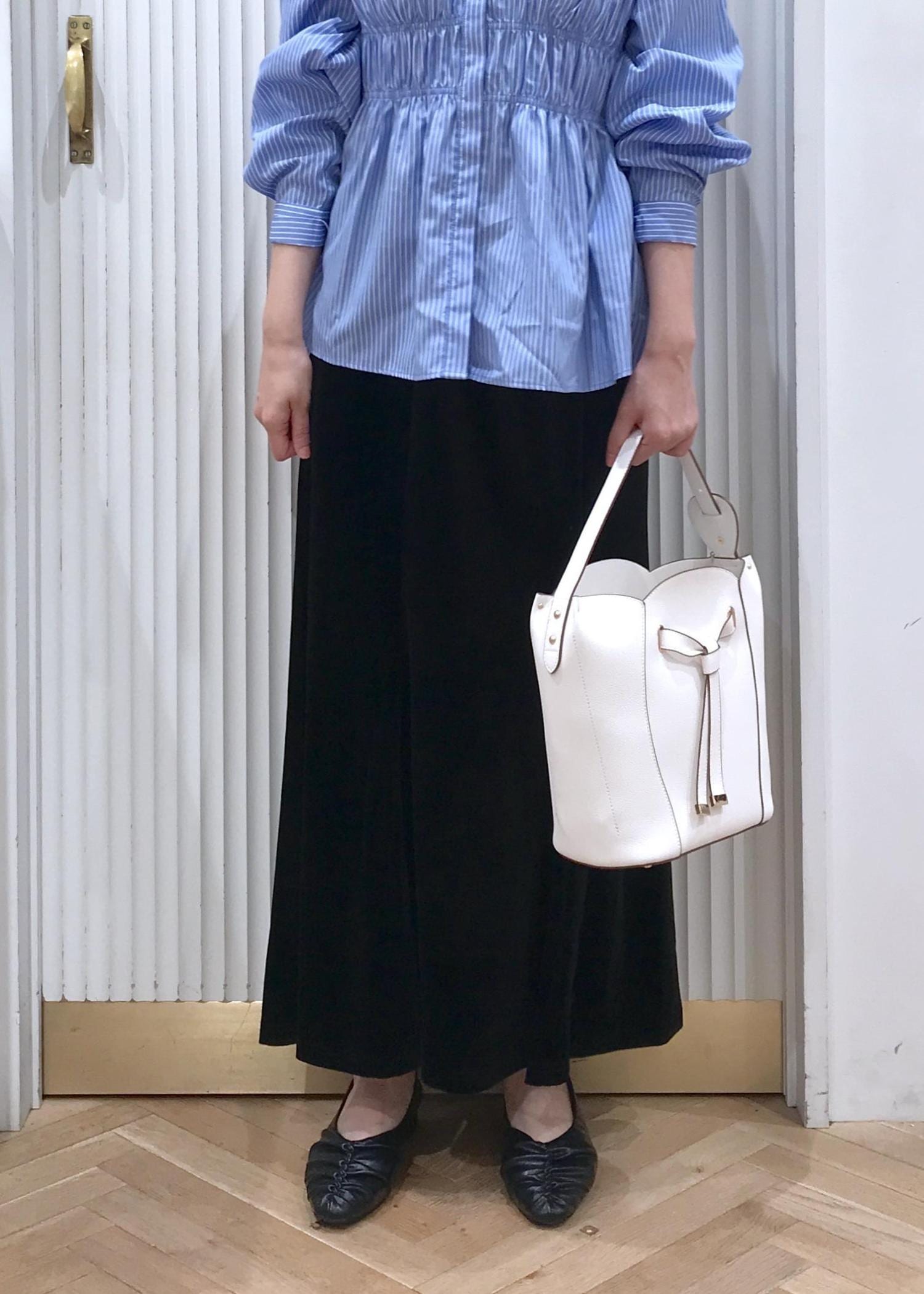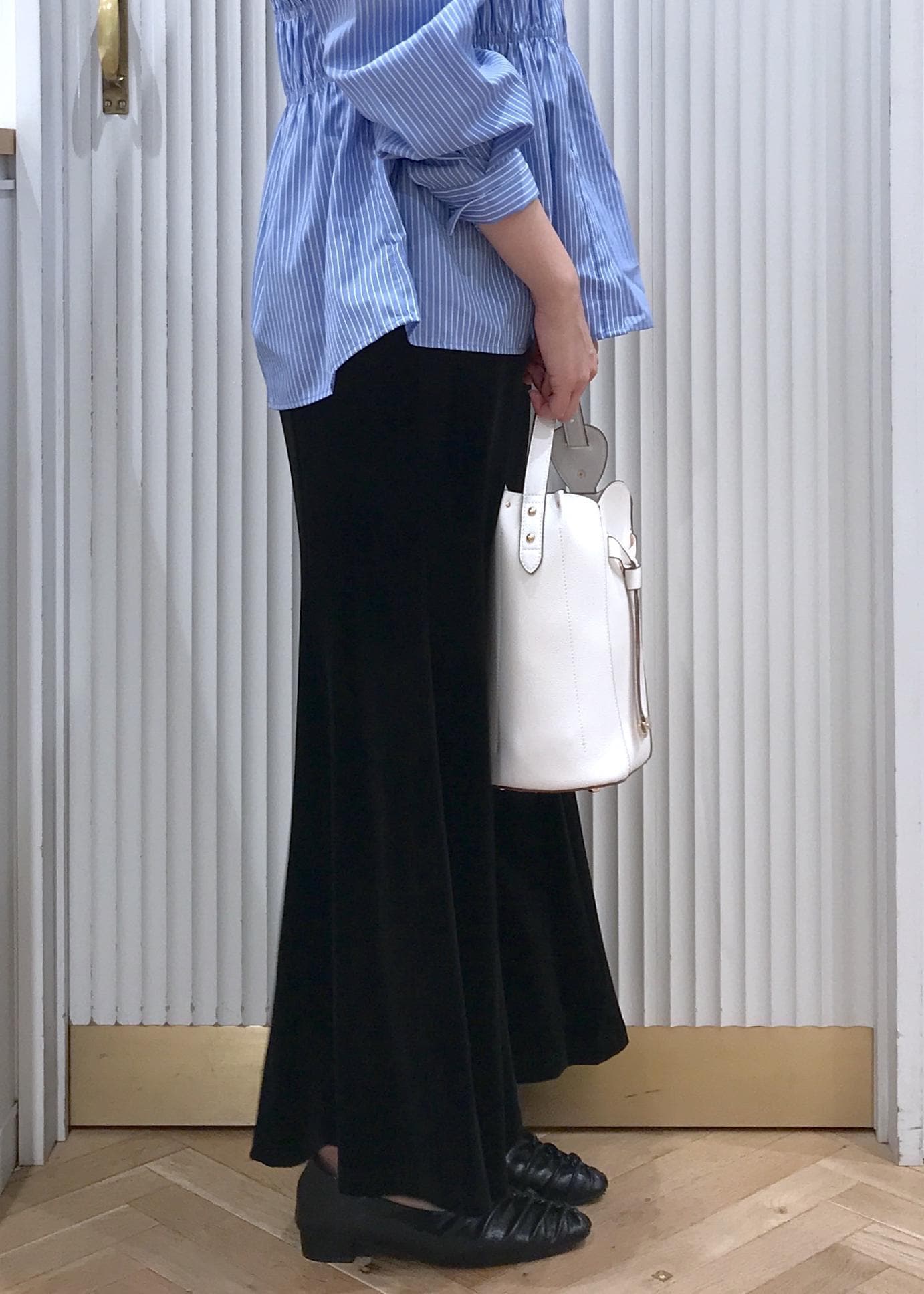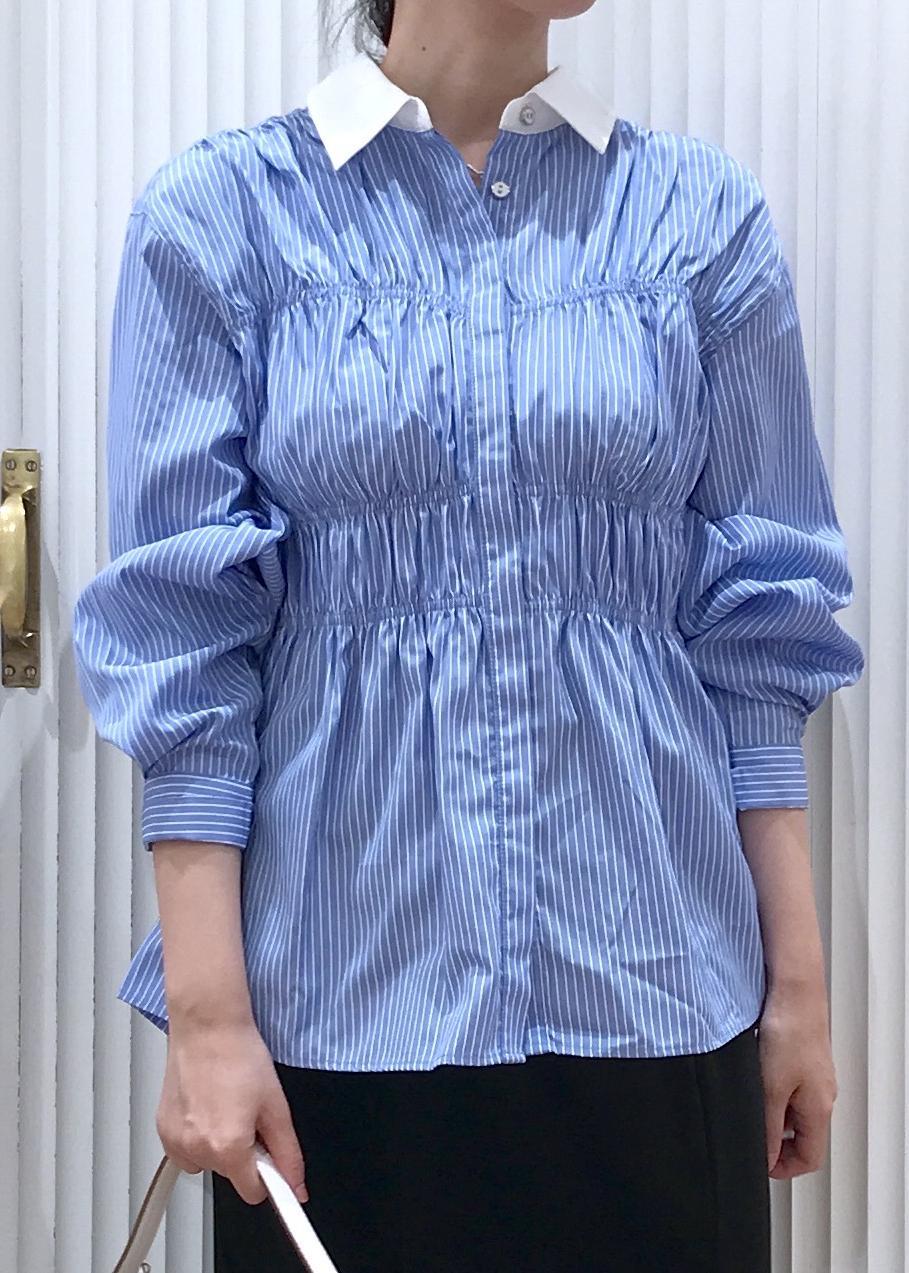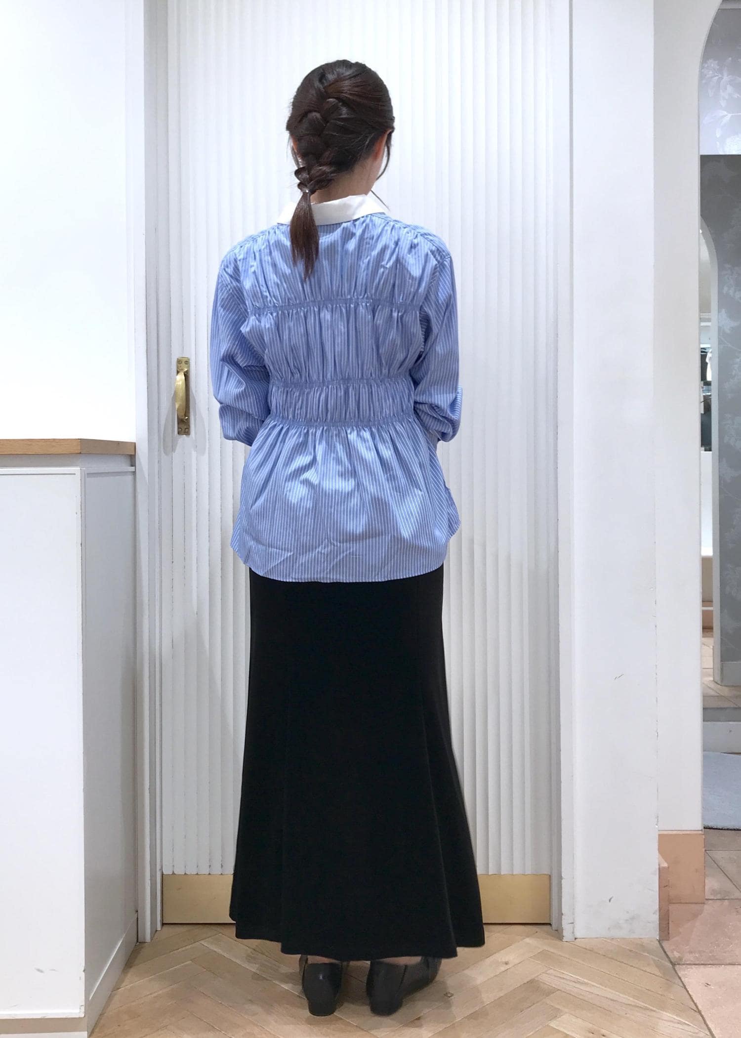 身幅はシャーリングでスッキリ見えが叶いますが、ピタッとし過ぎずリラックスして着用出来ます。 -