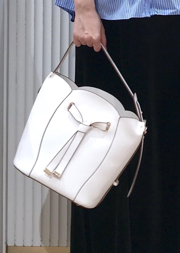 可愛いフラワー型のバッグで、ショルダーにも変えられるので、オンオフ両方使いまわせますよ。 -