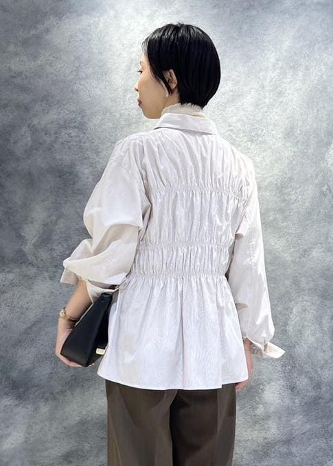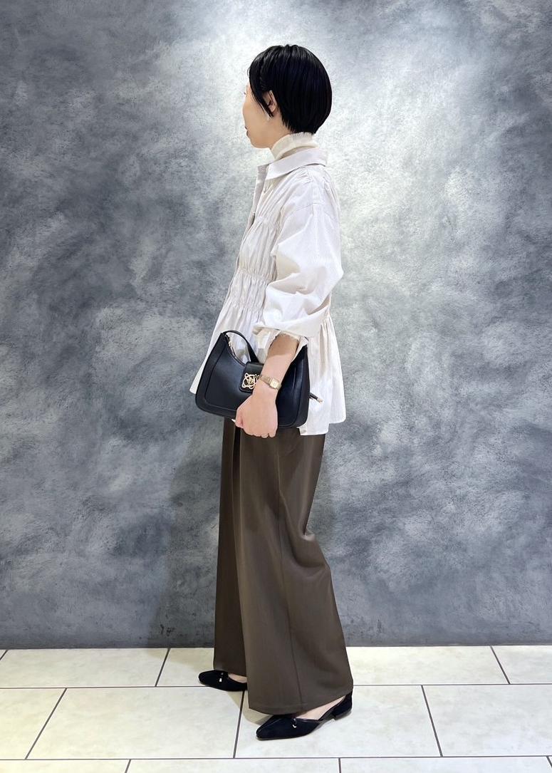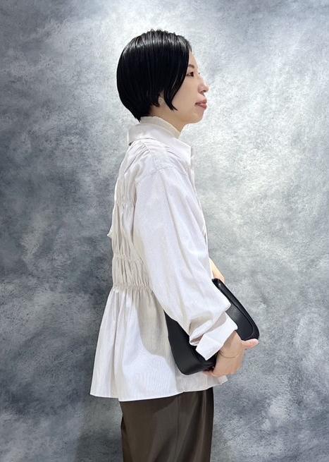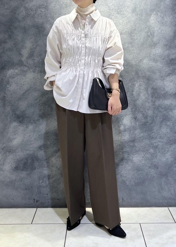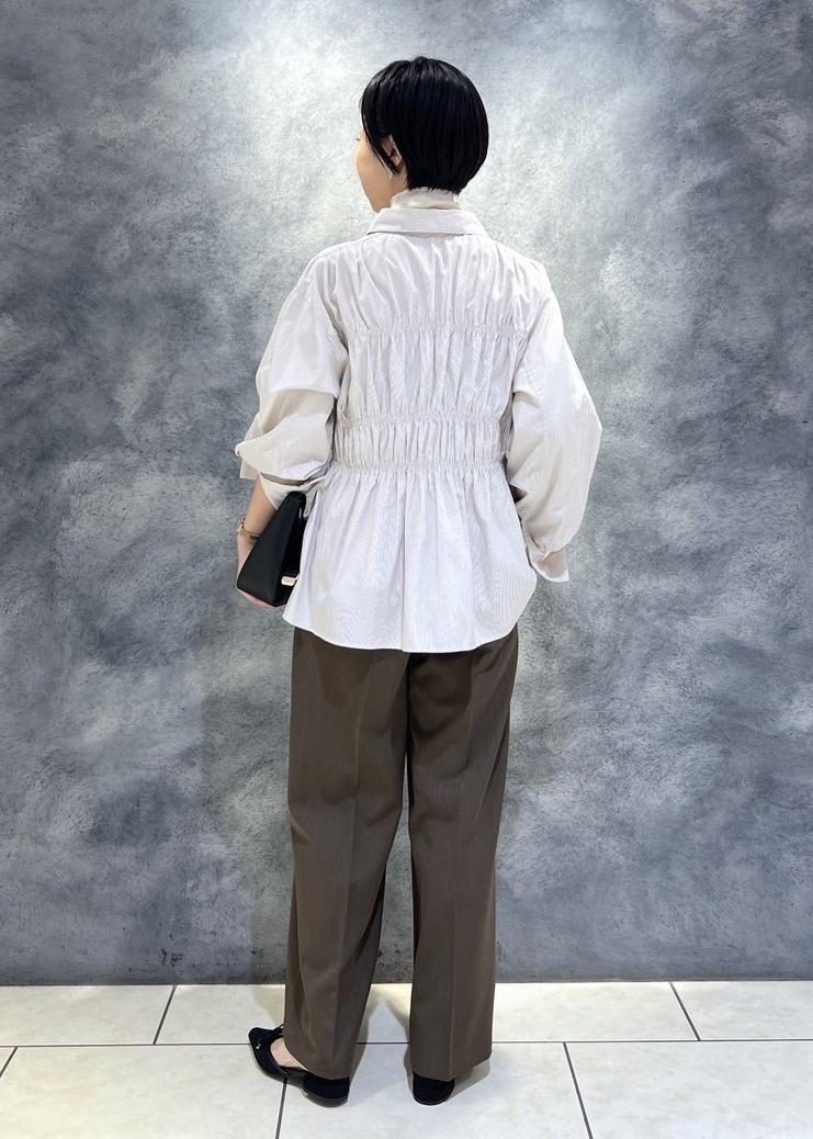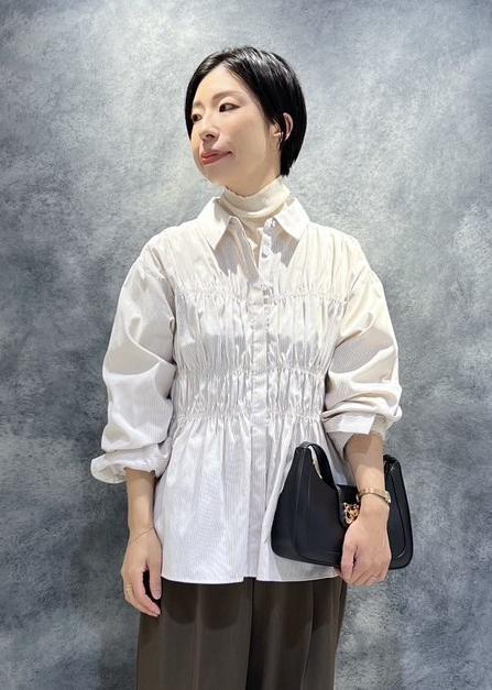 VISシャーリングデザインシャツベージュ系 / F¥5,489レビューフリーサイズですが、シャーリングが入っているのでスッキリ見えます。