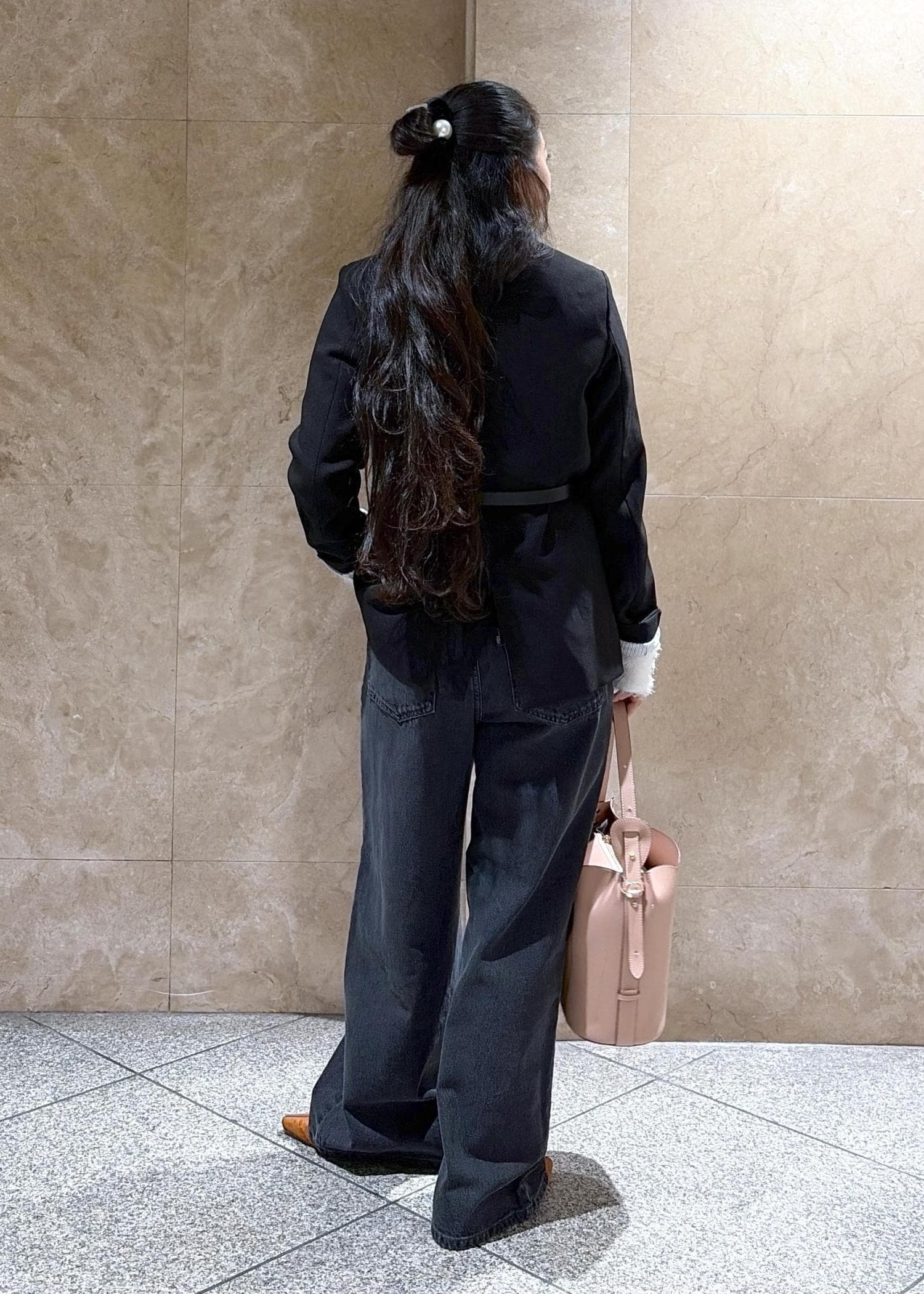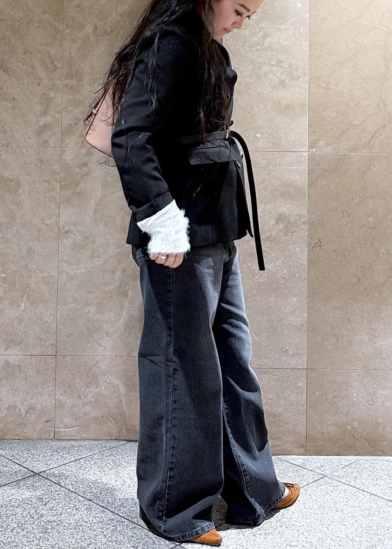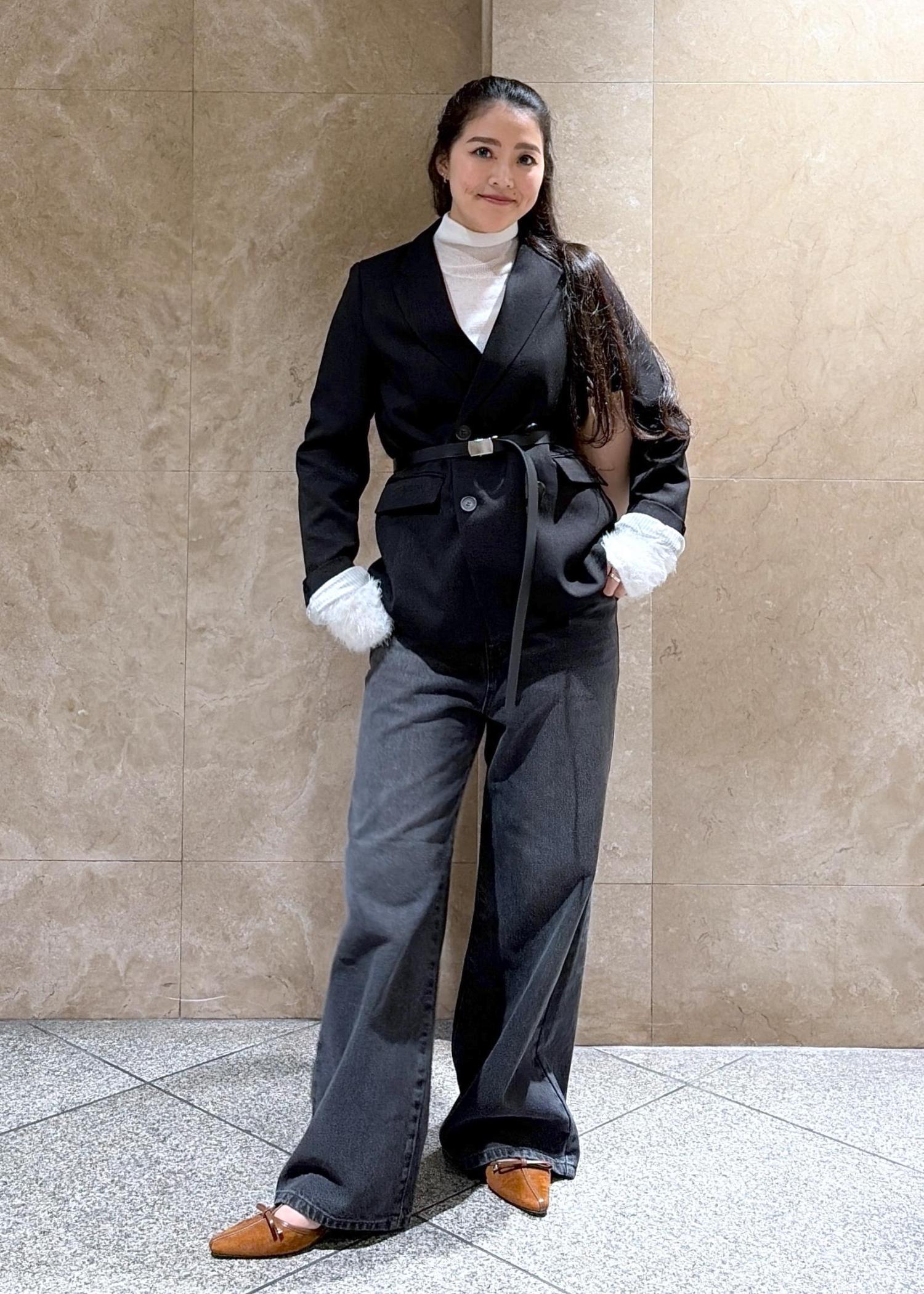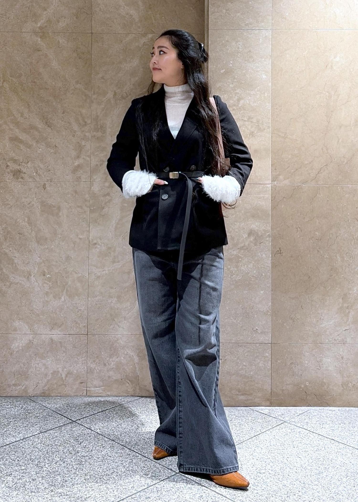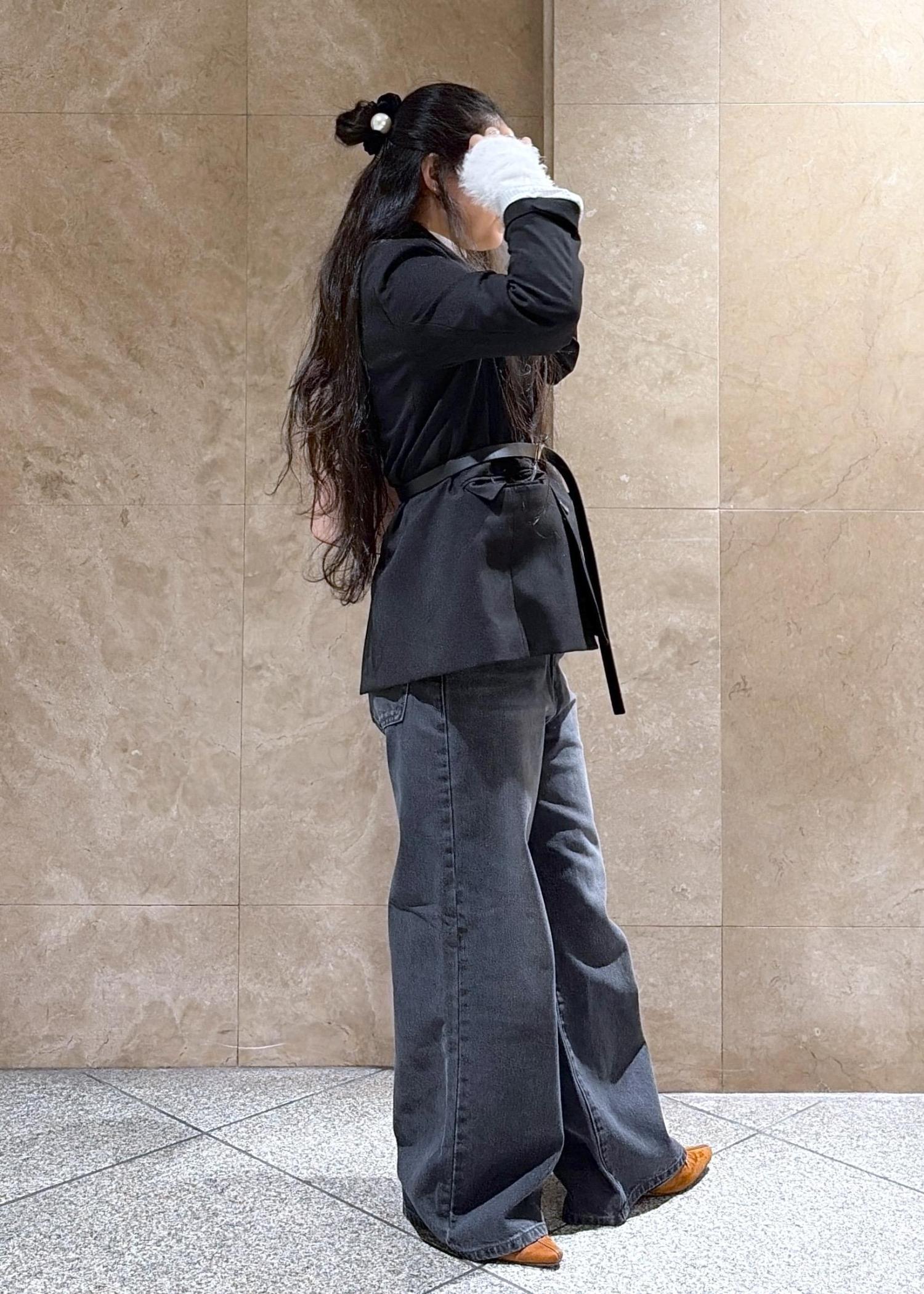 身長が低めなので155cmMサイズであまり低めのサンダルなどを履いてしまうと引き摺ってしまいますので高めのスニーカーをオススメします◎ -