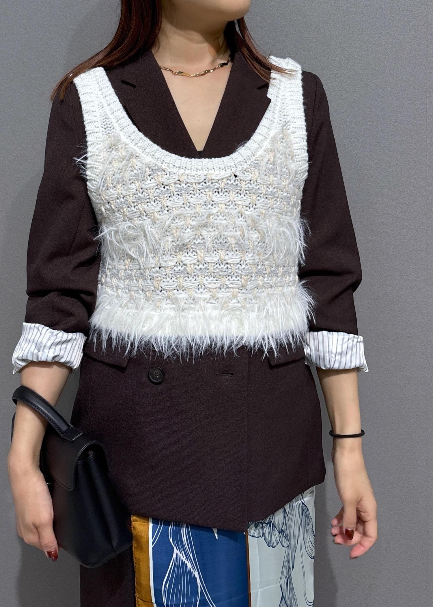VISフェザーツイードニットビスチェ/2WAYキナリ / F¥5,489レビュー柔らかくてごわつきはないです。