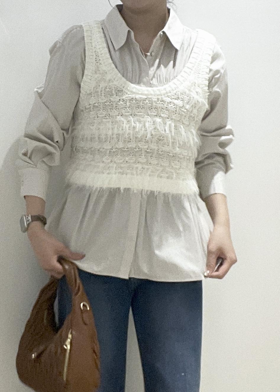 VISフェザーツイードニットビスチェ/2WAYキナリ / F¥5,489レビューフェザーのふわふわが冬っぽくて可愛いデザインです。