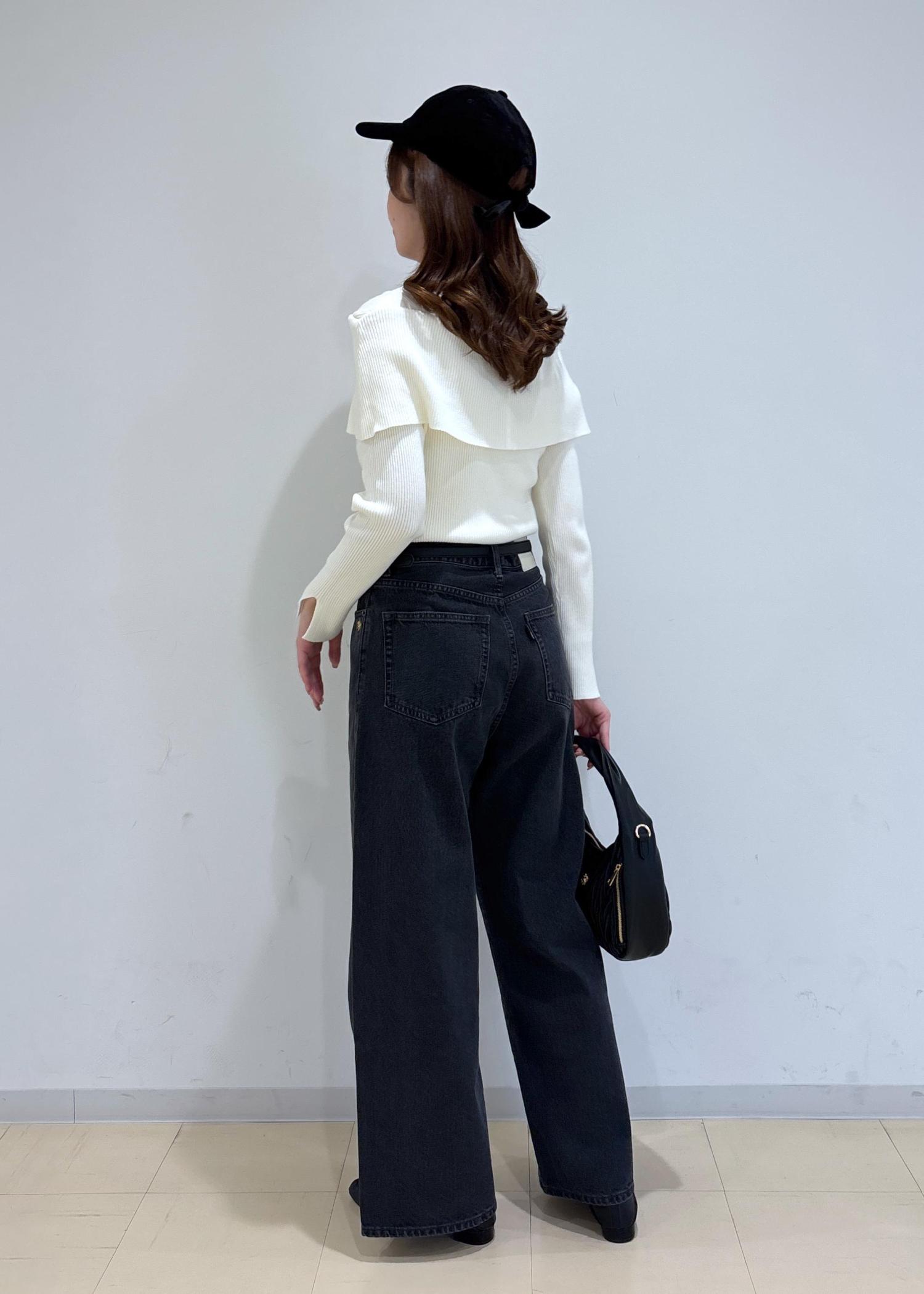 デニムパンツは太すぎないシルエットがカジュアルすぎないので、スッキリとした綺麗めなトップスと相性が良いです。