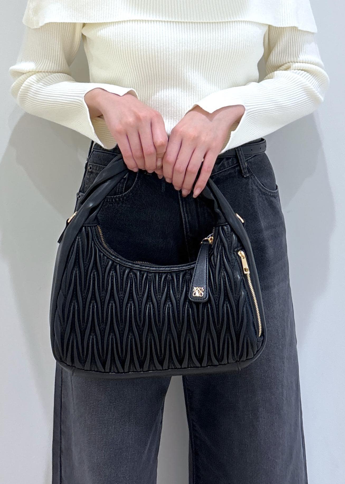 VIS【2WAY】ねじりハンドルキルティングバッグブラック / F¥7,909レビューキルティングデザインが高見えするバッグです。