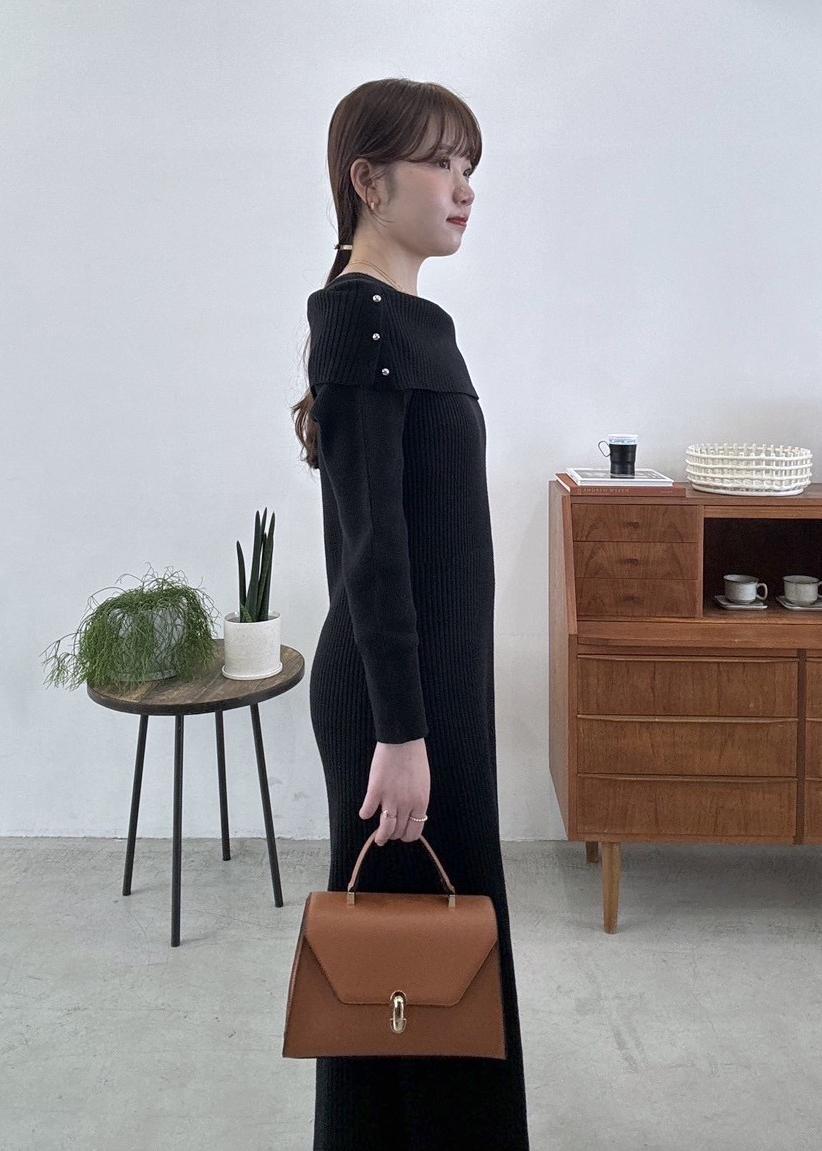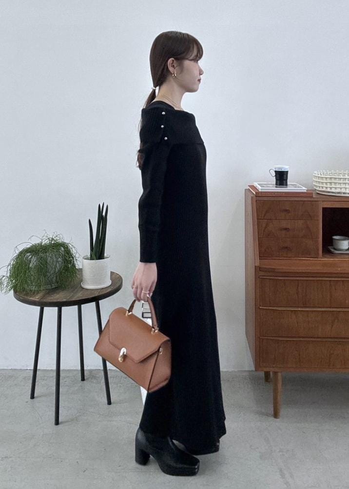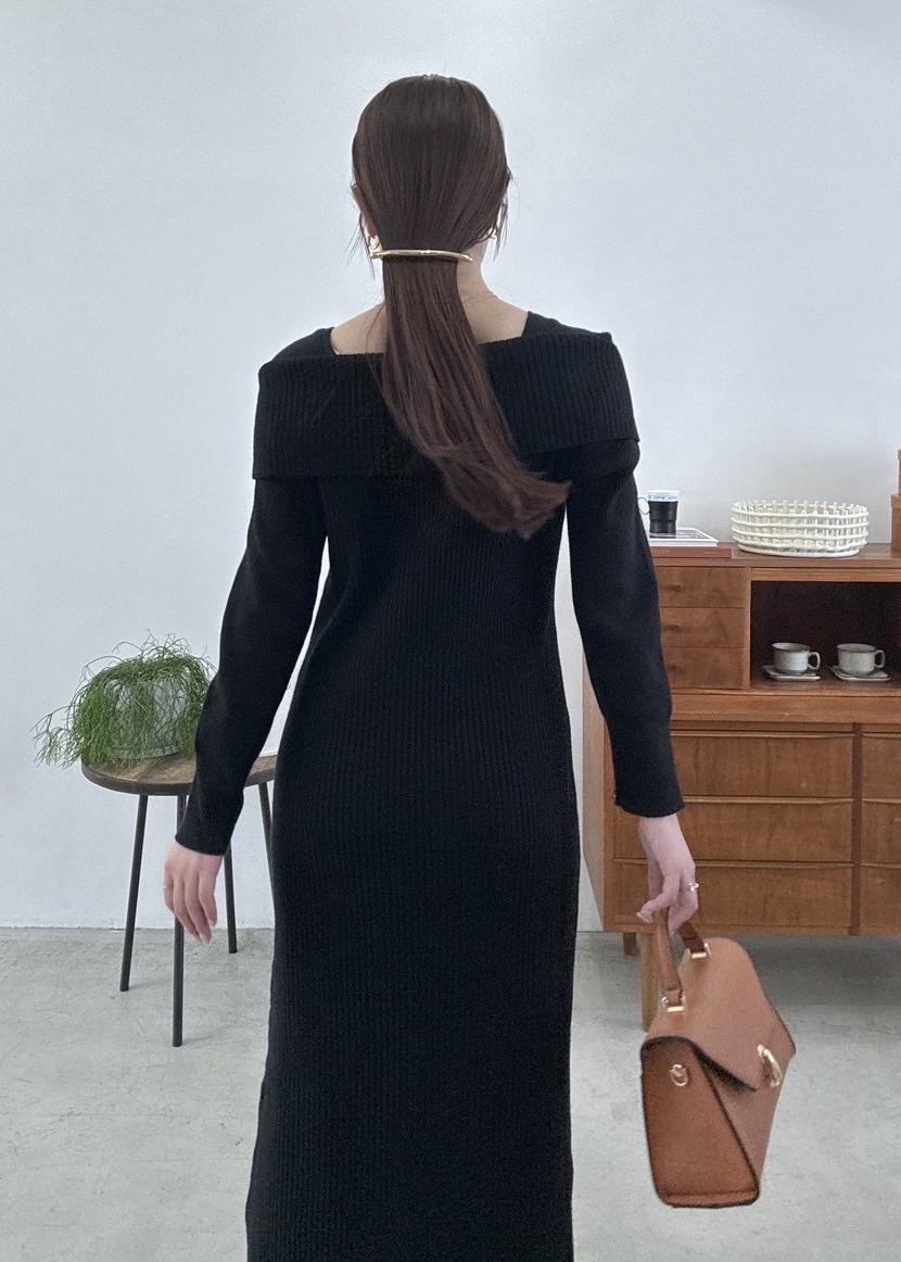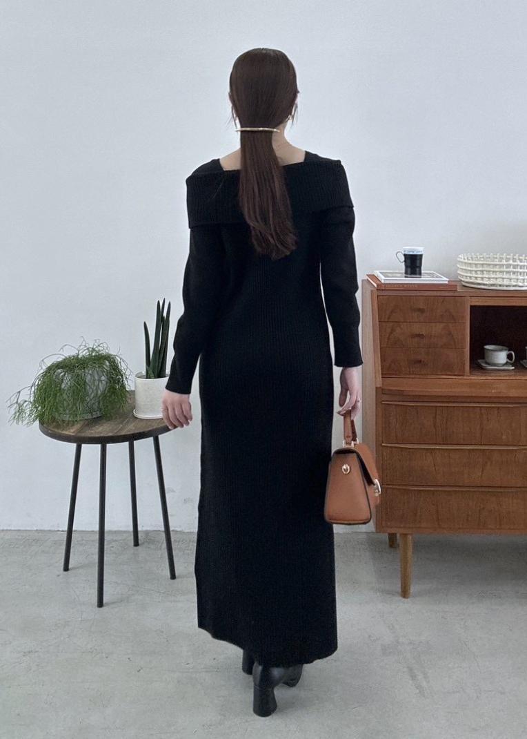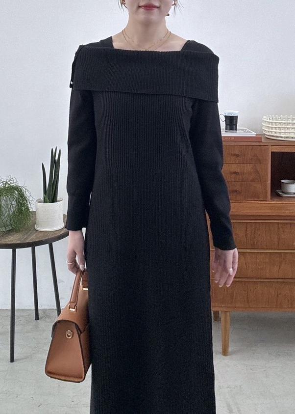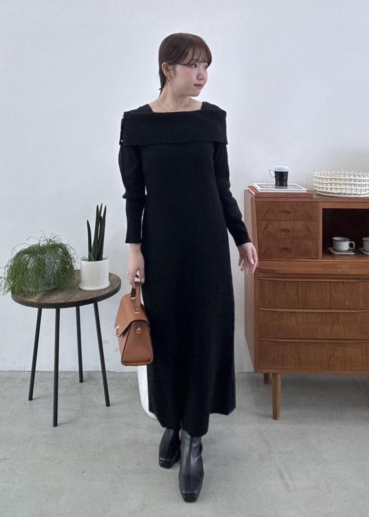 VISアシメオフショルリブニット美シルエットワンピース/着丈が選べるブラック / F¥8,899レビューFSサイズの丈感は、身長158cmで膝上ライン。