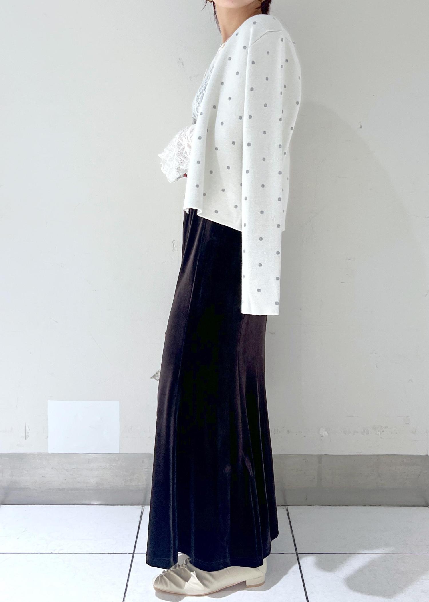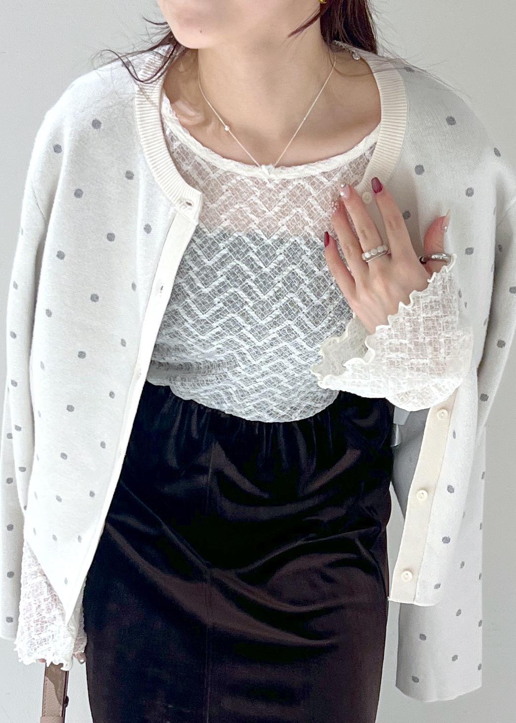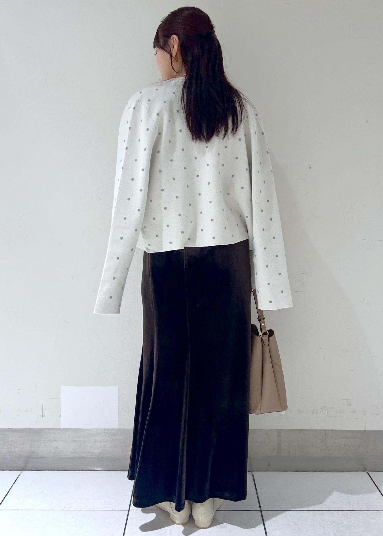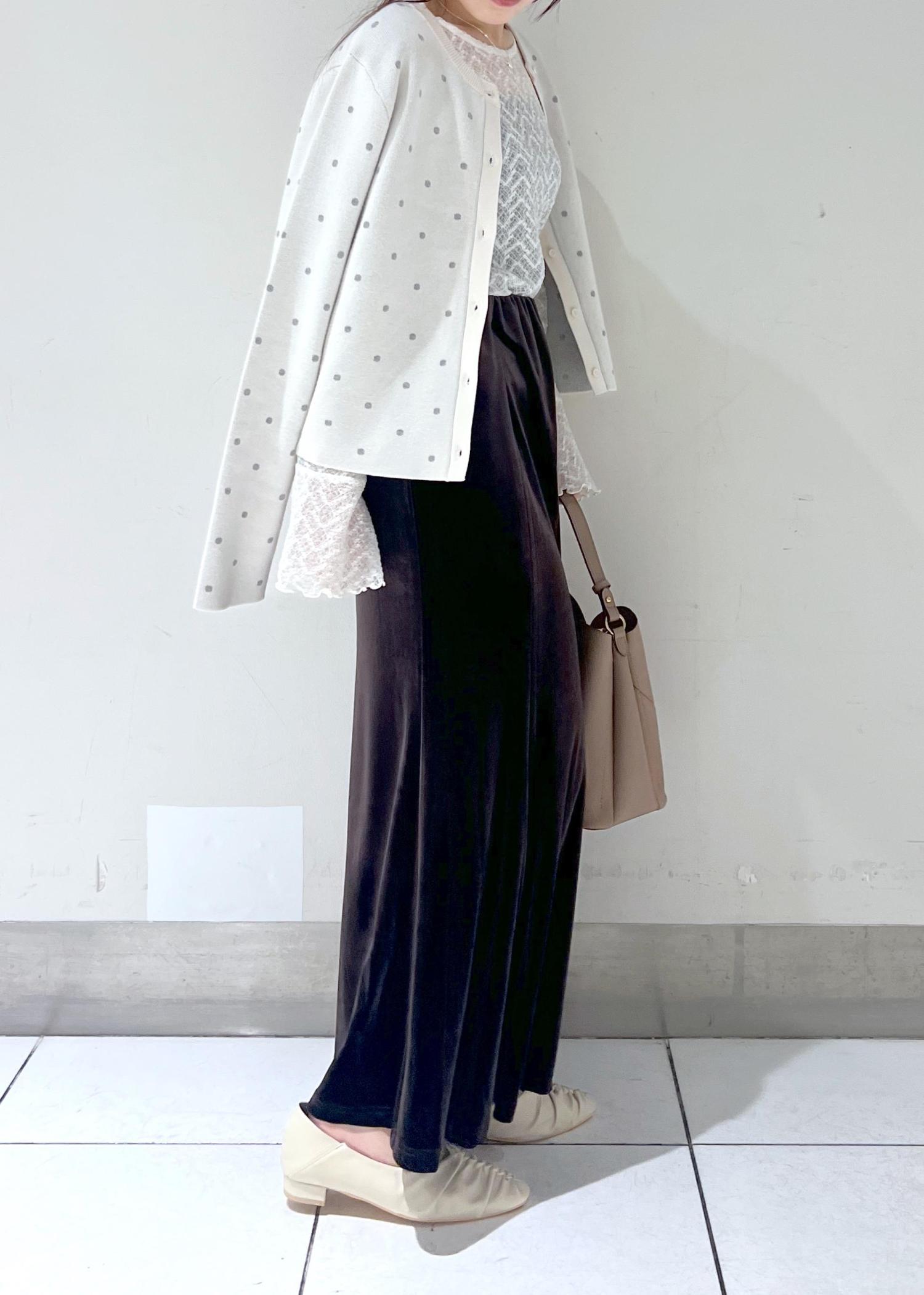 トレンド感のあるドットカーディガンを使って、女性らしいコーデを組んでみました✨