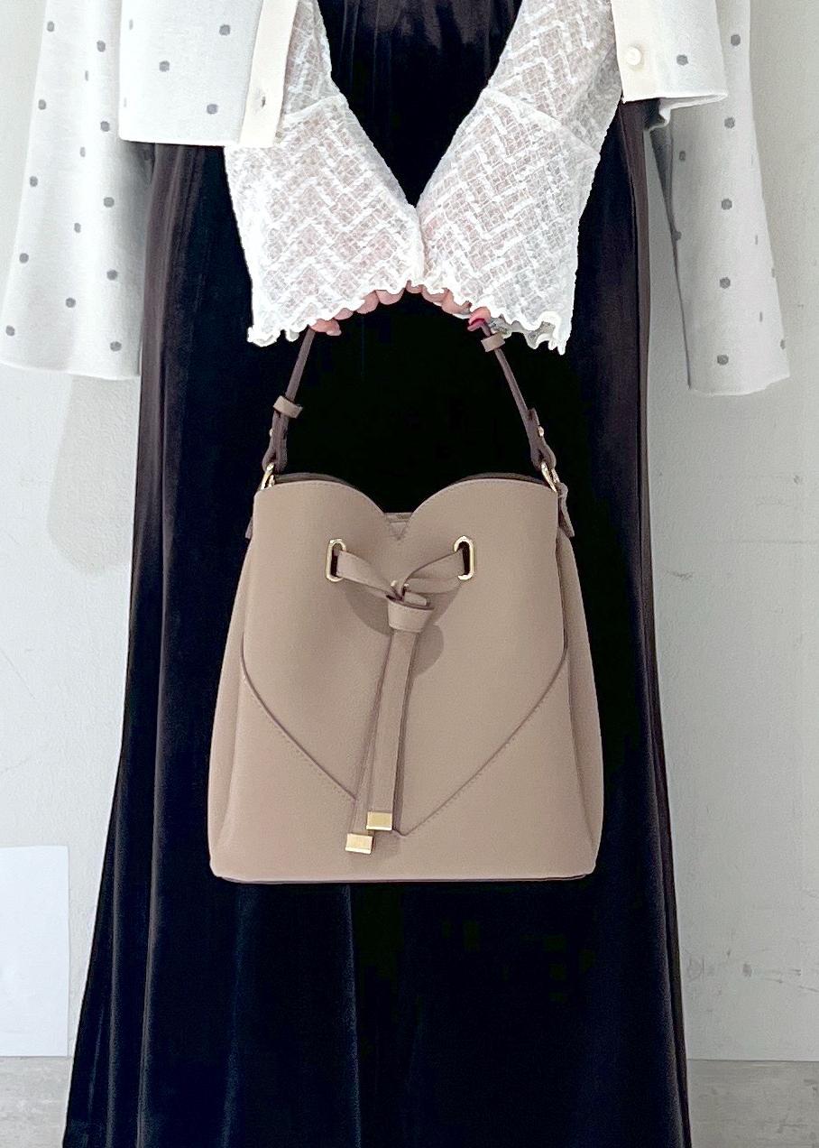 新色のミルクティーのハートカットバッグがブラウンすぎず、ピンクすぎず絶妙なお色味なので、今年トレンドのブラウンのお洋服とも相性抜群で使いやすかったです◎