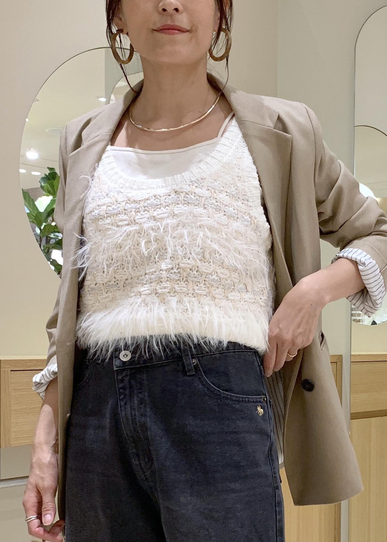 VISフェザーツイードニットビスチェ/2WAYキナリ / F¥5,489レビュー季節感の出るニットビスチェ。