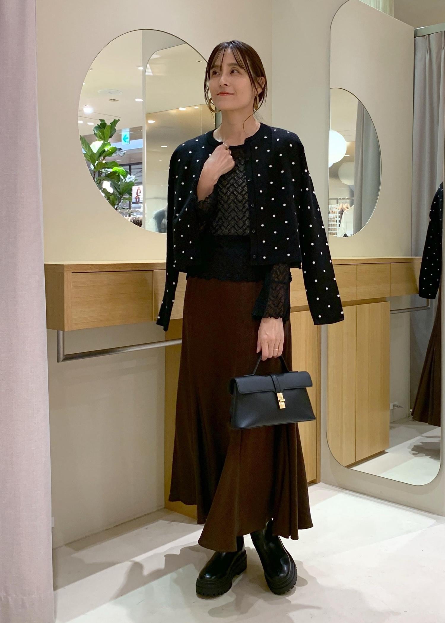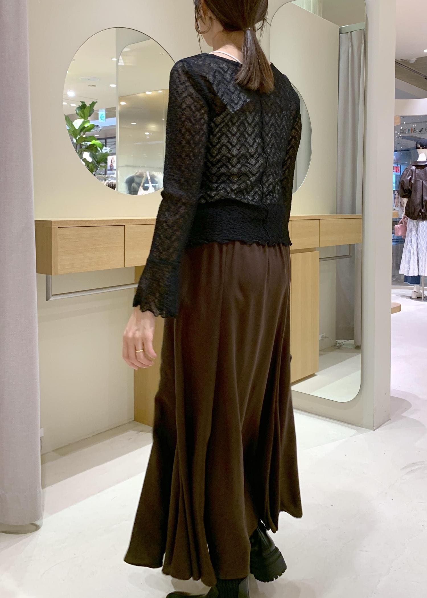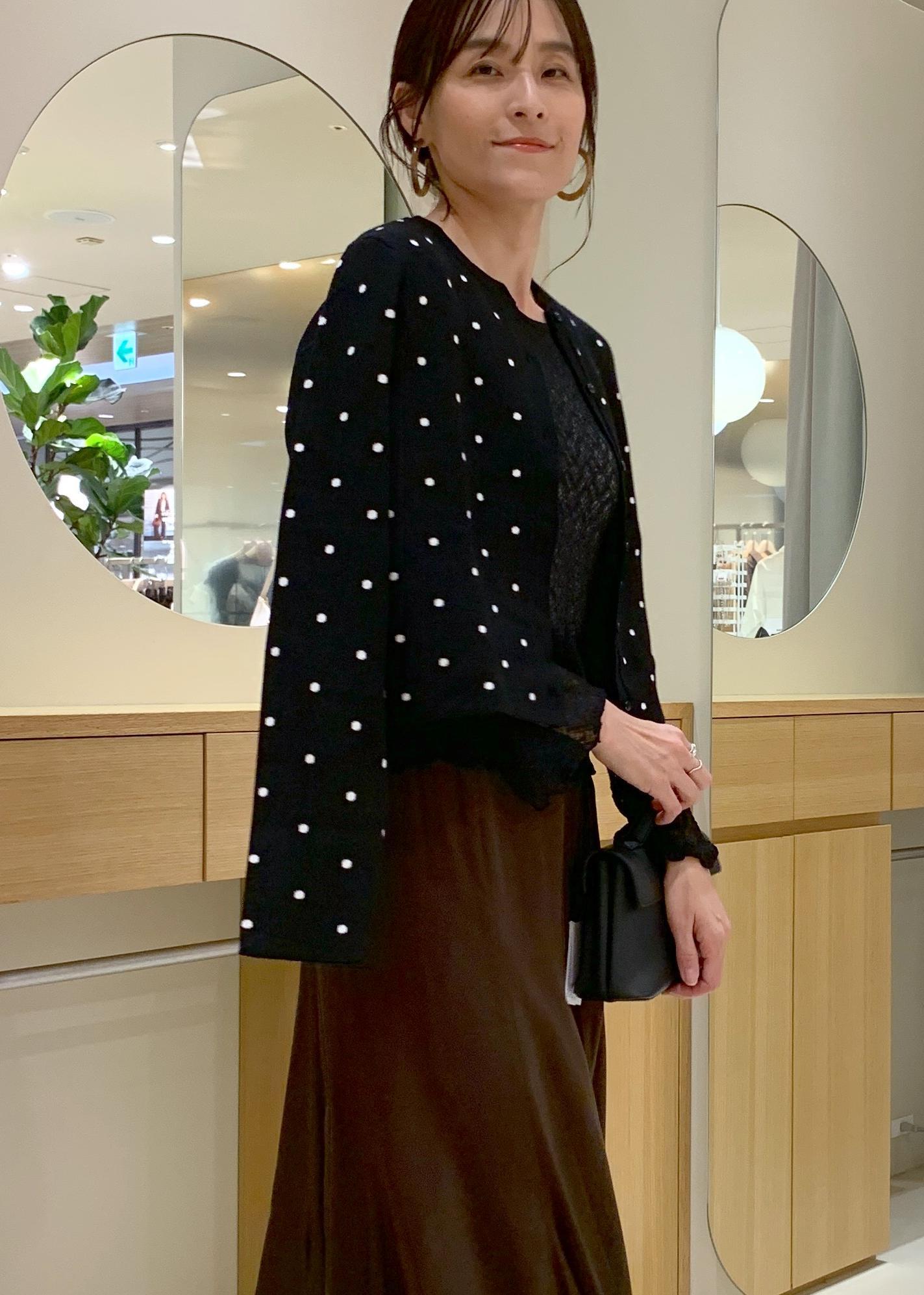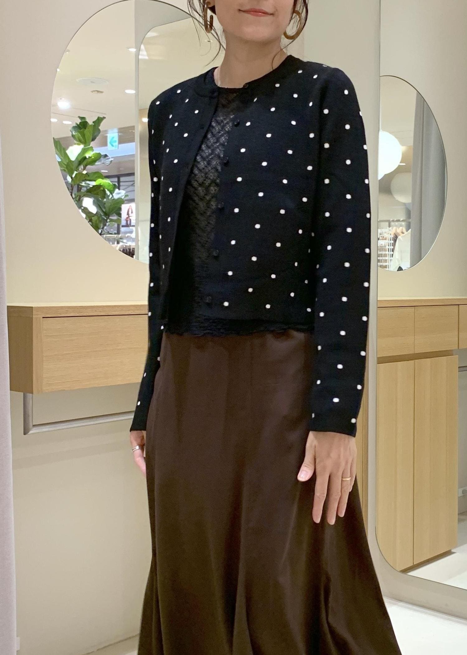 丈は少し短丈なので、ふんわりスカートやワイドパンツ、キャミワンピースの上から羽織ってもバランスがとても綺麗ですよ。 -