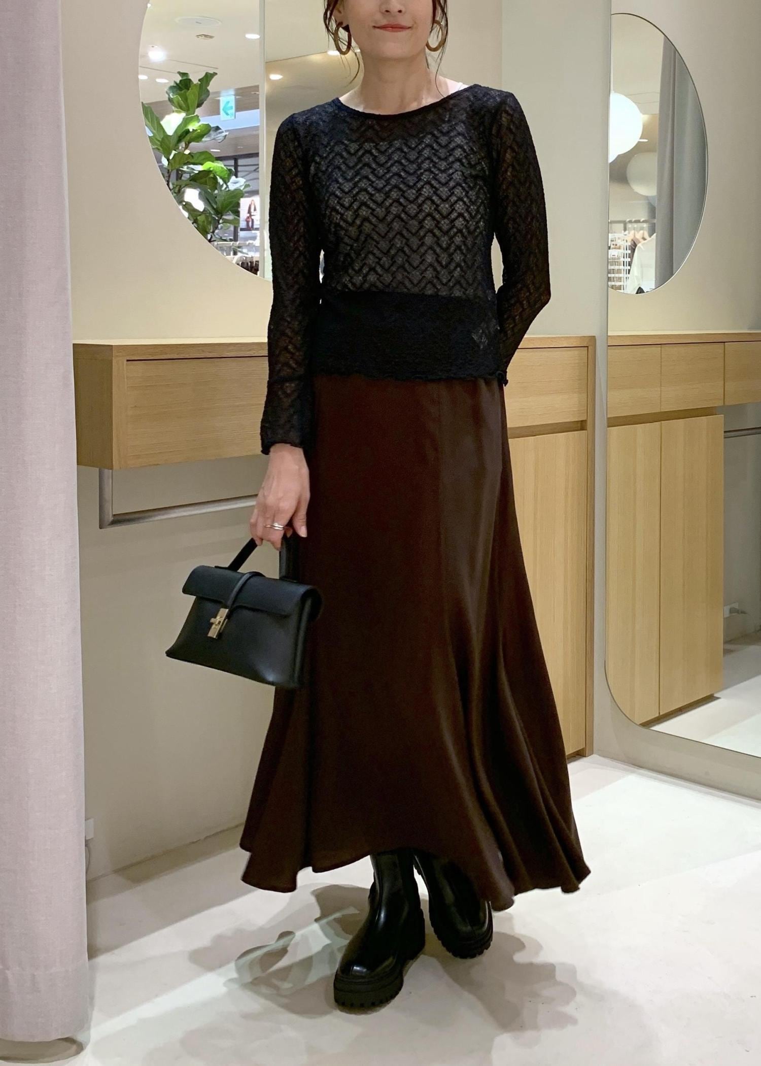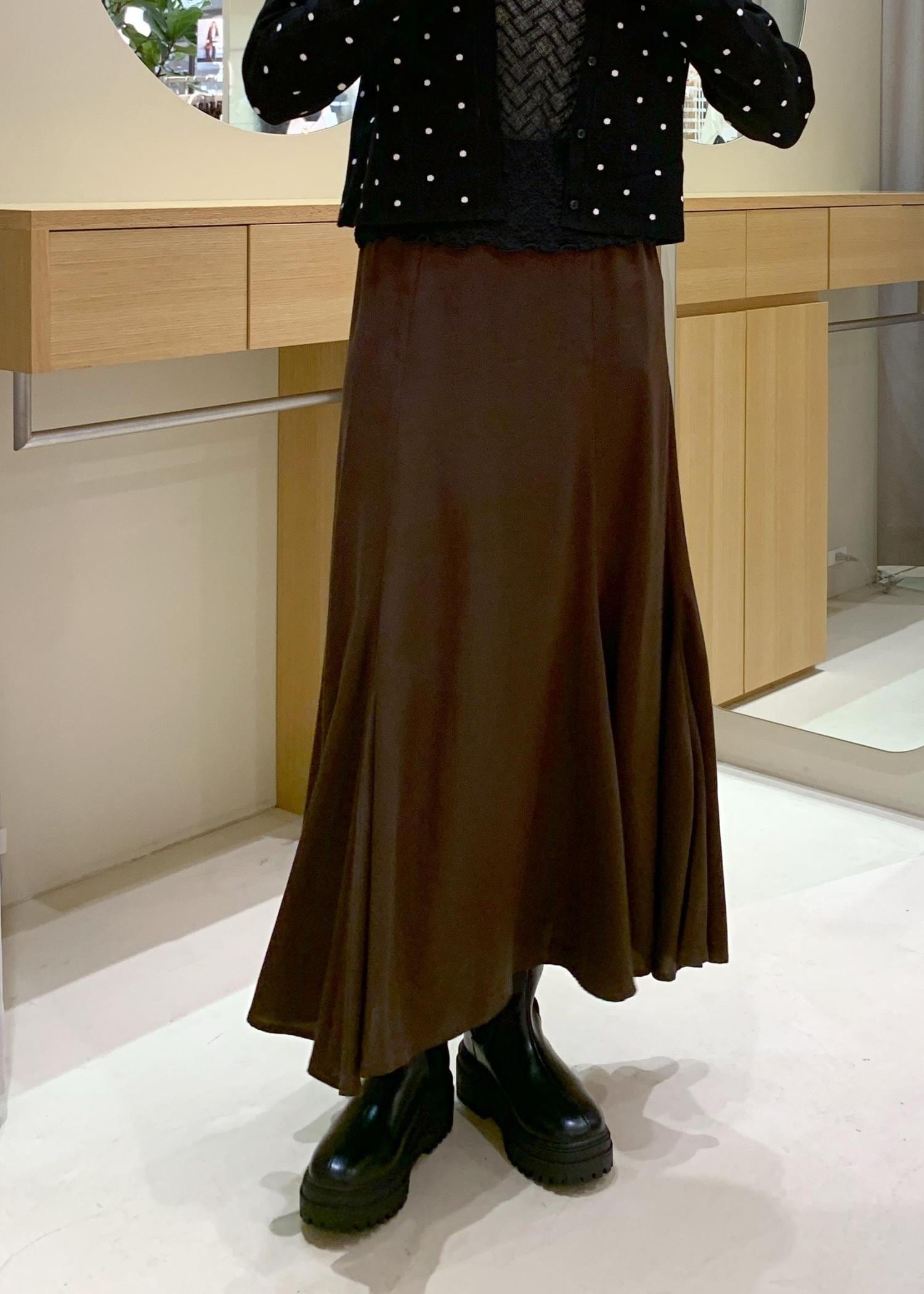 VISフィブリルサテン&レースアソートマーメイドスカートブラウン系 / F¥5,382レビュー軽いタッチの素材感で、歩きやすいです。