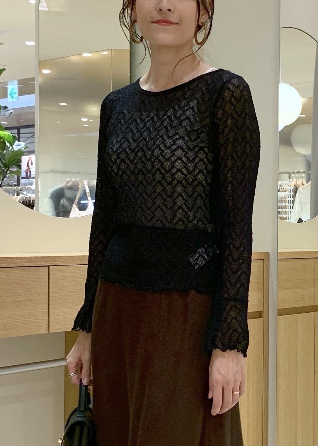 まだまだ暑いので、程よくシアーの軽さと抜け感があるので、着やすいと思います。