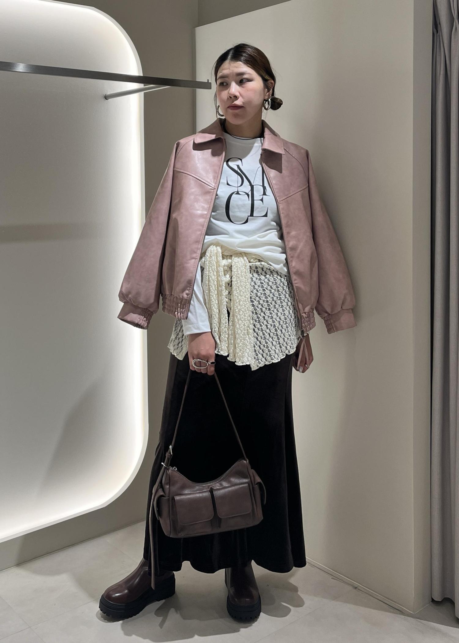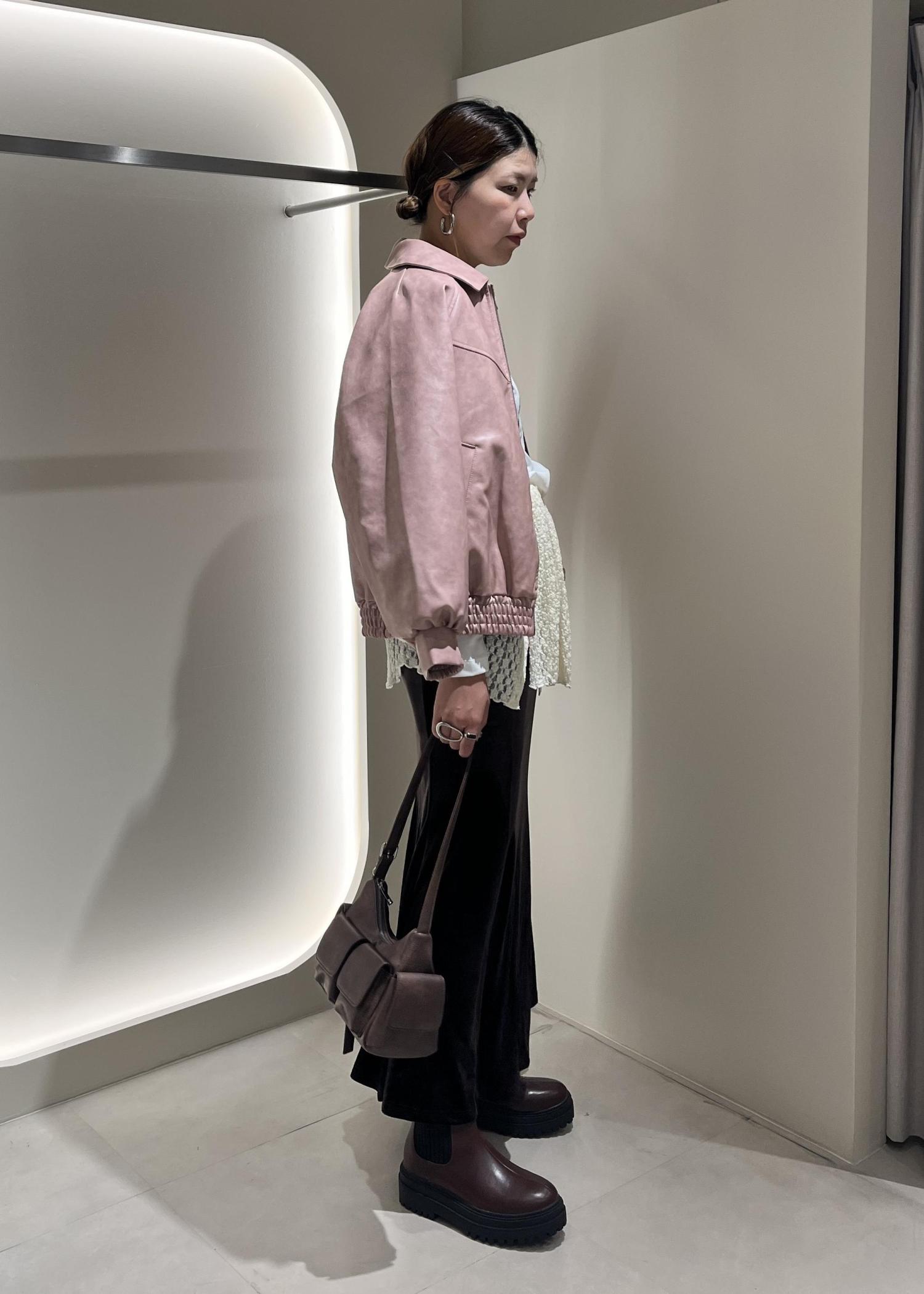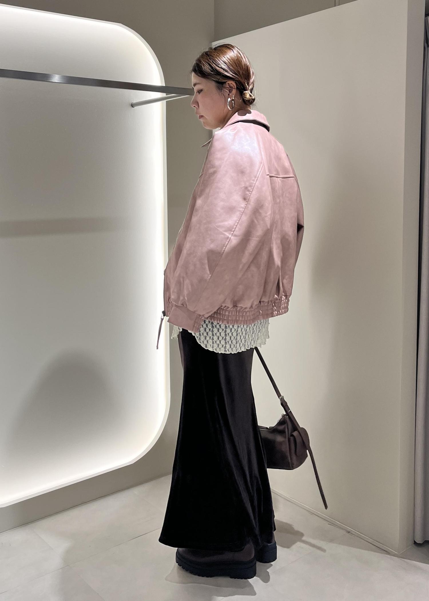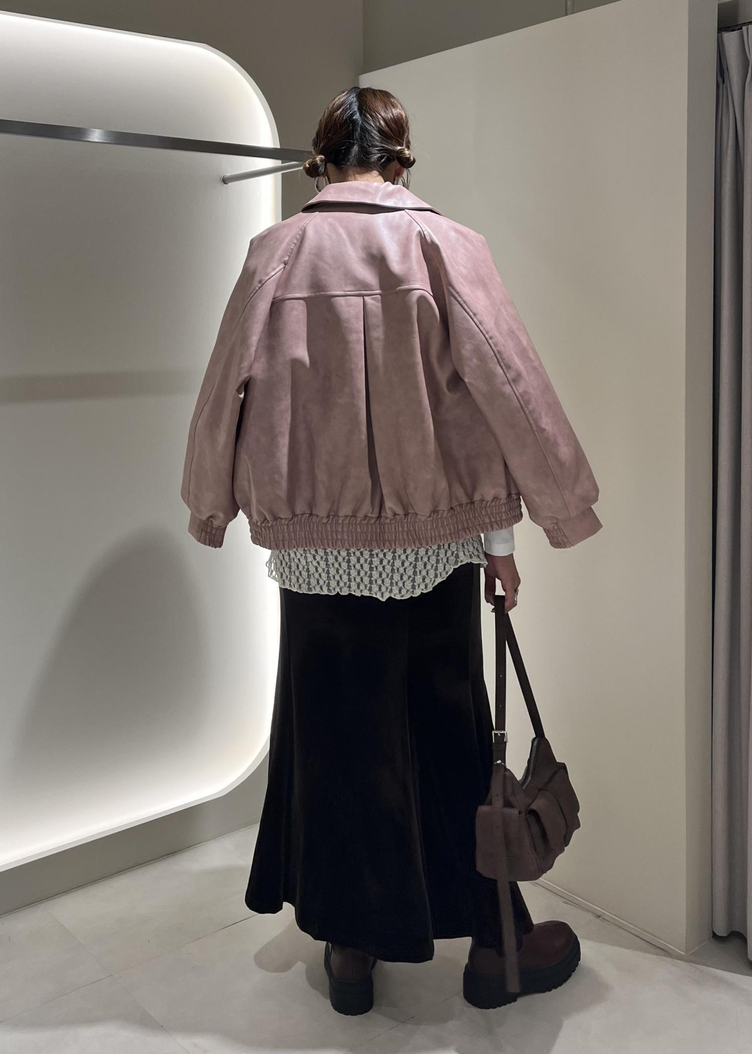 VIS合皮&スエードライクジップアップブルゾンピンク系 / F¥10,989レビューオーバーサイズで高身長でもたっぷり羽織れるレザー調ブルゾン!171cmでヒップにかかる丈感と、アーム部分もゆったりしてるので厚手のニットでも窮屈感なく着用できますよ!