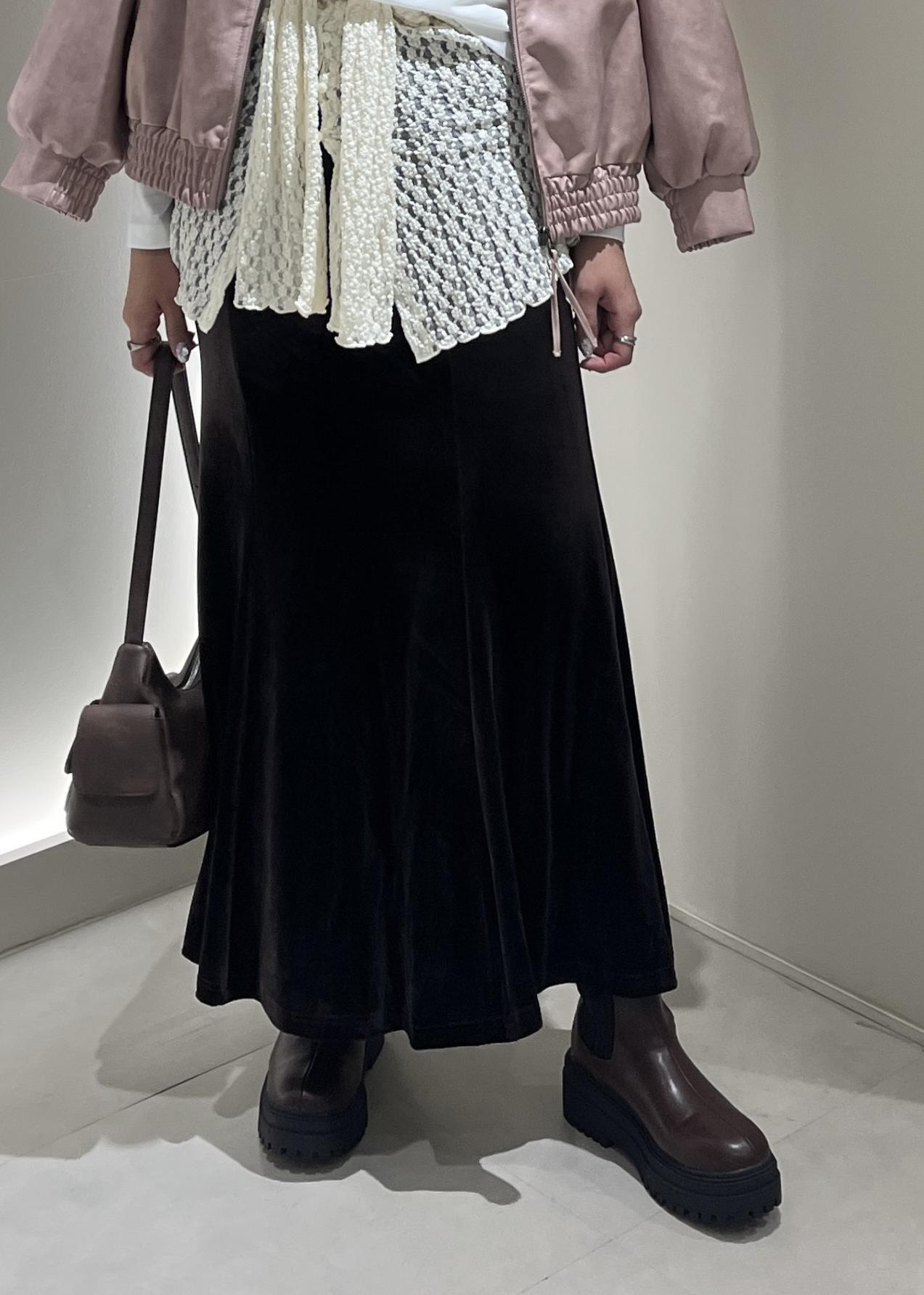 VISベロアナロースカートダークブラウン / M¥6,589レビューベロアの柔らかい素材感で伸縮性もあるので履きやすさ抜群!ウエストゴムなので楽ちんさも◎
