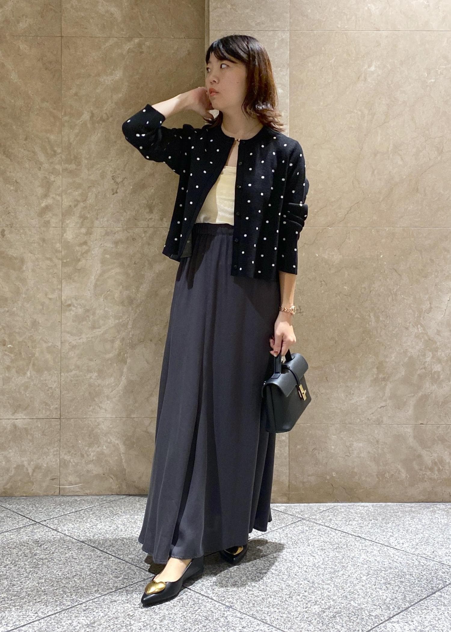 VISドットジャガードカーディガンブラック系 / F¥5,929レビュー身長150cmでFサイズを着用し、腰にかかる丈感でした!