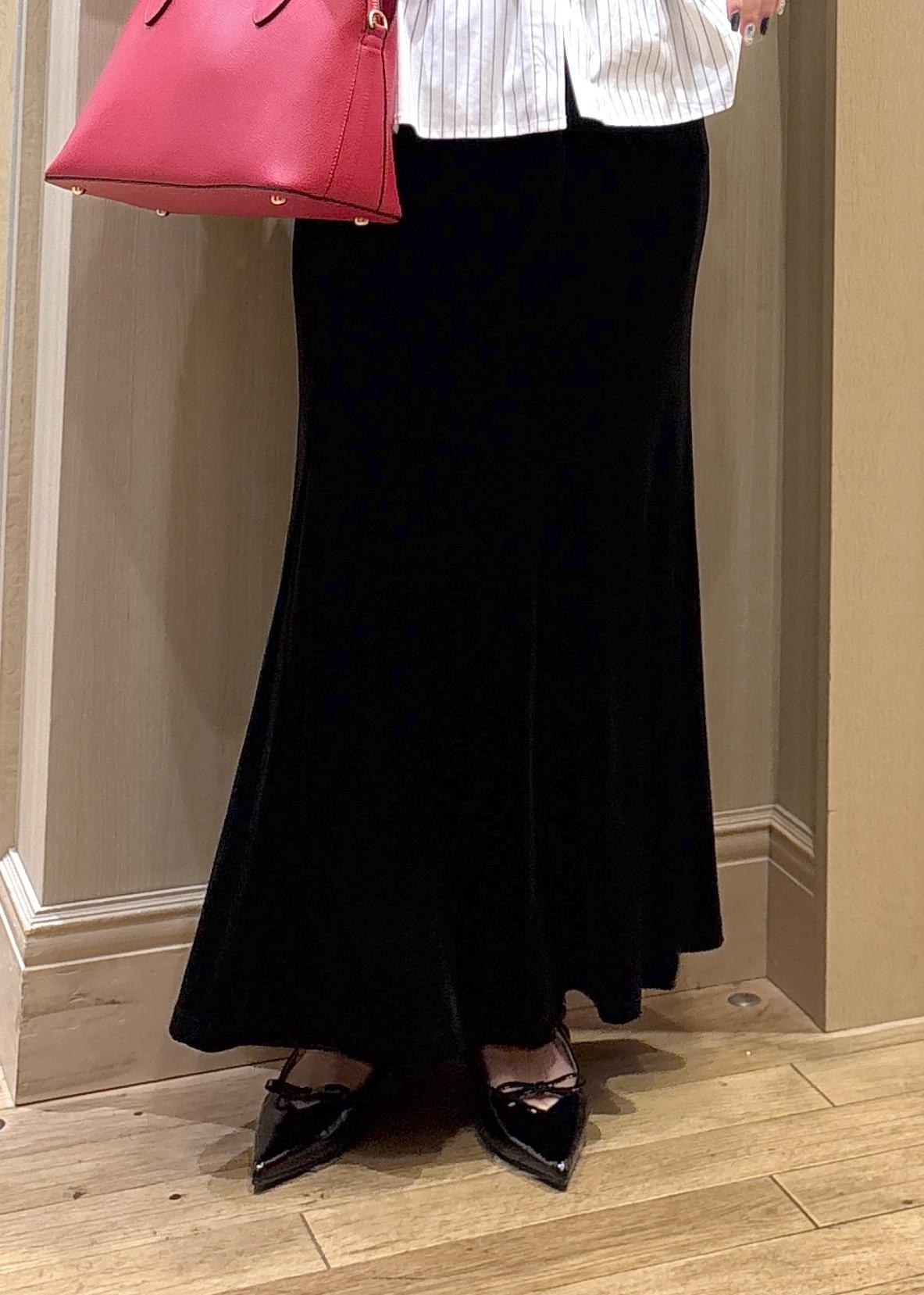 VISベロアナロースカートブラック / S¥6,589レビュー156センチでSサイズがおへそ下くらいのウエストで履けて、丈もかかとにかからず綺麗に着用できました。