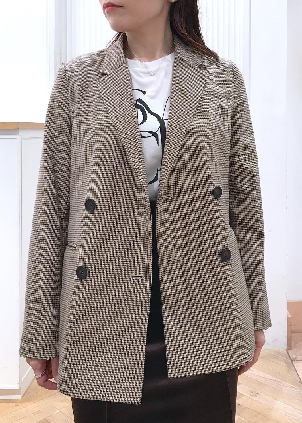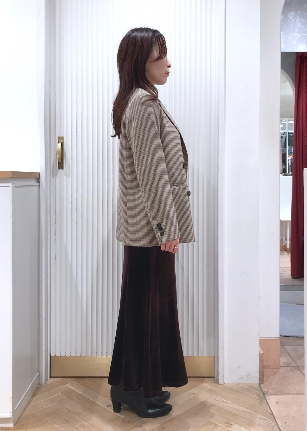ジャケットはストンとしたマニッシュなシルエットなので女っぽいタイトなスカートと好相性ですよ。