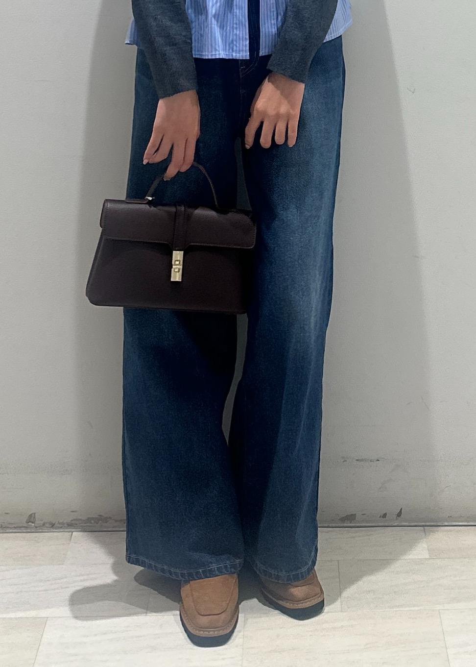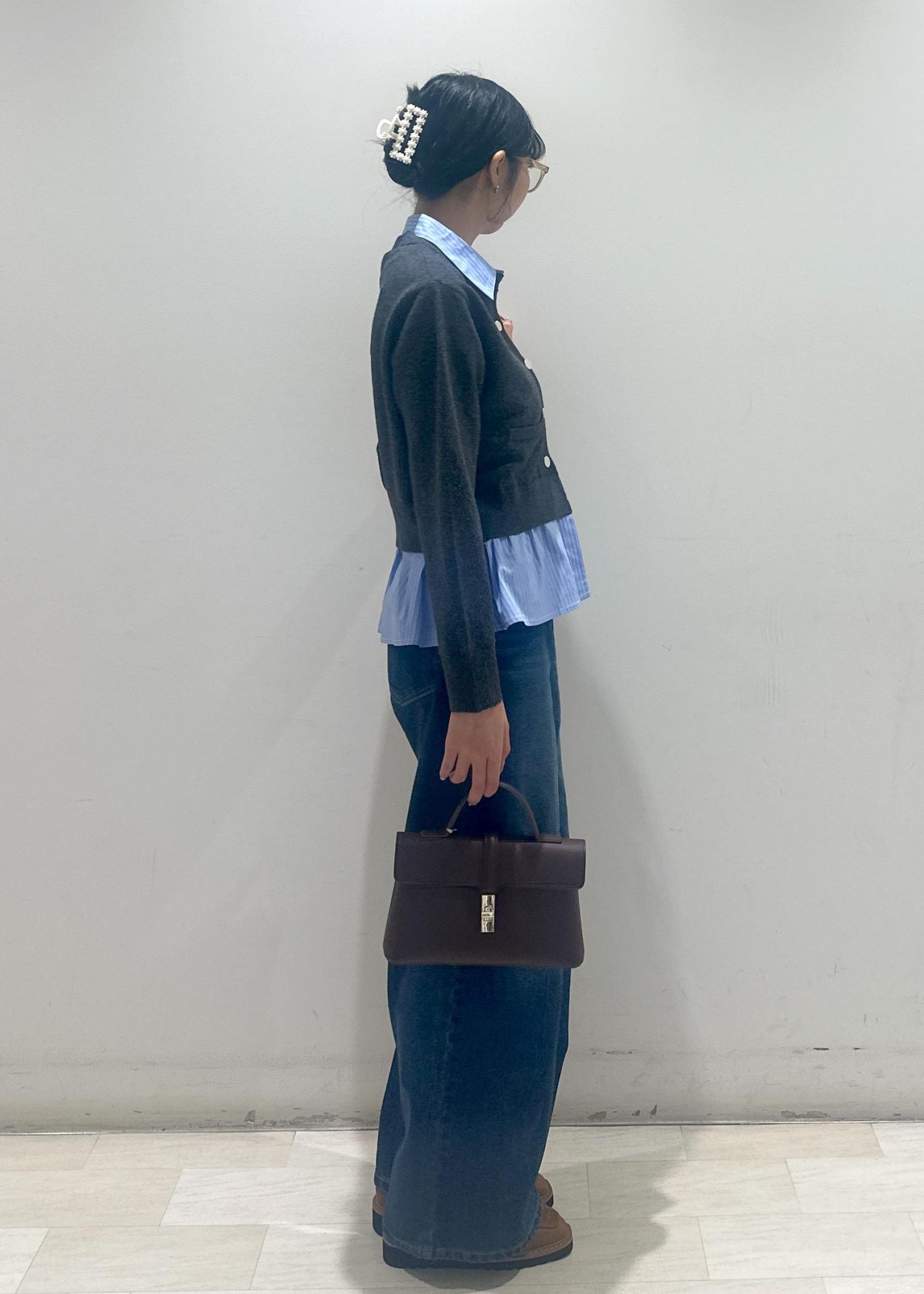 小さめに見えますがマチがあり、iPhoneや財布等の貴重品が入るくらいのサイズ感です。 -