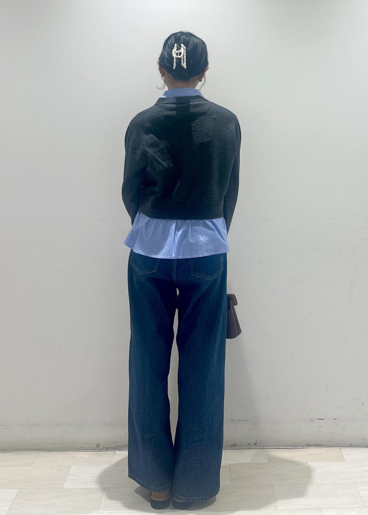 オリジナル革パッチと履いた時に覗くプレイヤーマークがアクセントとなり、ルーズストレートシルエットは上品さを保ちながら足のラインを綺麗にカバー◎ -