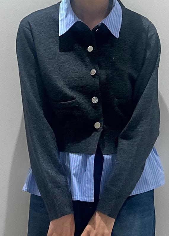 VISシャツレイヤード風メタルボタンカーディガンチャコール / F¥6,589レビューカーディガンとシャツがドッキングされたデザインで簡単にレイヤードスタイルが楽しめます。