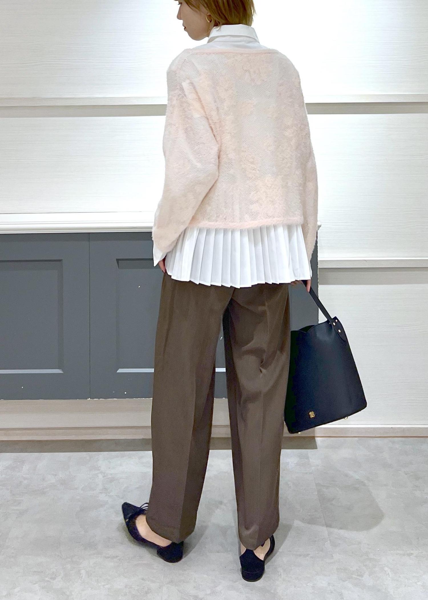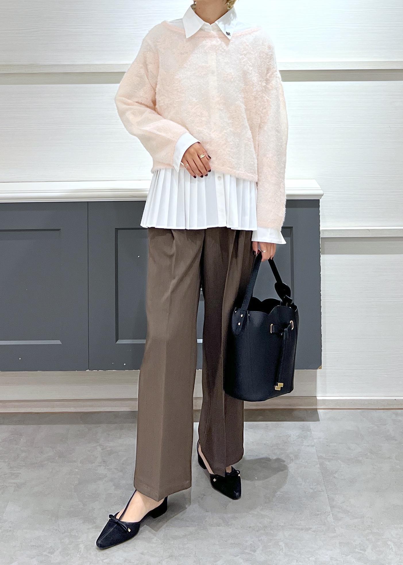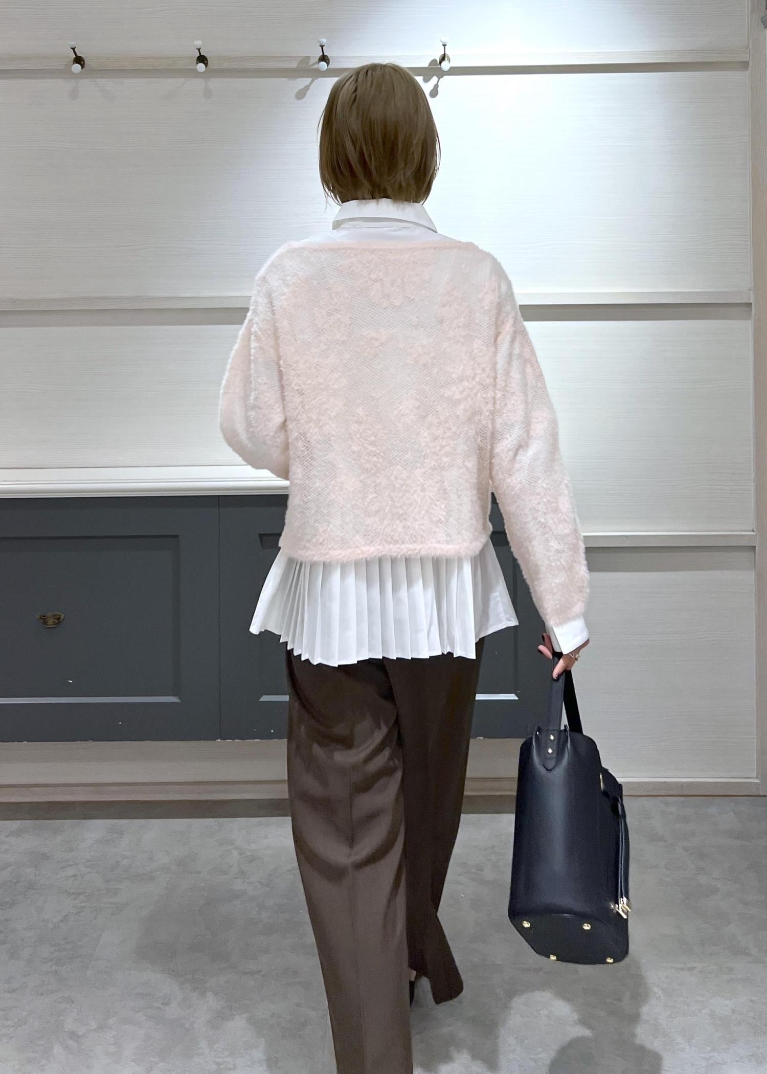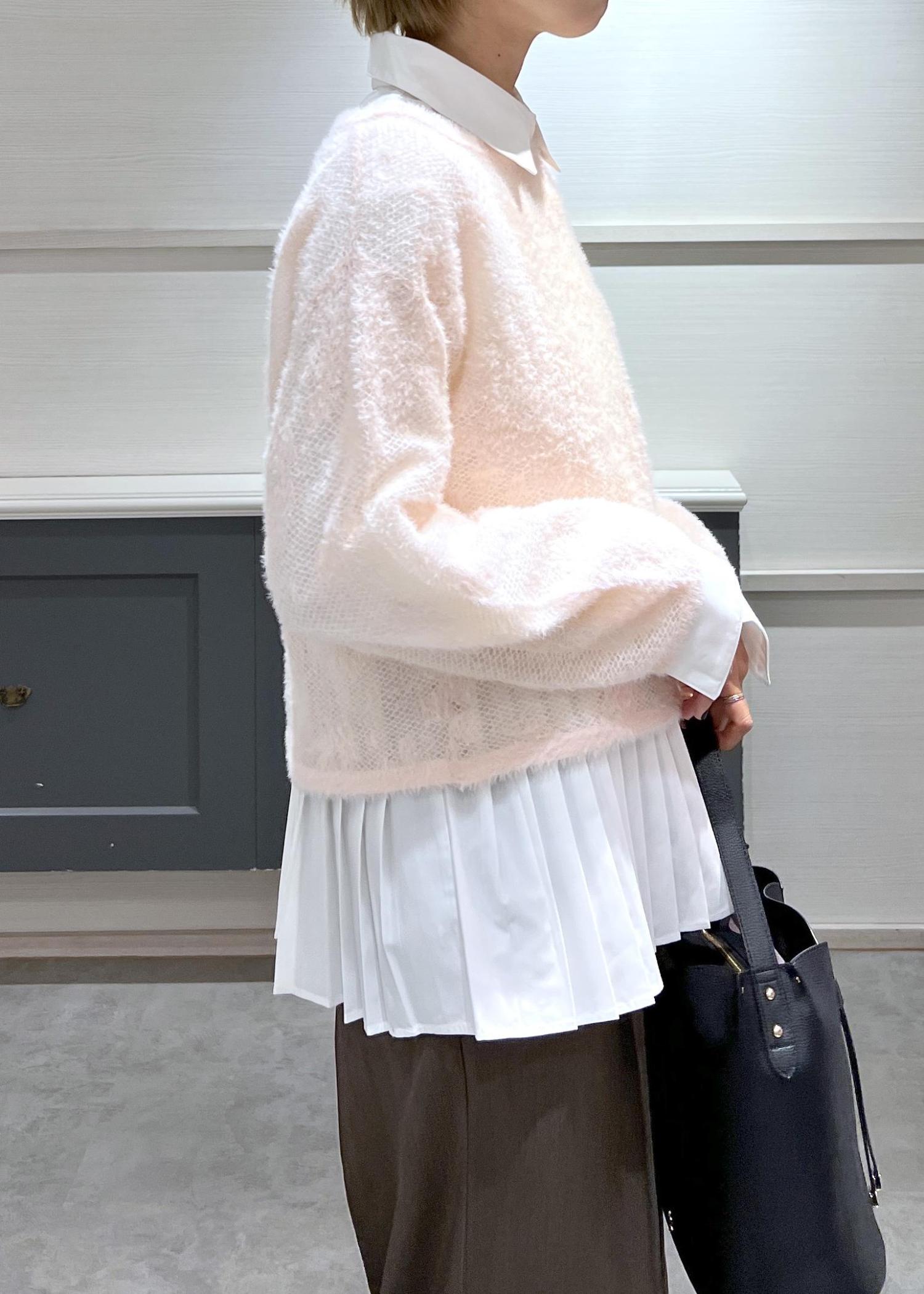 ニットと重ね着で裾と襟を出すとまた雰囲気が変わってオススメです! -