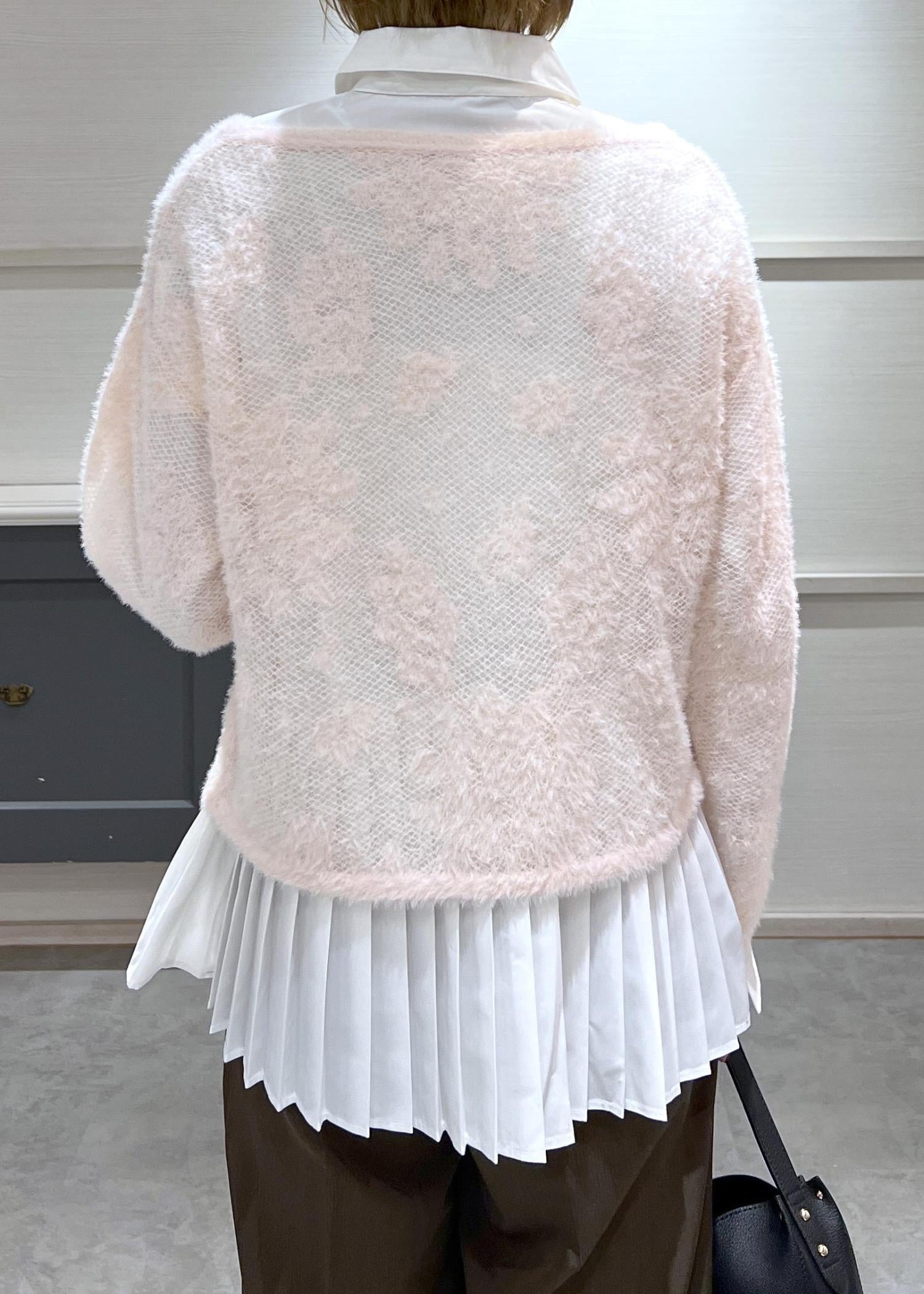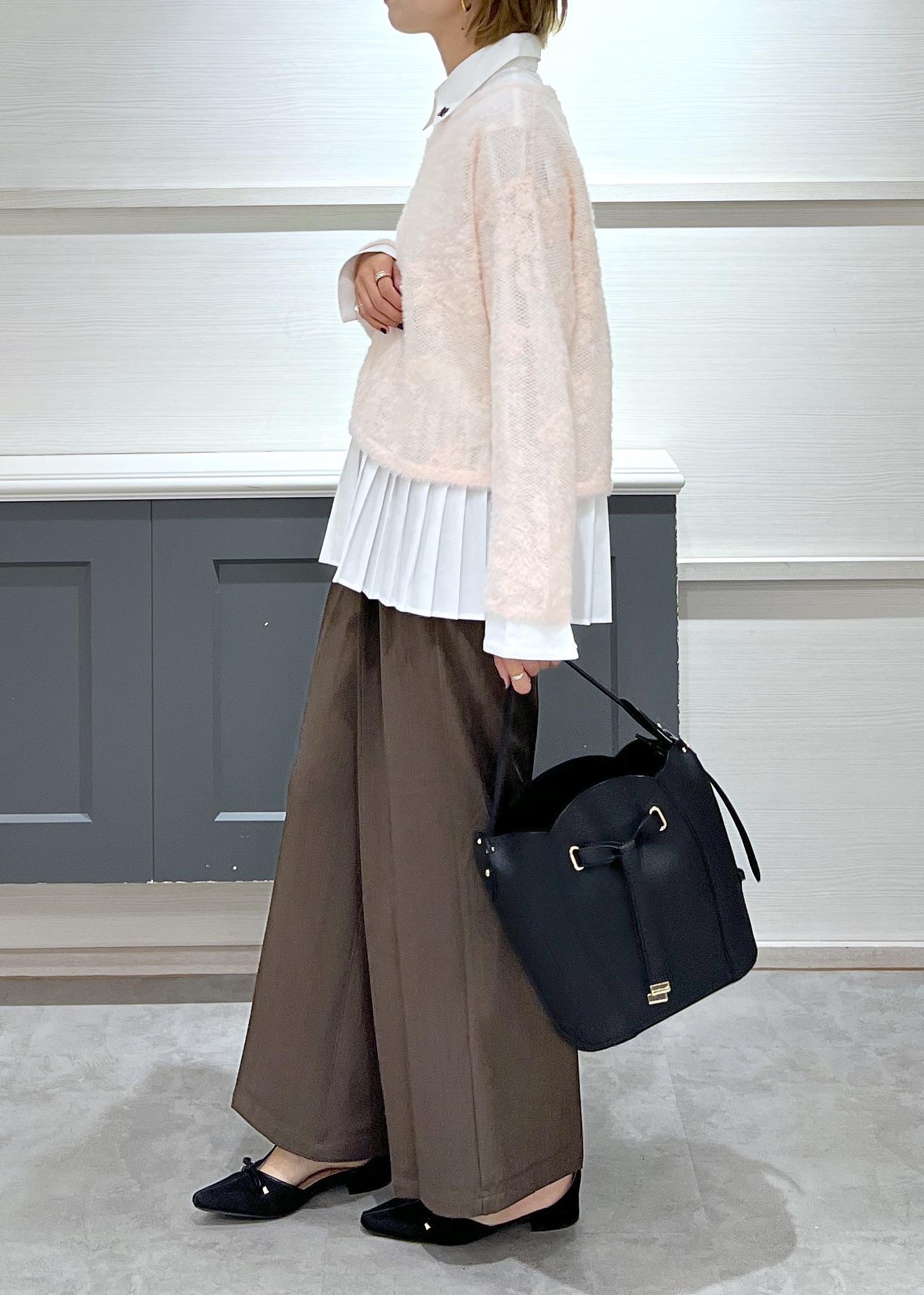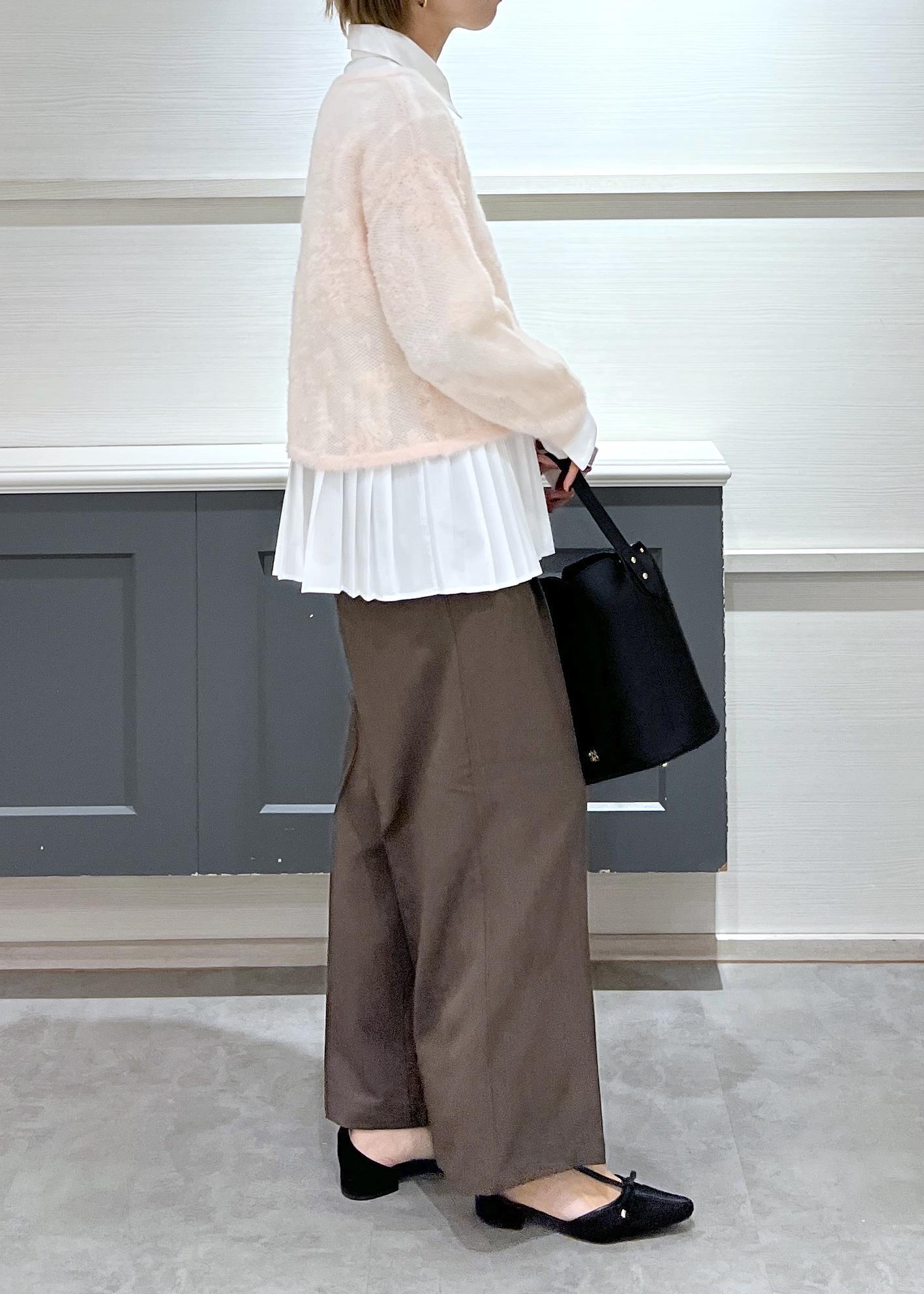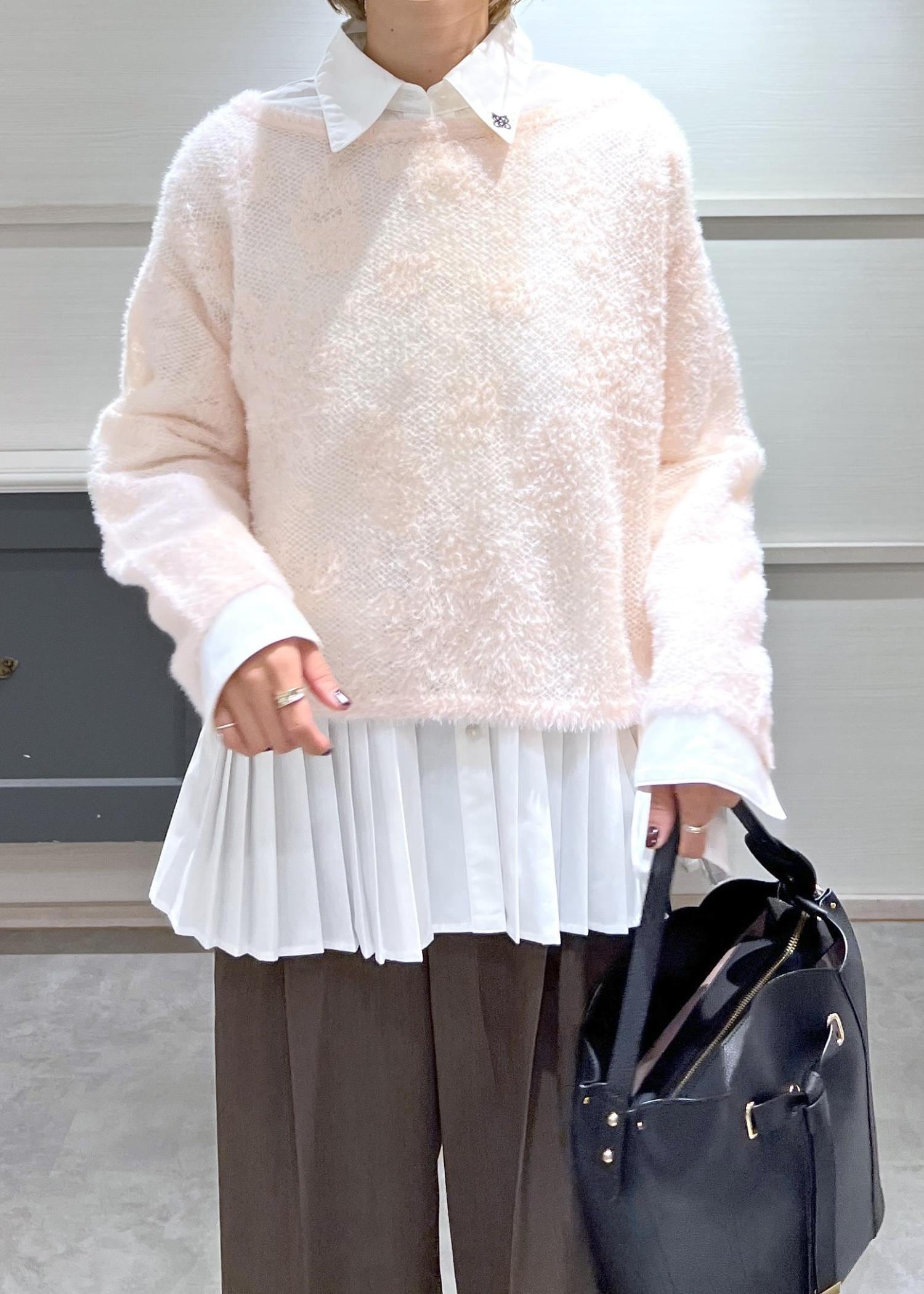 ニットと重ね着で裾と襟を出すとまた雰囲気が変わってオススメです! -